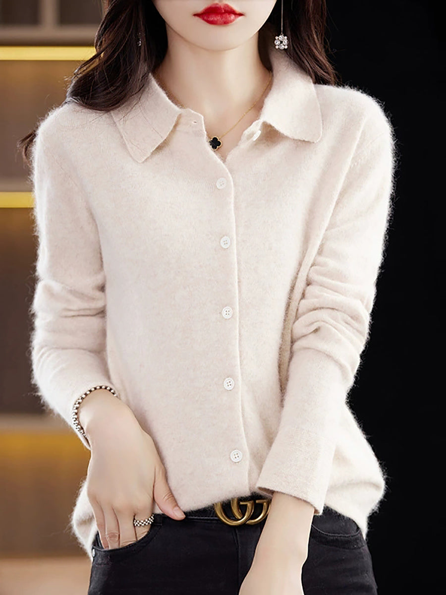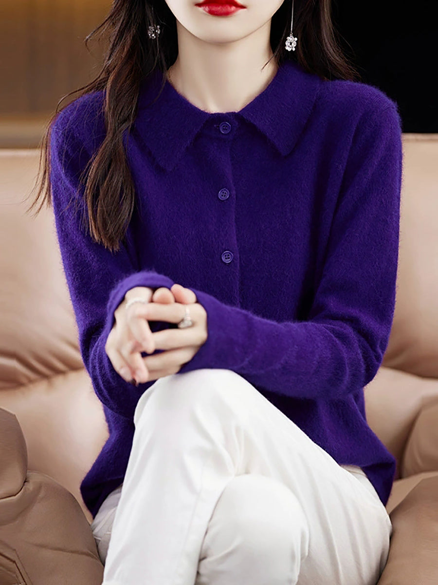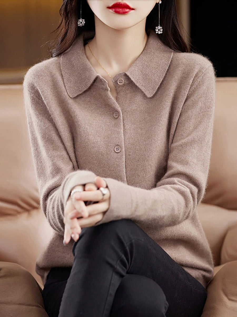 Dámský ležérní čistě barevný kardigan s odkládacím límcem