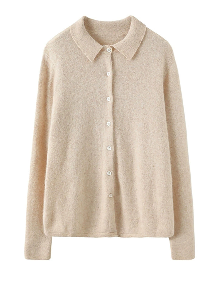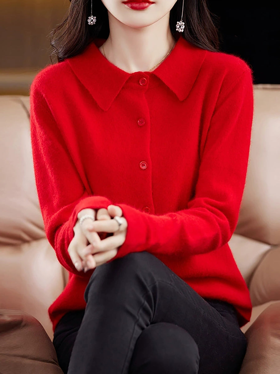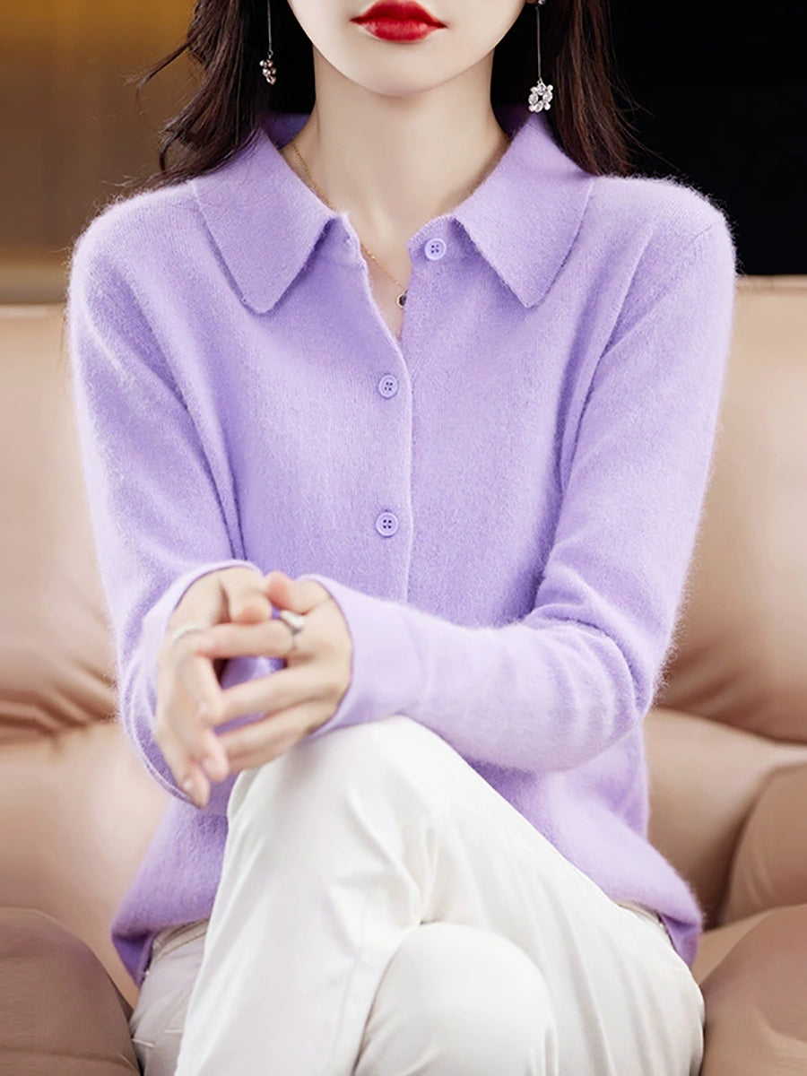 Dámský ležérní čistě barevný kardigan s odkládacím límcem