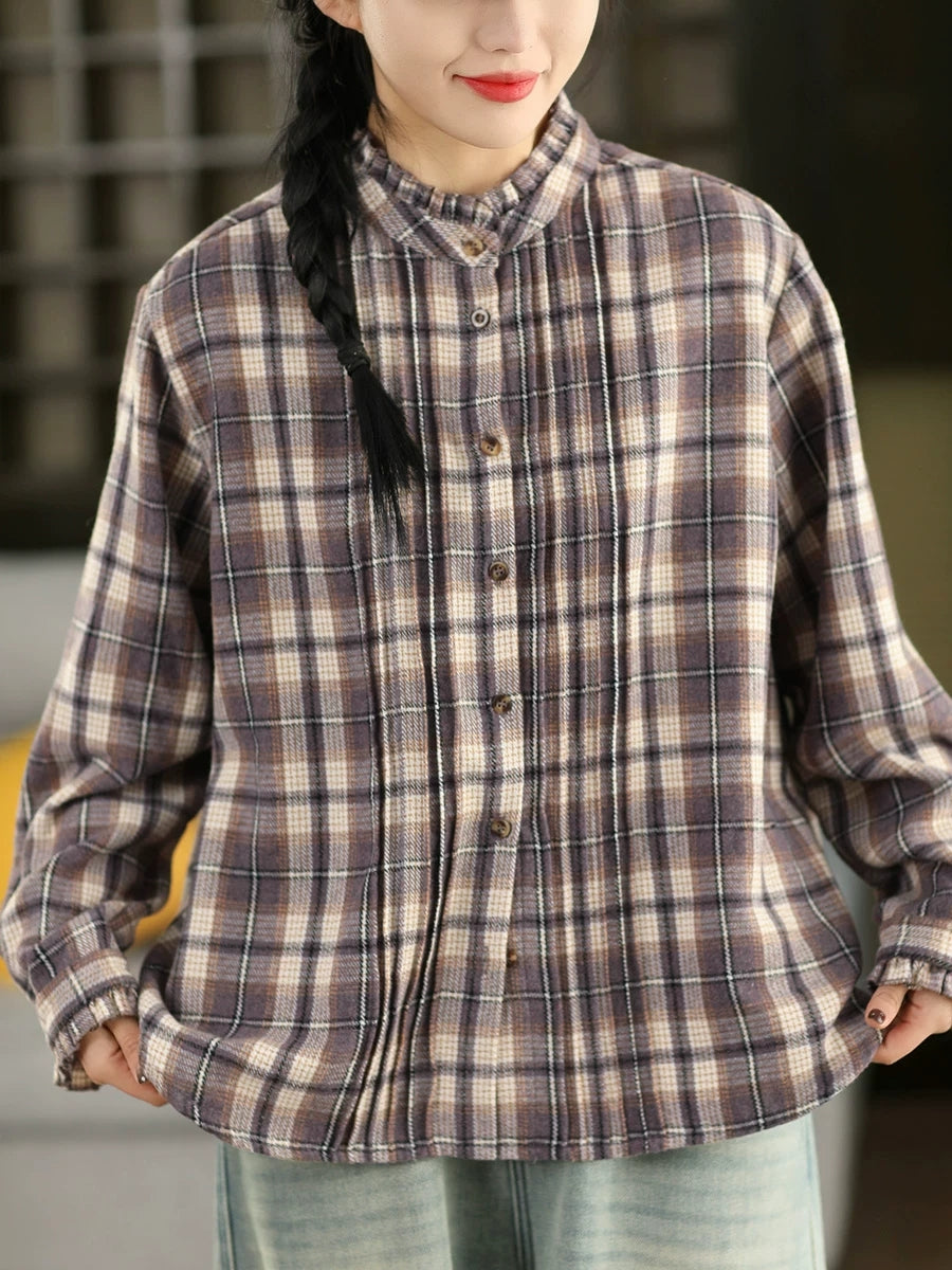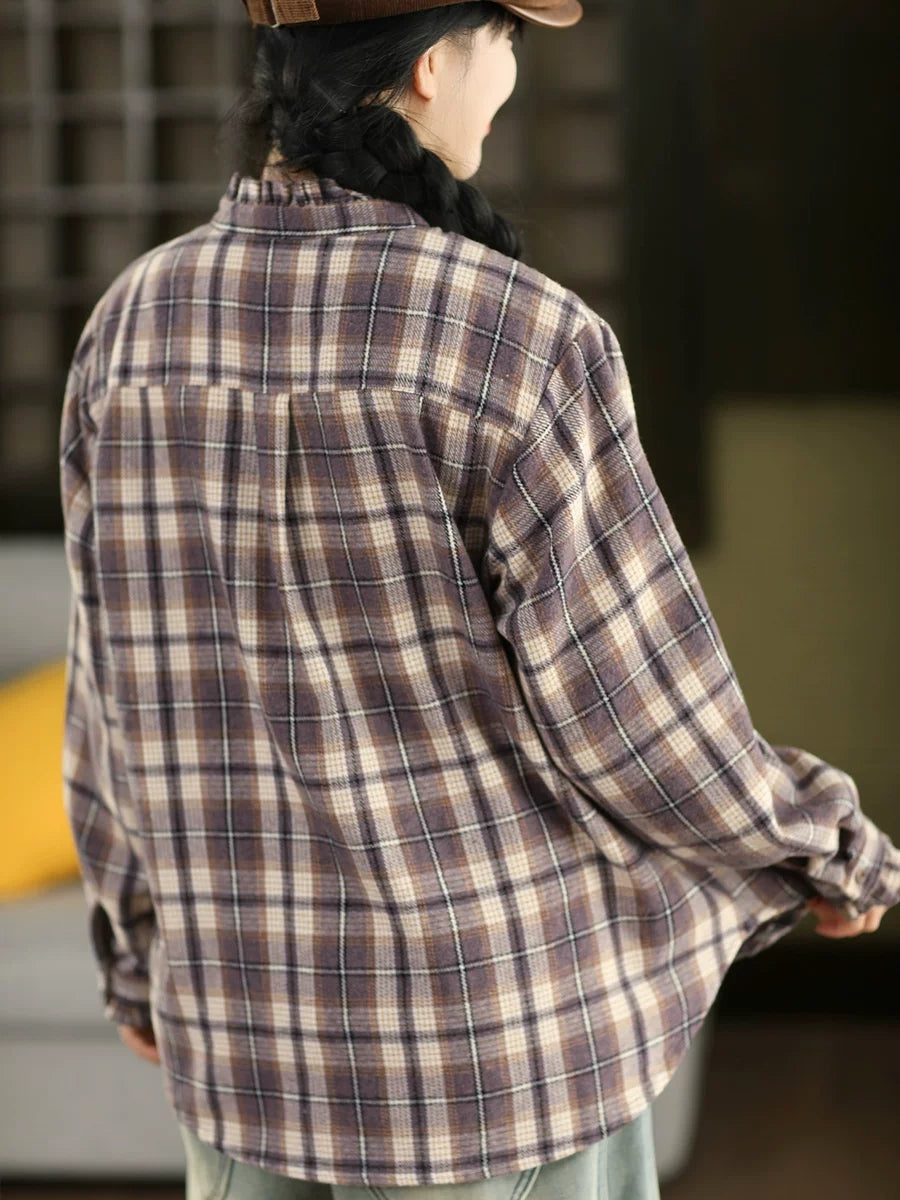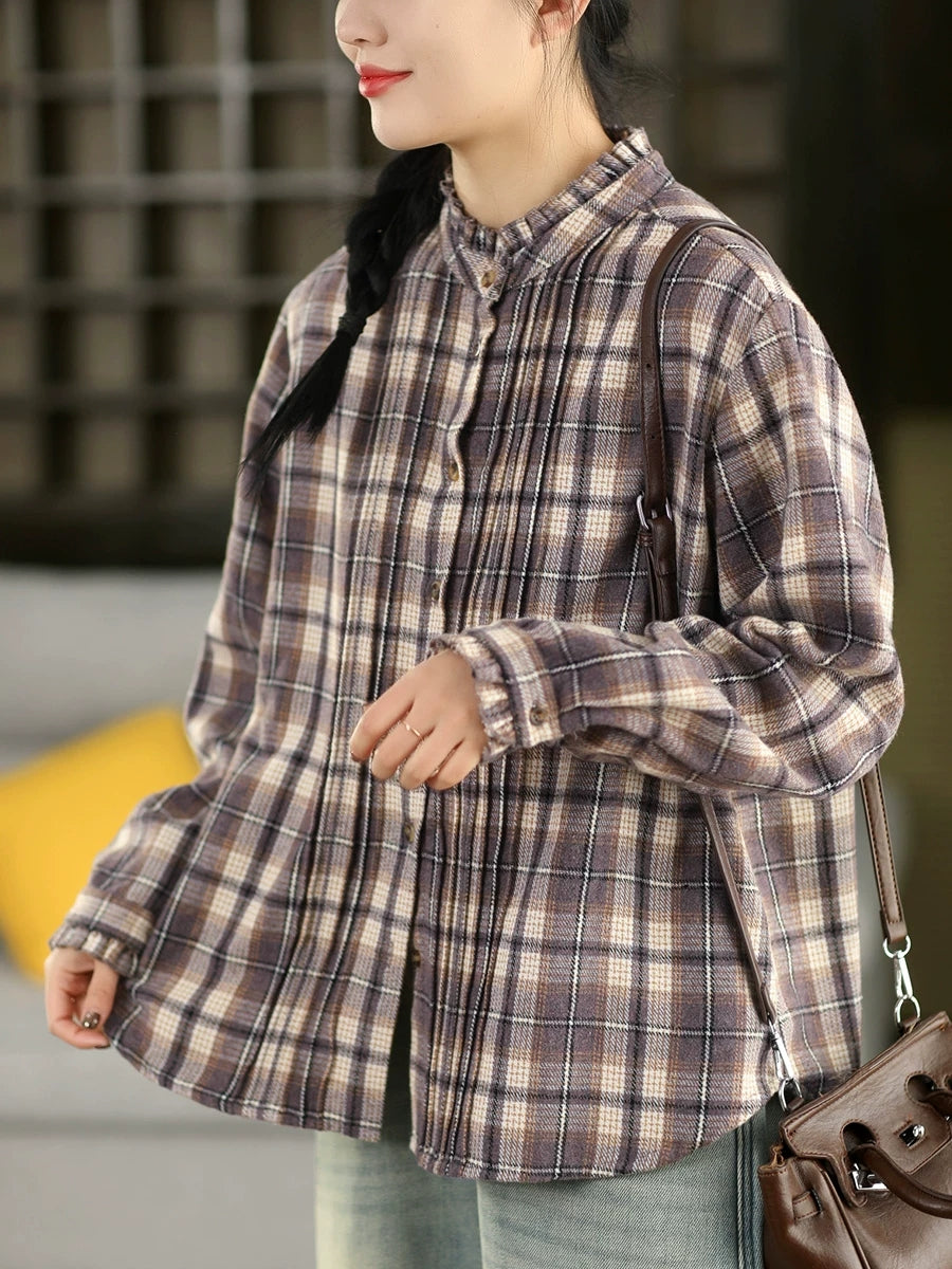 Dámská jarní vintage kostkovaná košile s odkládacím límcem