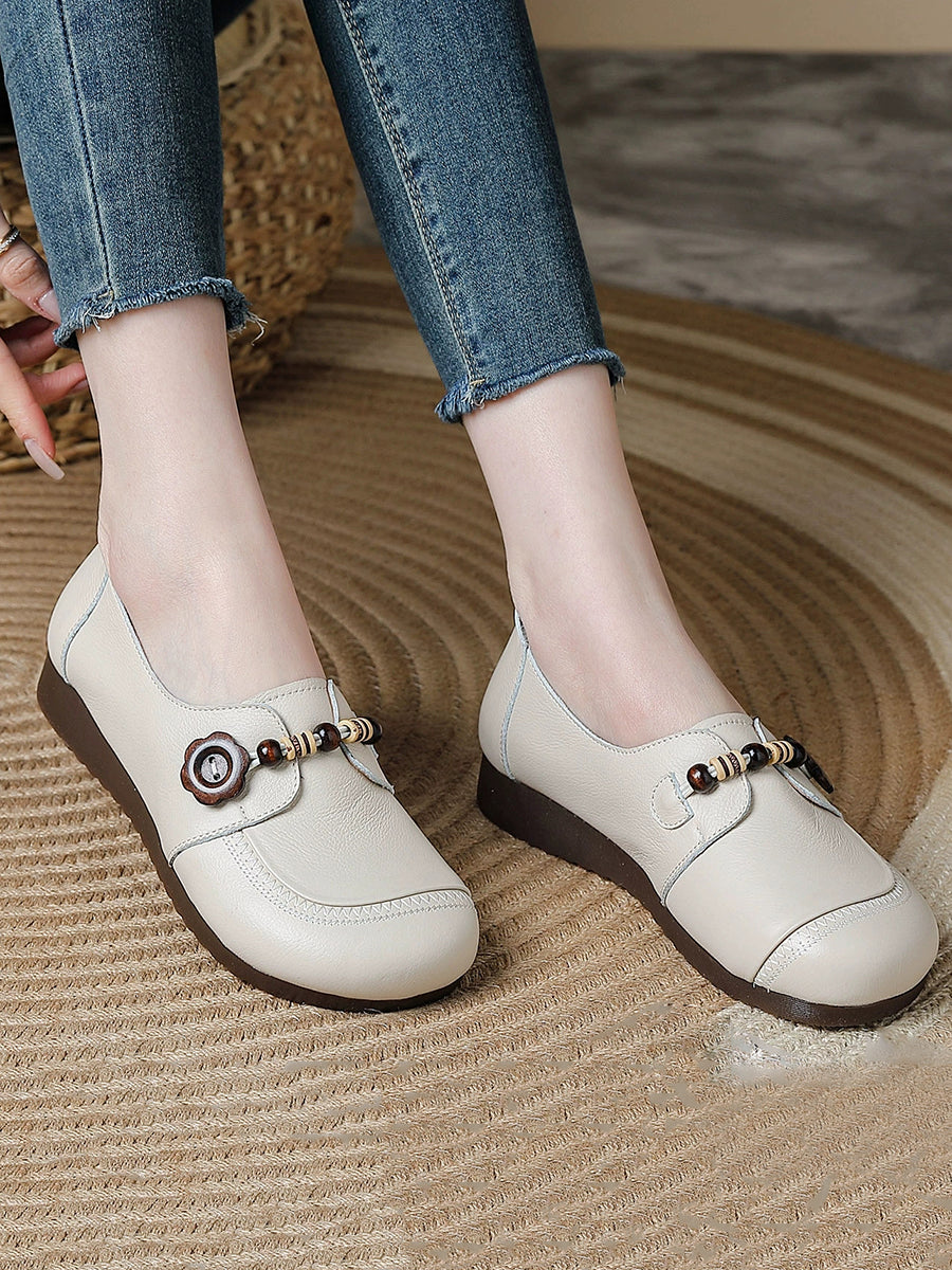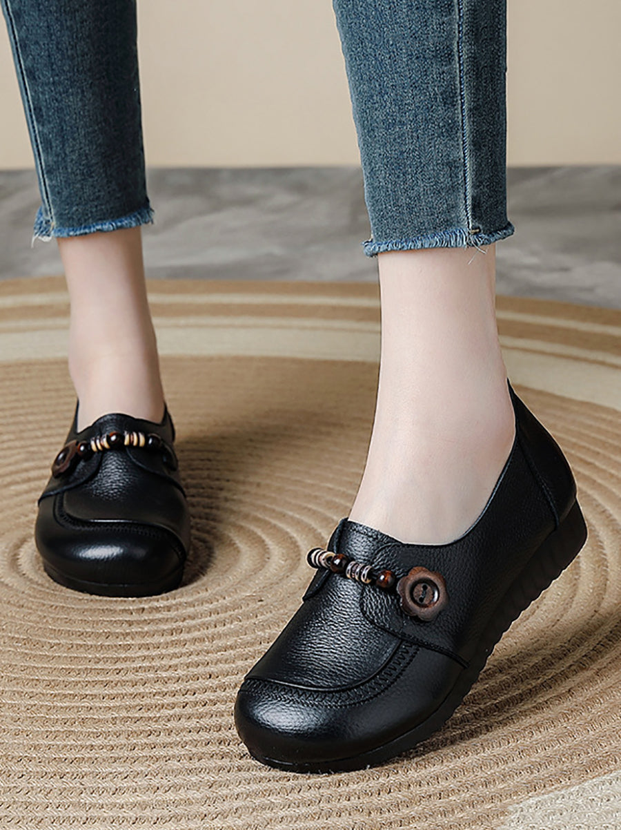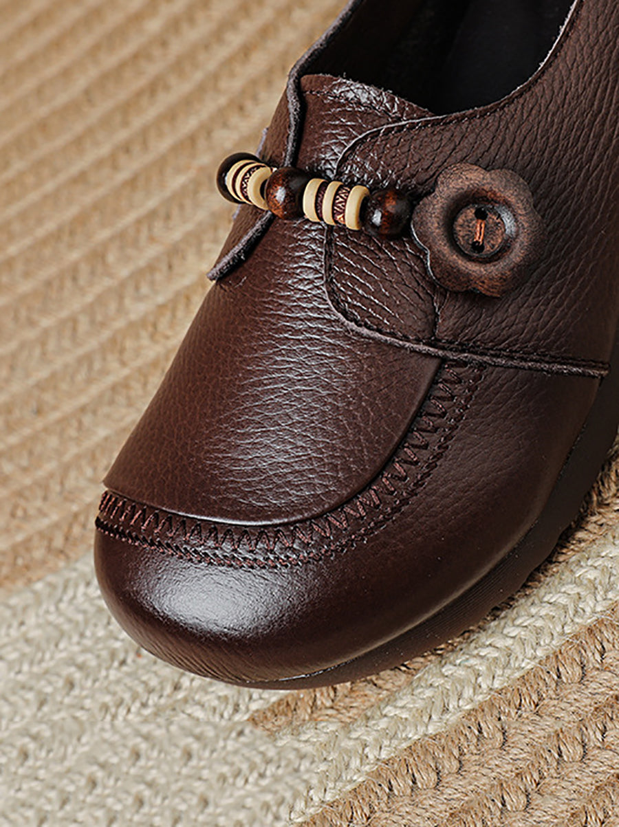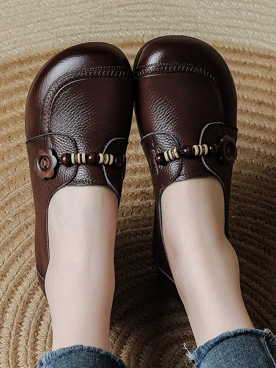Dámské vintage boty z pravé kůže s dřevěnými korálky