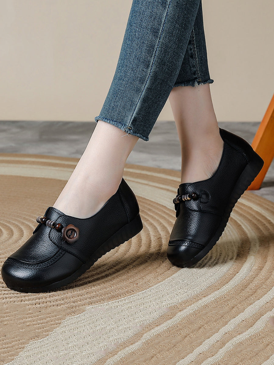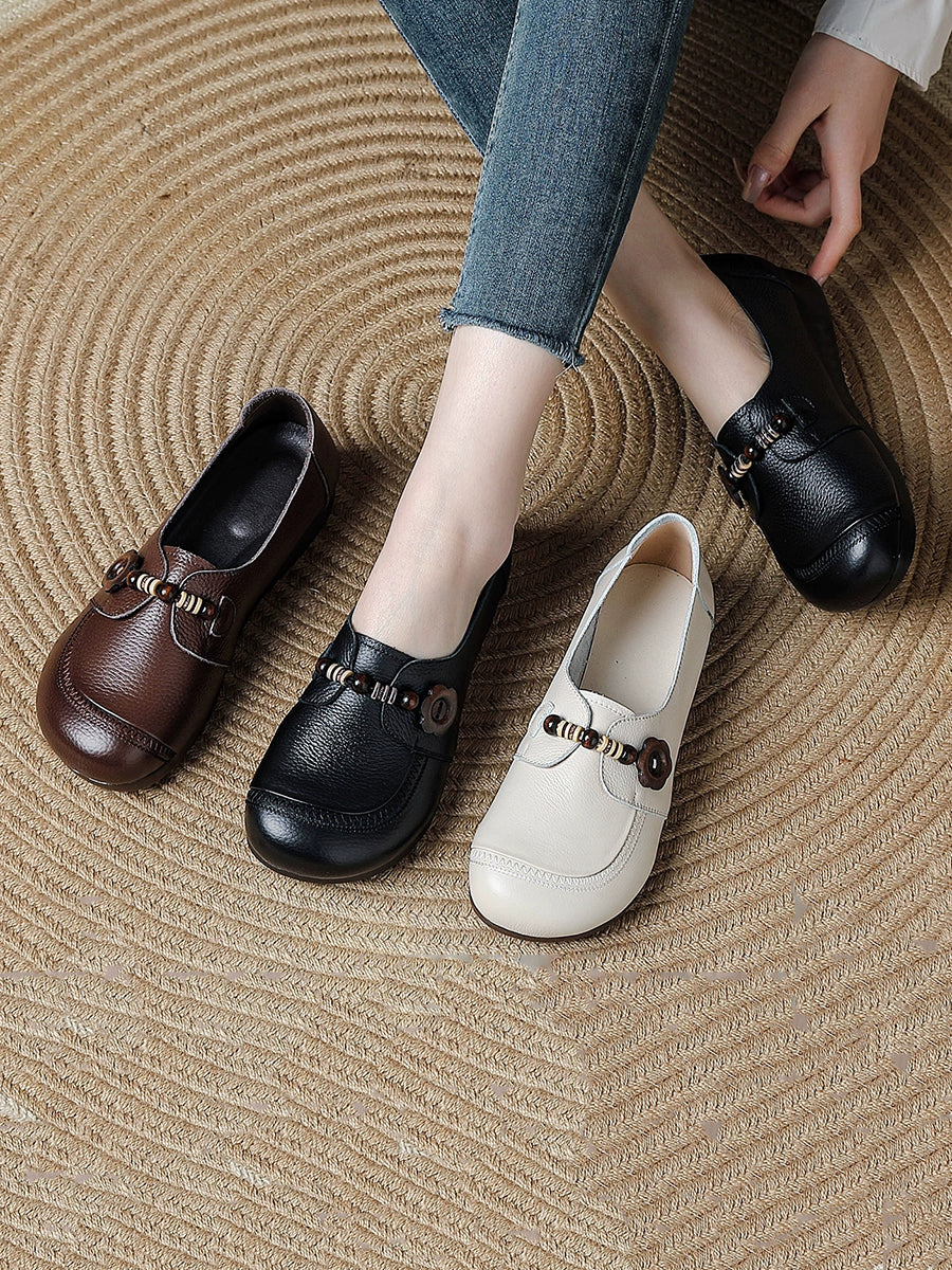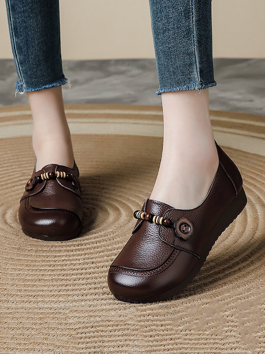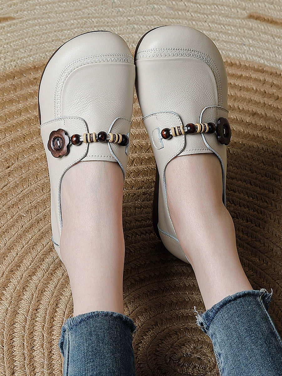 Dámské vintage boty z pravé kůže s dřevěnými korálky