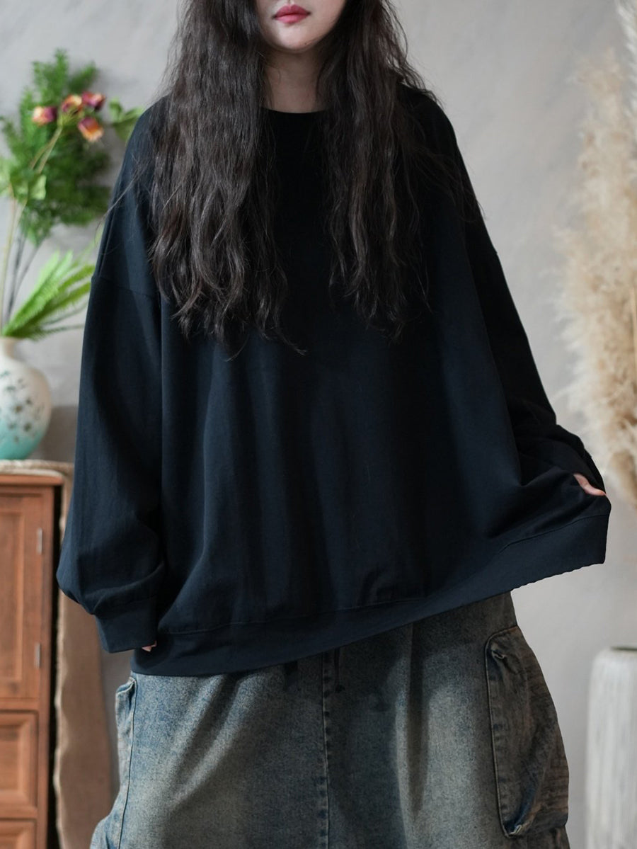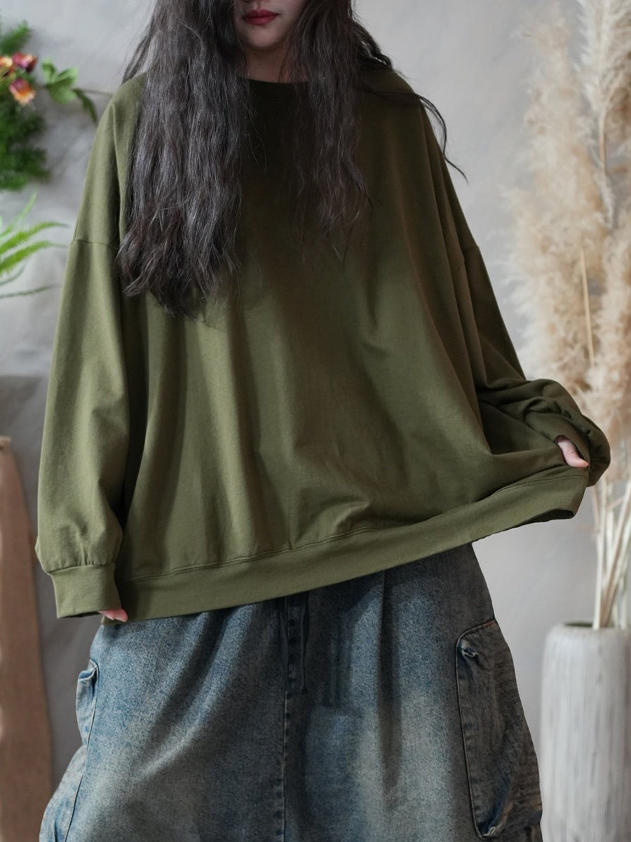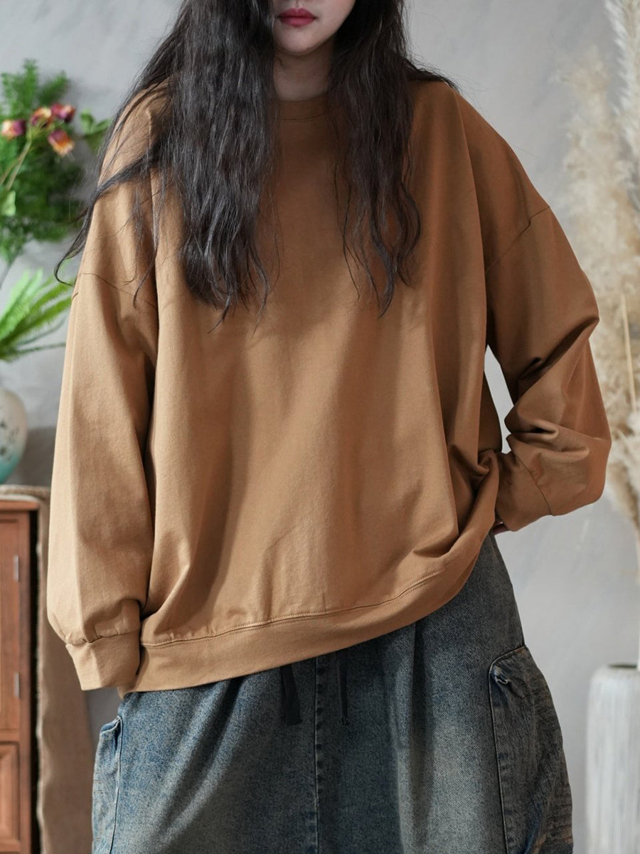 Dámská jarní umělecká čistě barevná halenka s O-krkem ze 100% bavlny