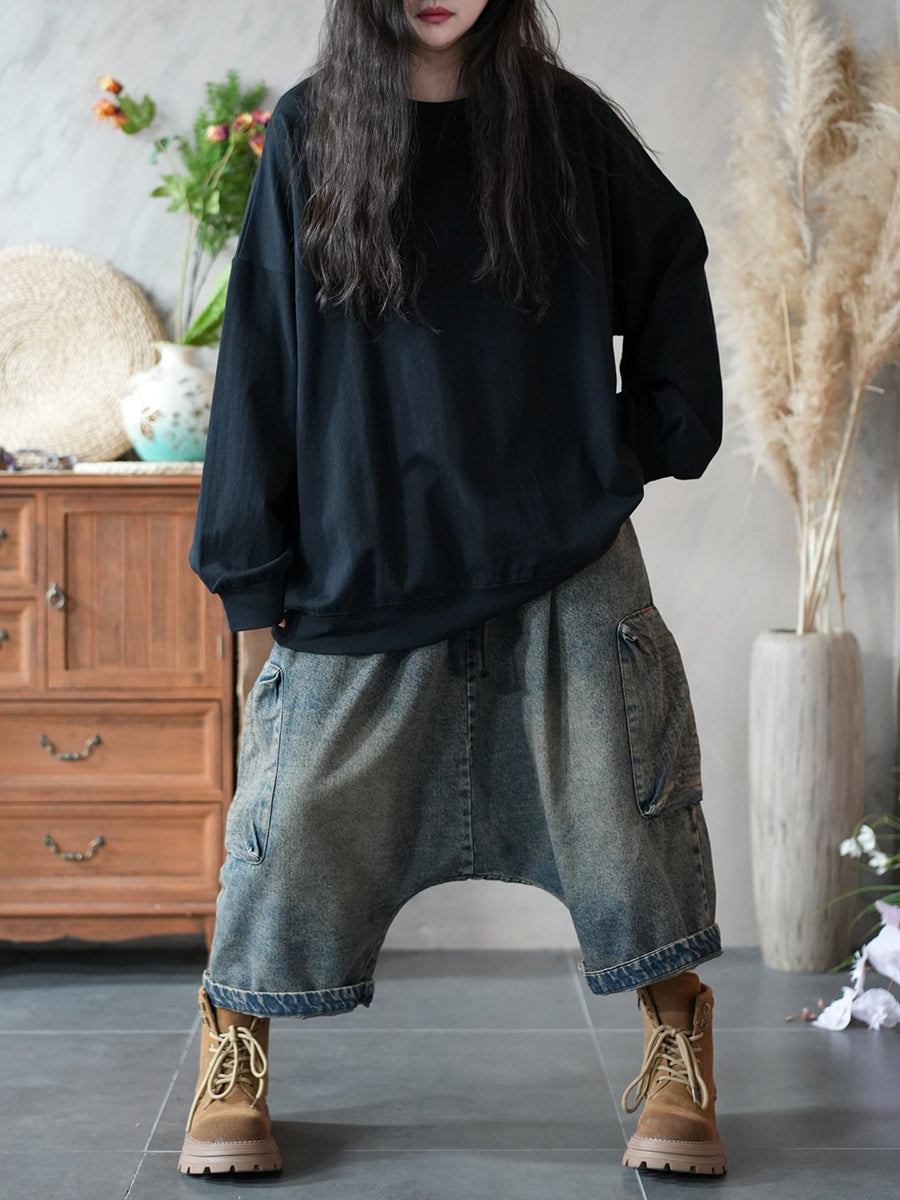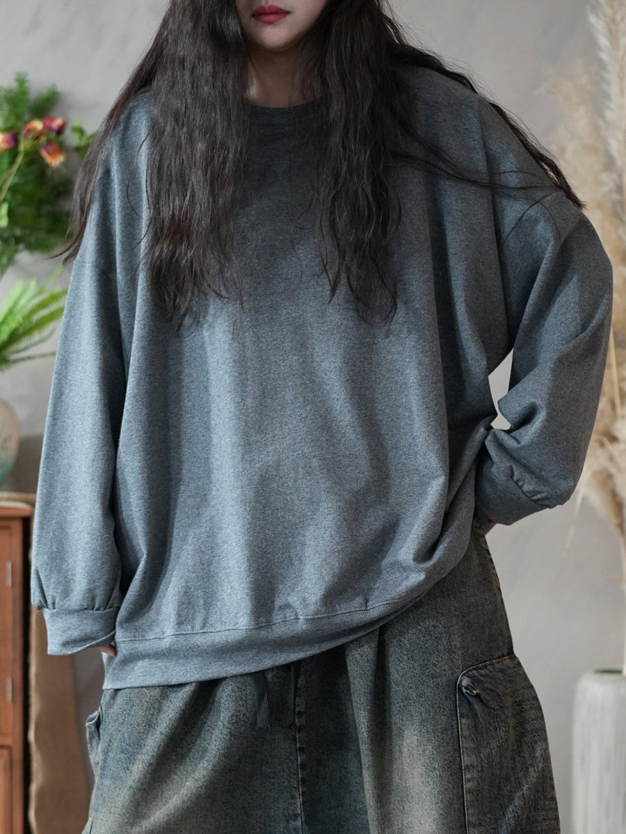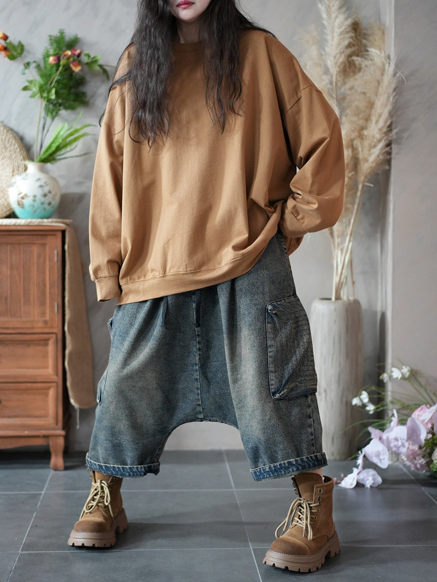 Dámská jarní umělecká čistě barevná halenka s O-krkem ze 100% bavlny