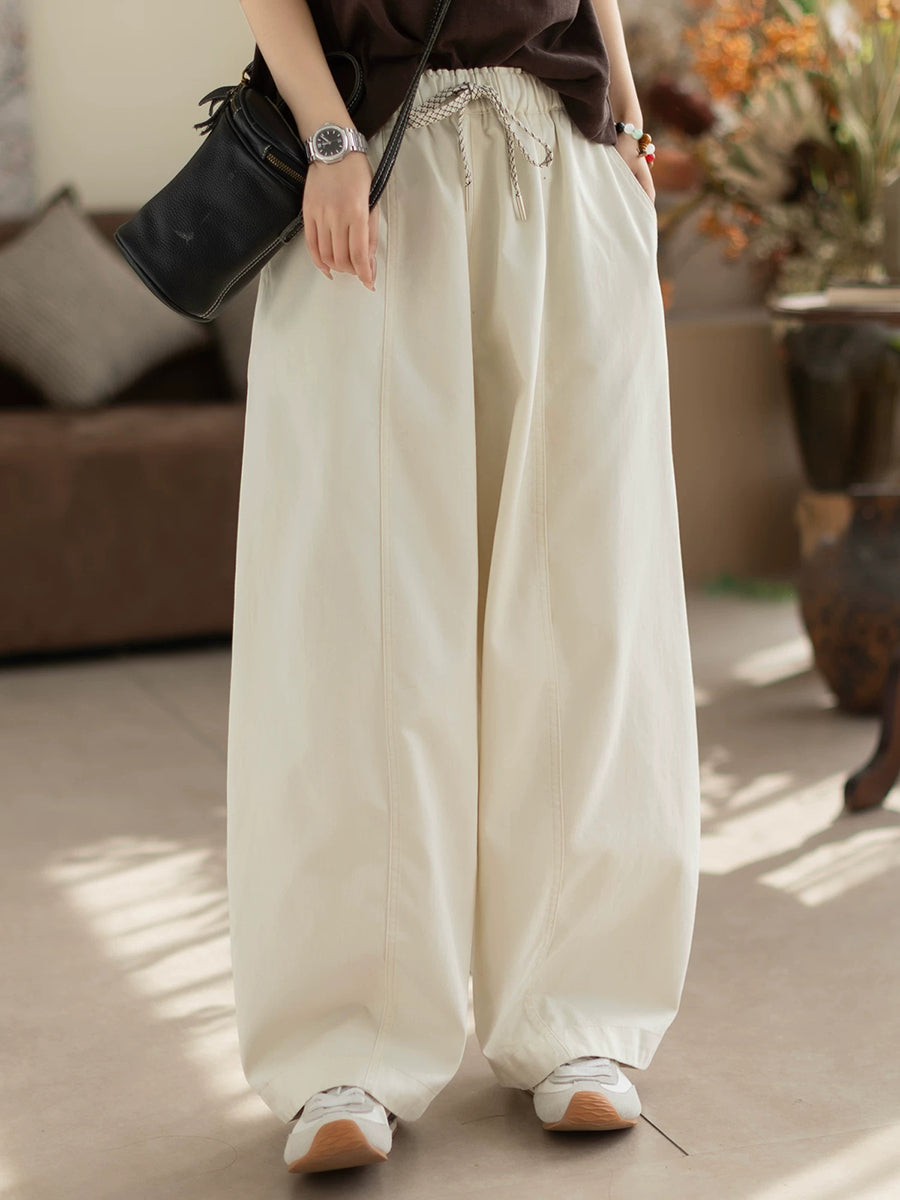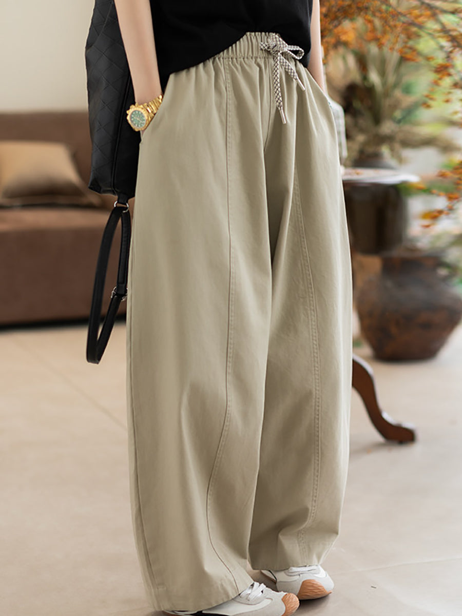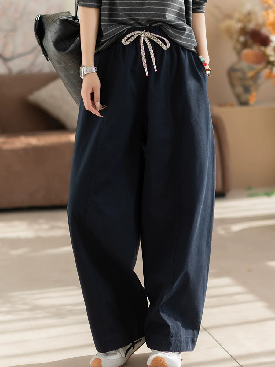 Dámské jarní ležérní čisté barvy, 100% bavlněné rovné kalhoty