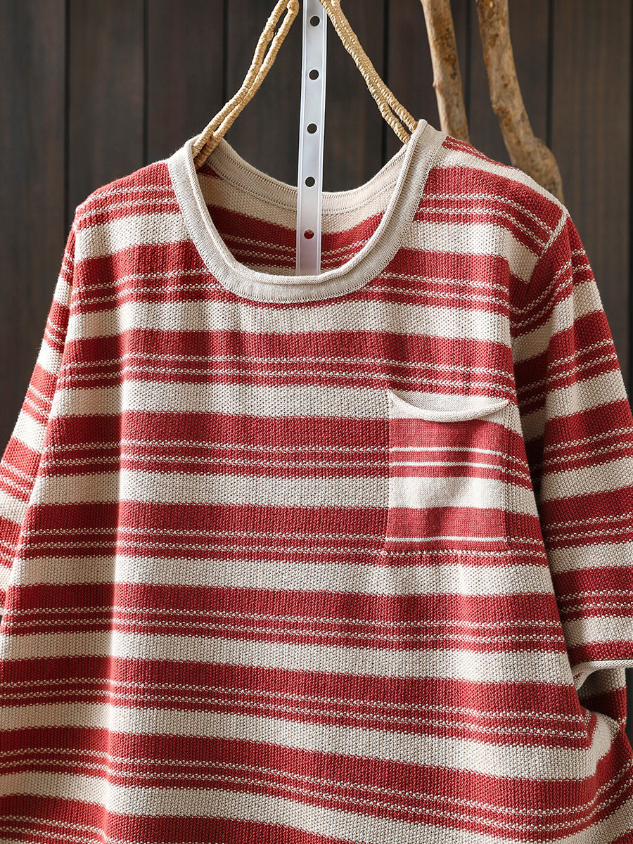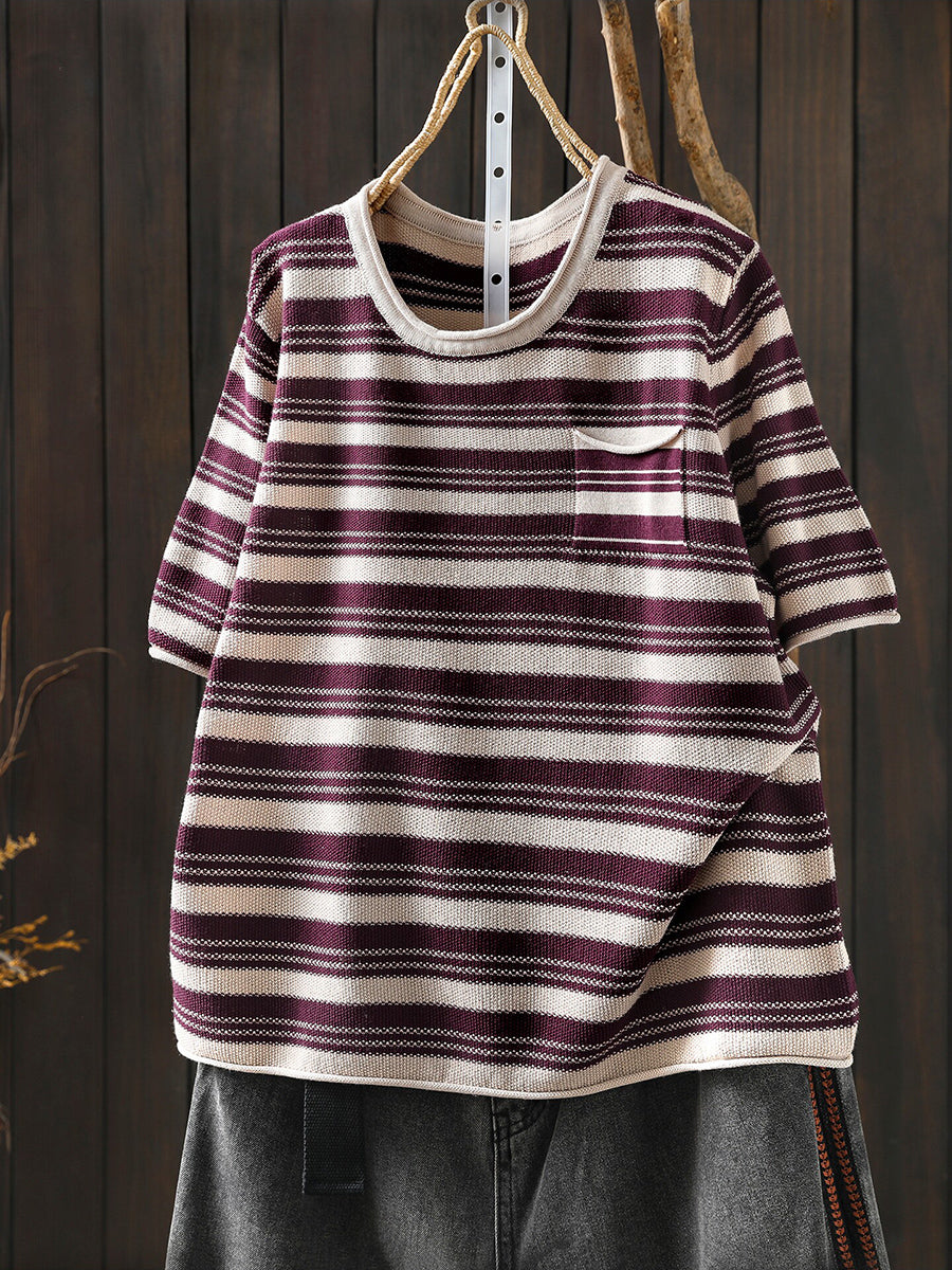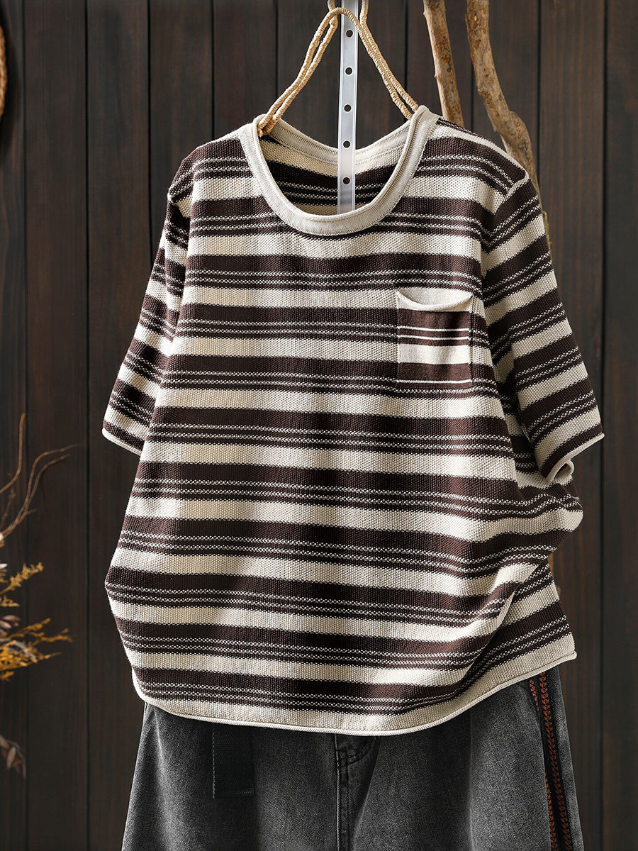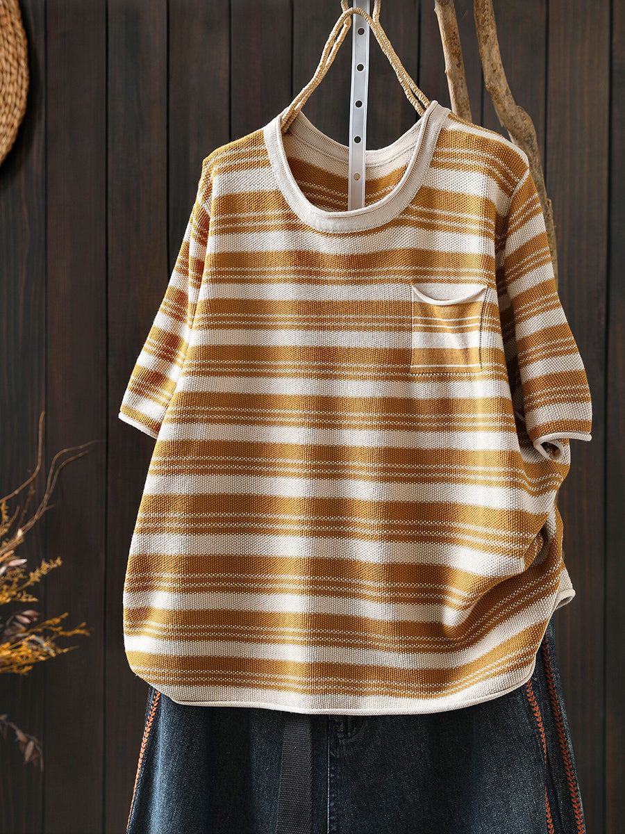 Dámské letní ležérní pruhované bavlněné tričko s výstřihem do O-neck