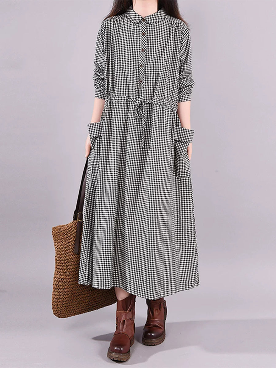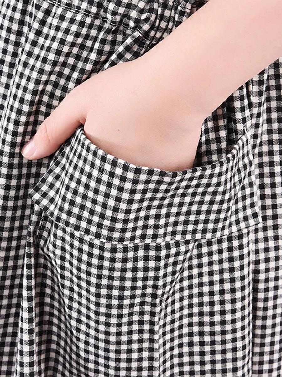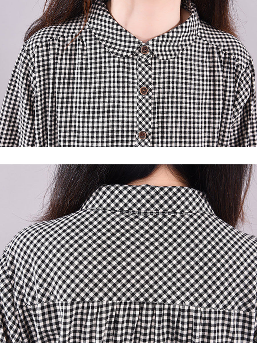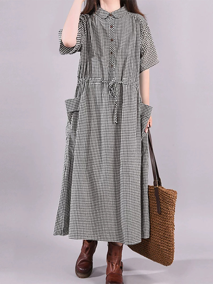 Dámské letní umělecké kostkované šaty s odkládacím límcem