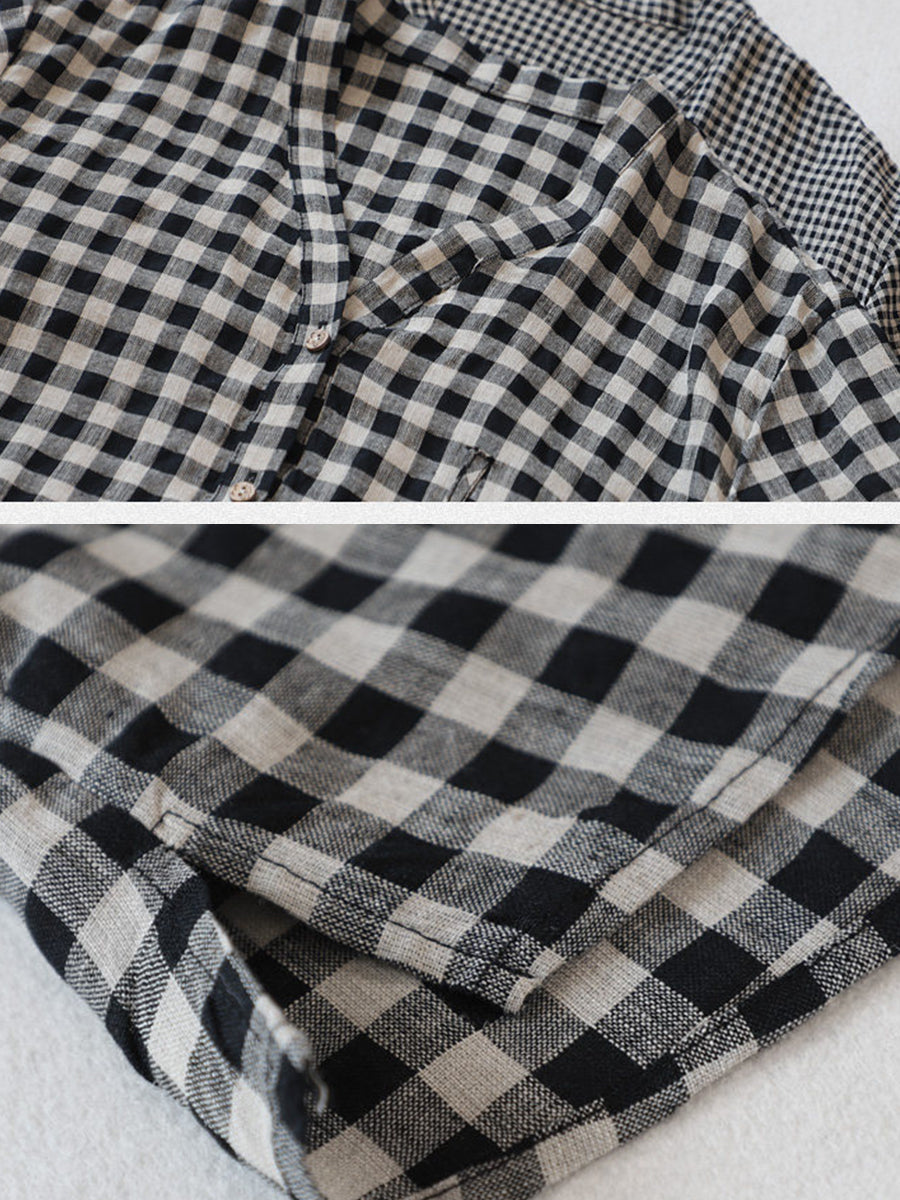 Dámská letní kostkovaná košile s výstřihem do V, 100% lněný vzor