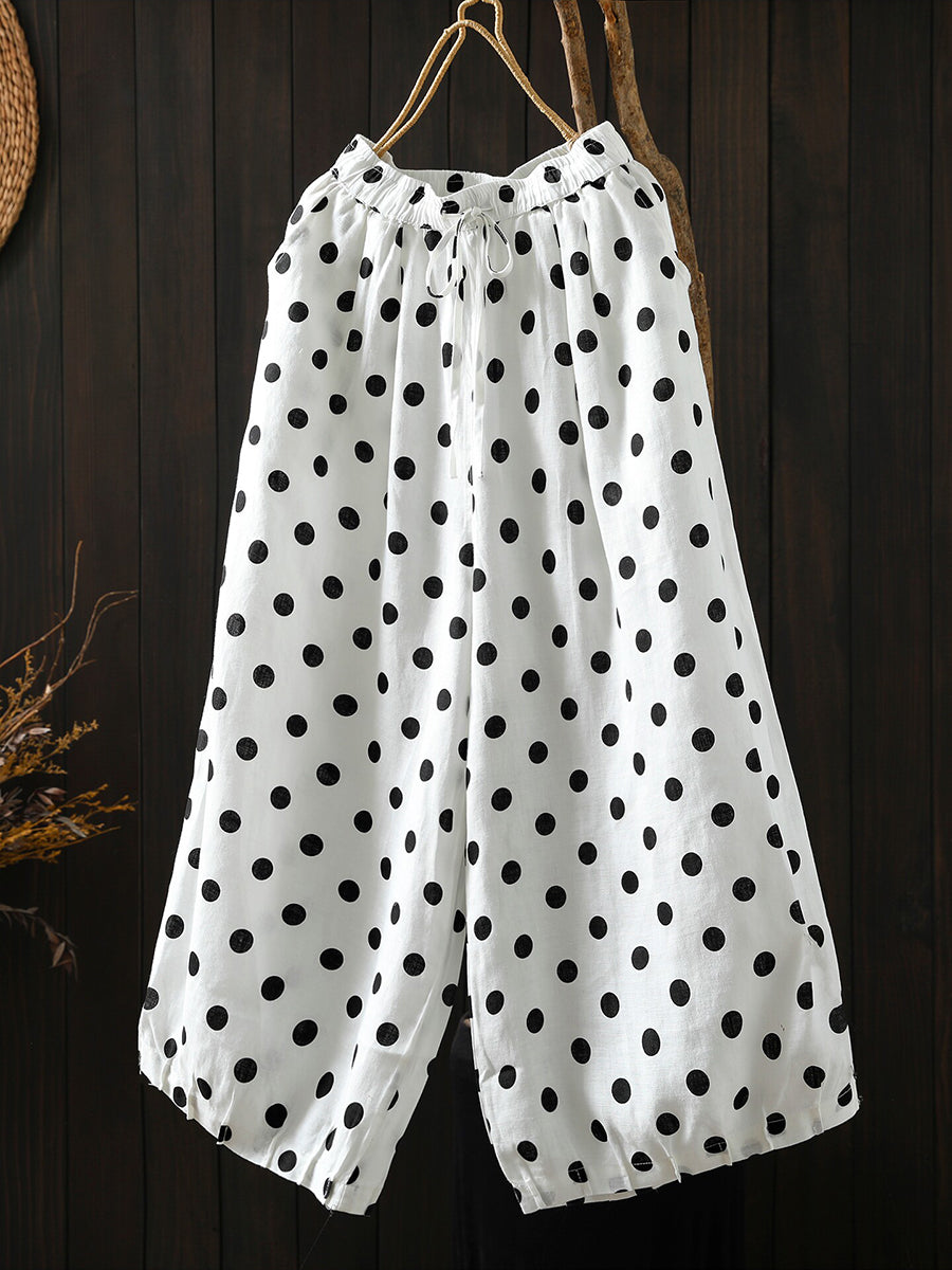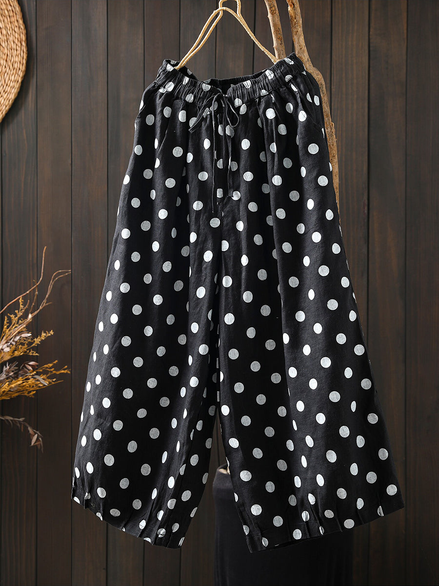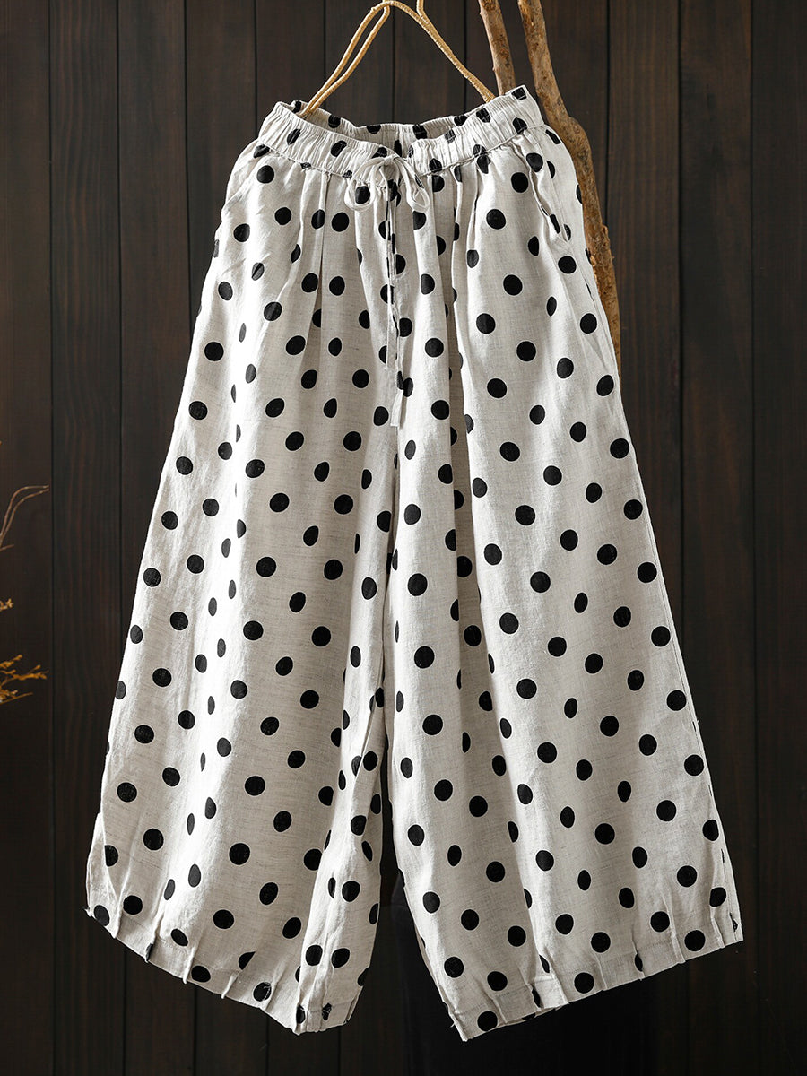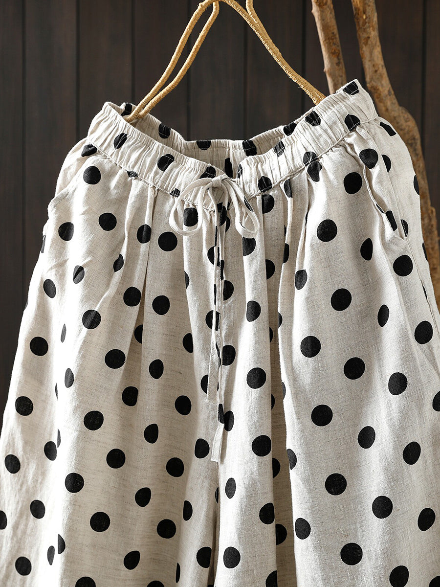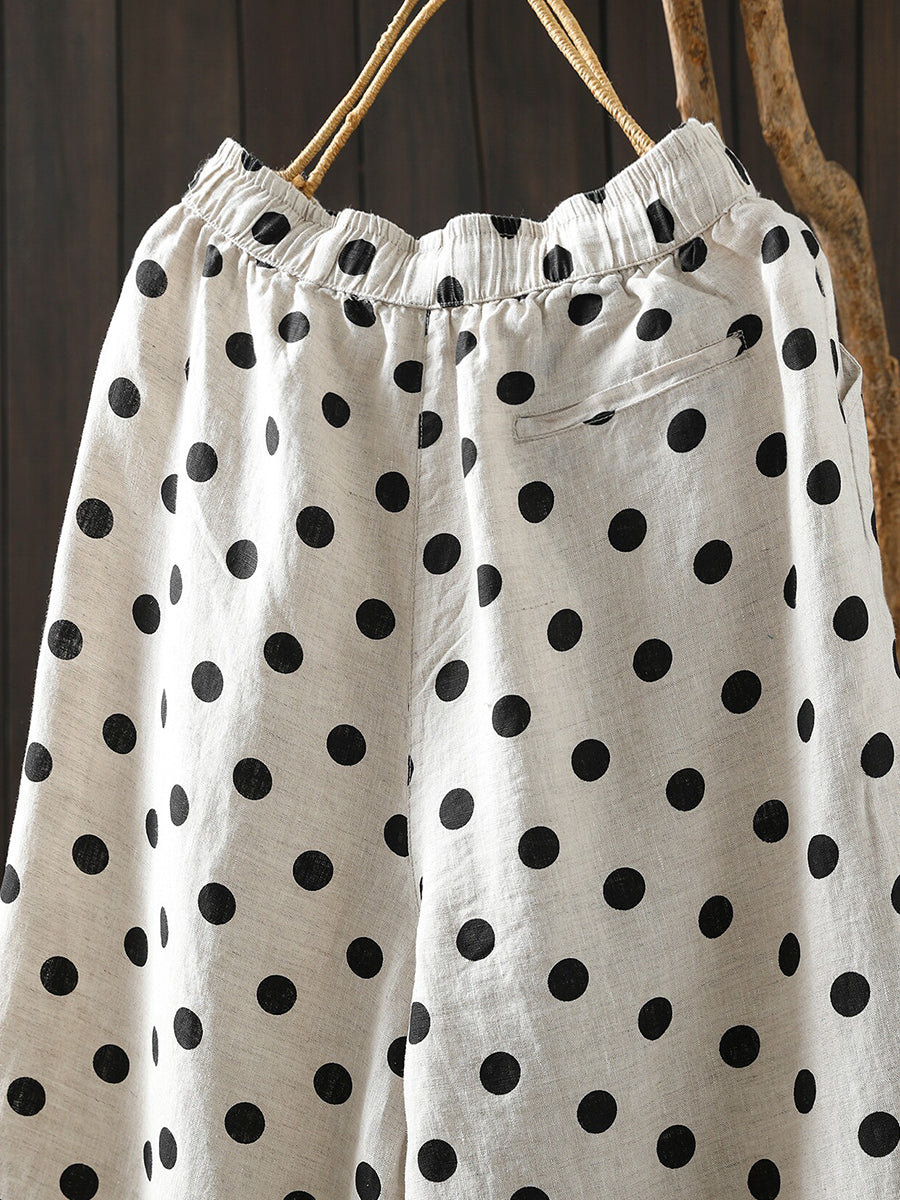 Dámské letní puntíkované kalhoty se širokými nohavicemi ze 100% lnu
