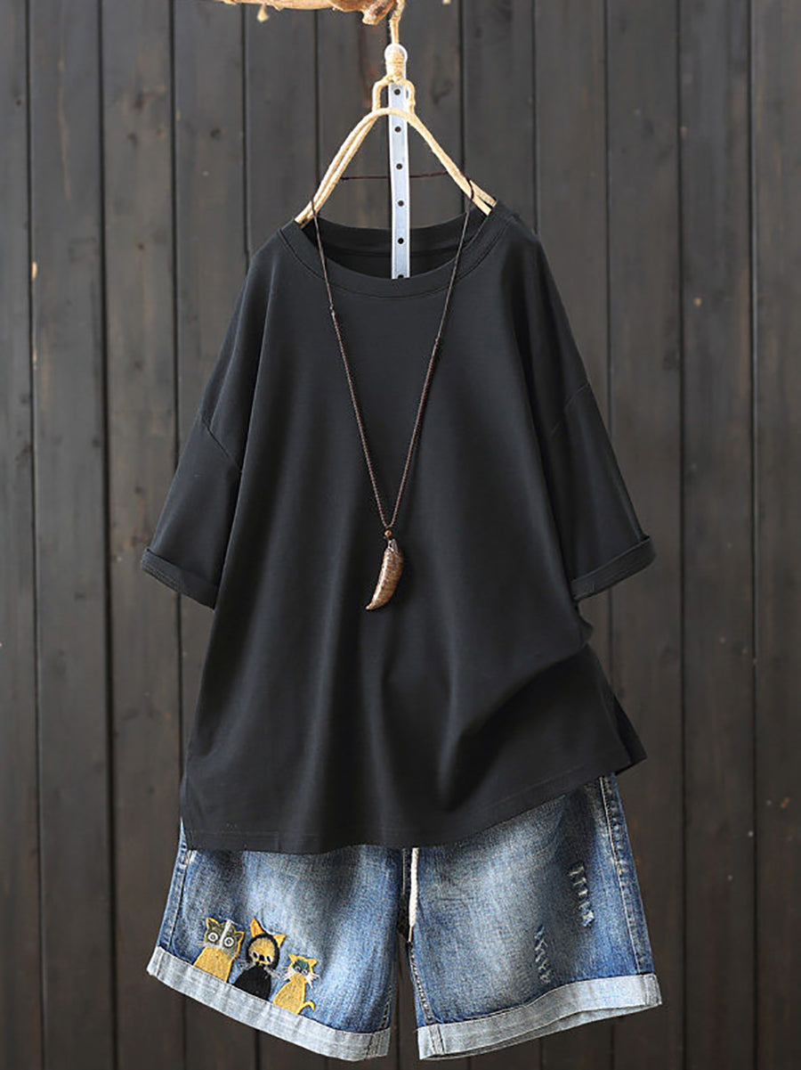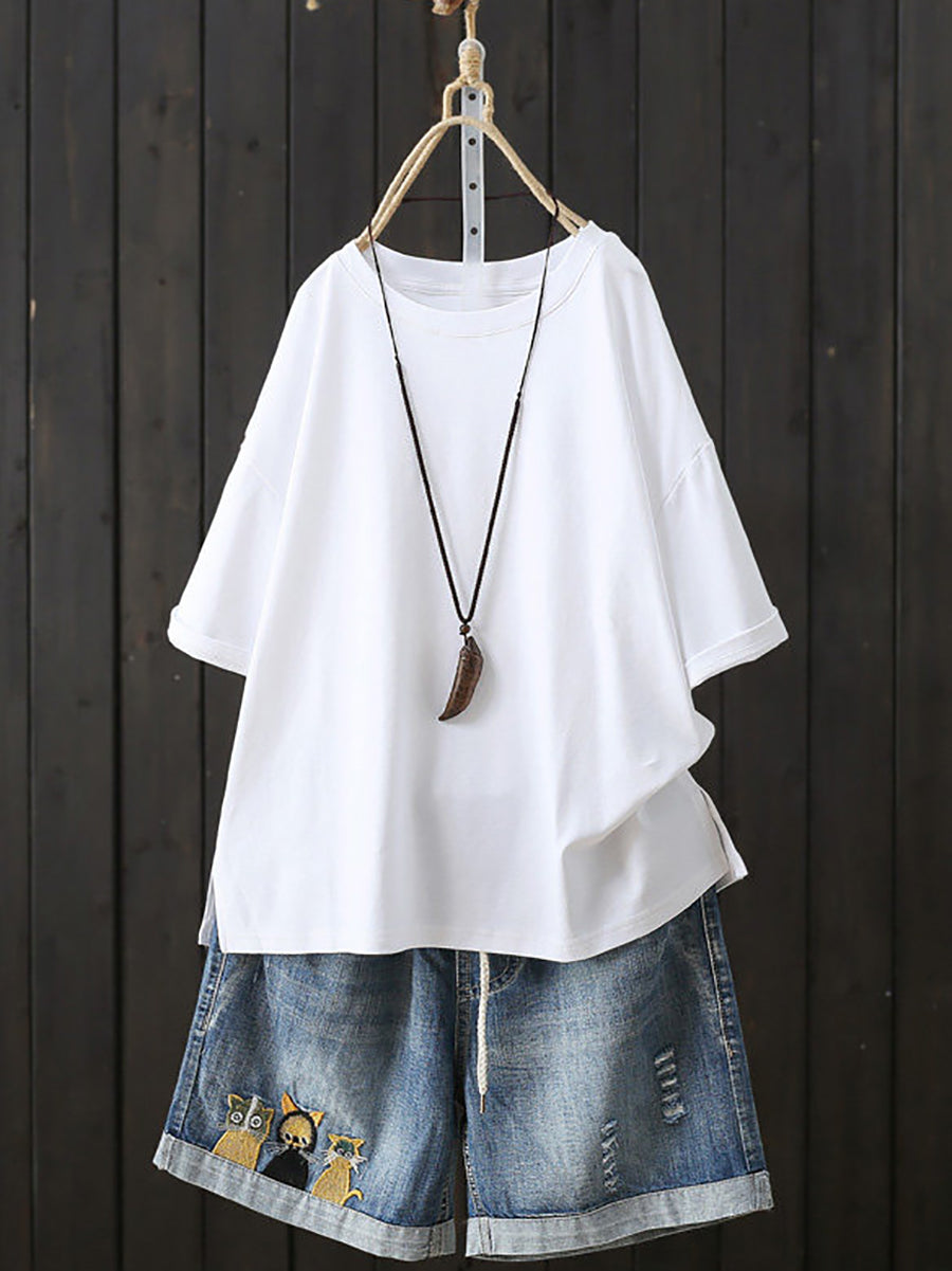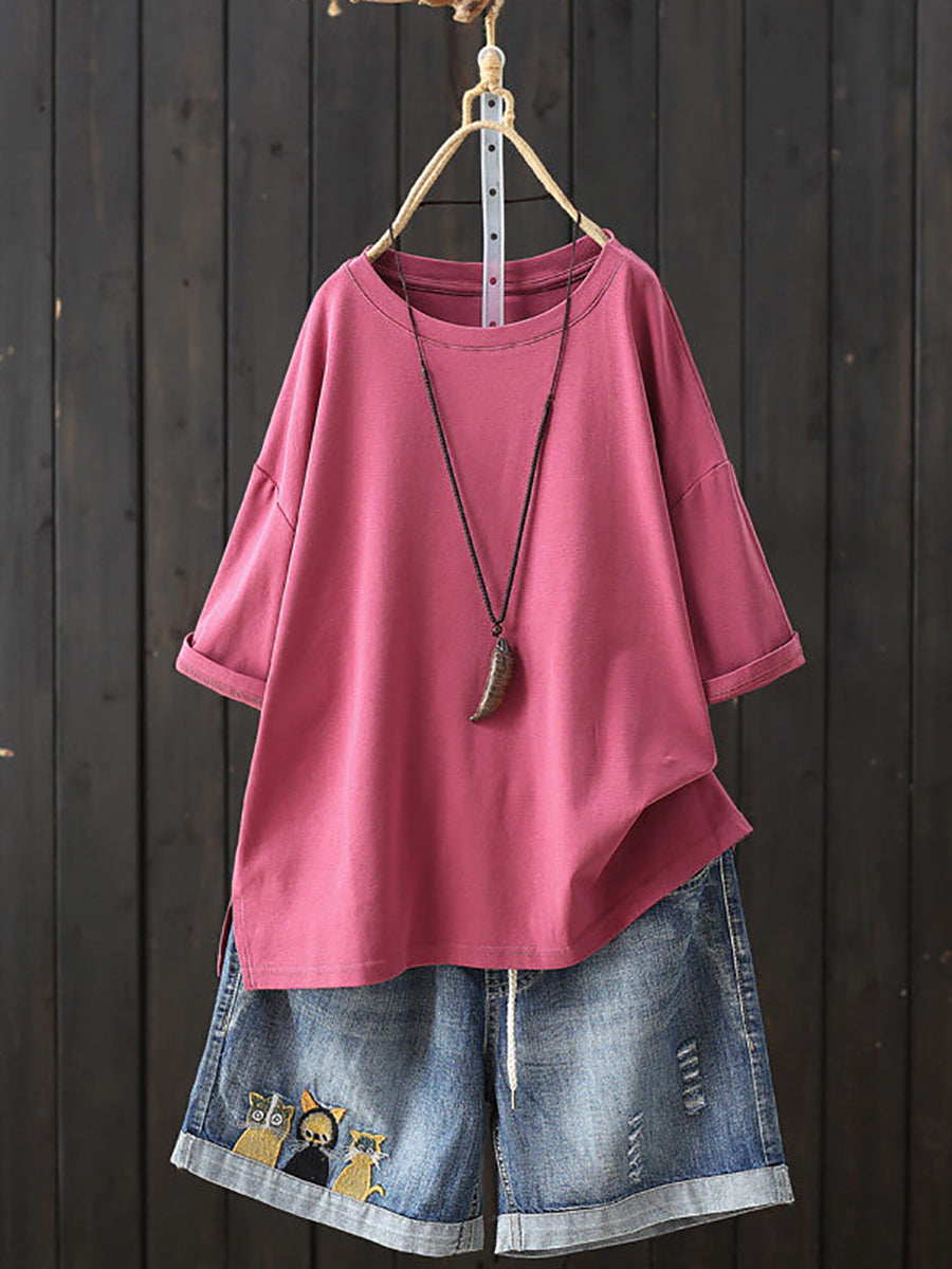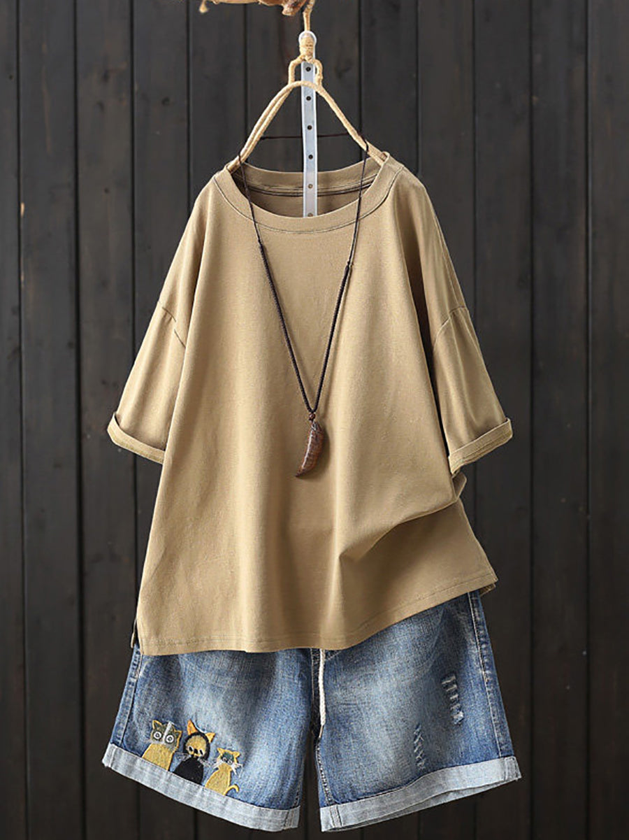 Dámské letní ležérní tričko s výstřihem do O-neck v čistých barvách
