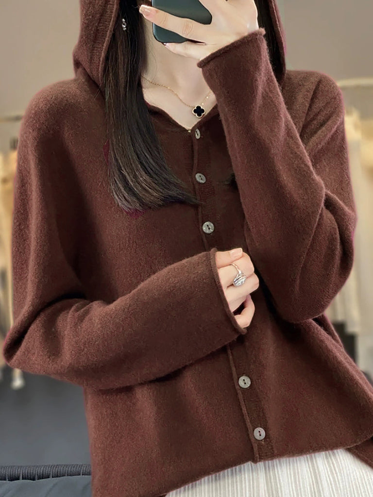 Dámský podzimní ležérní pletený vlněný svetr s kapucí