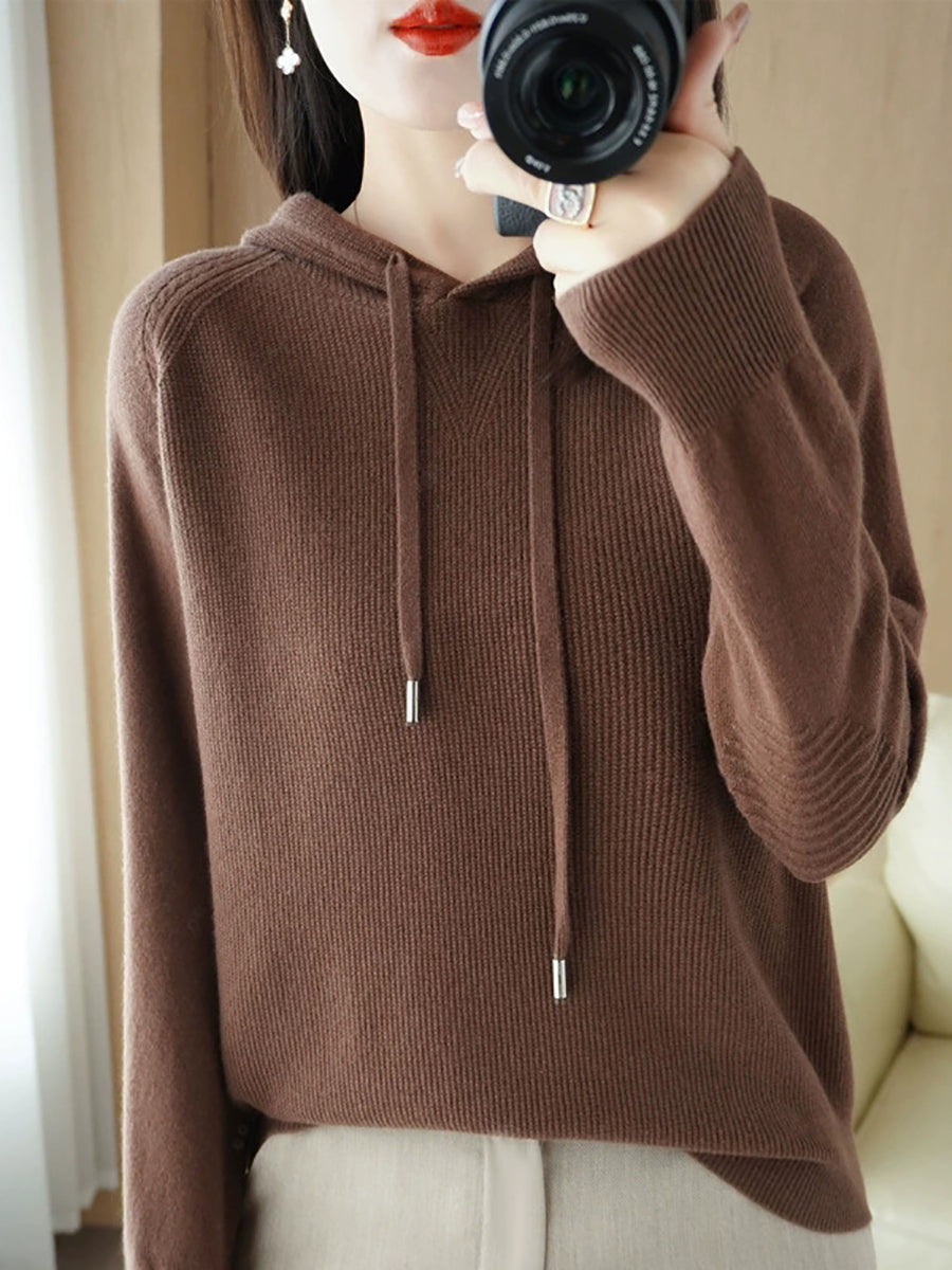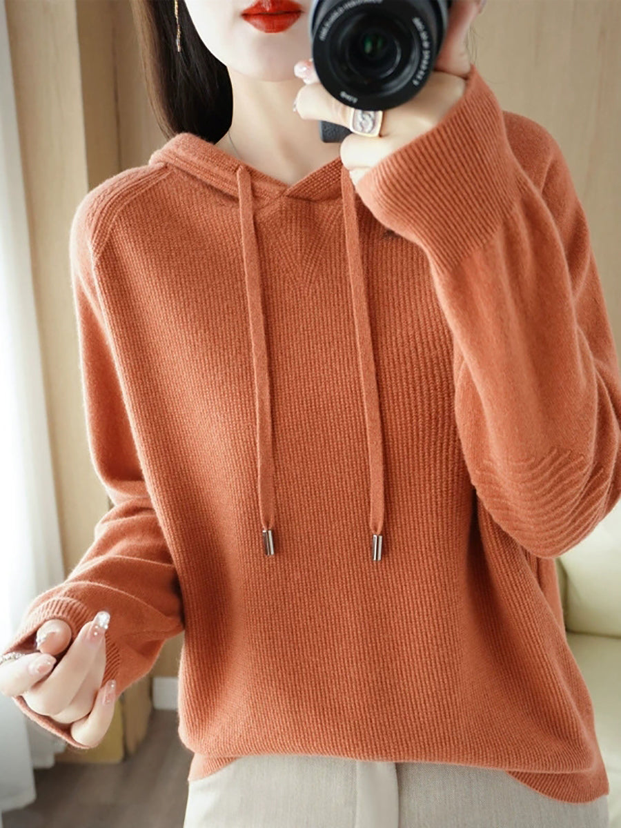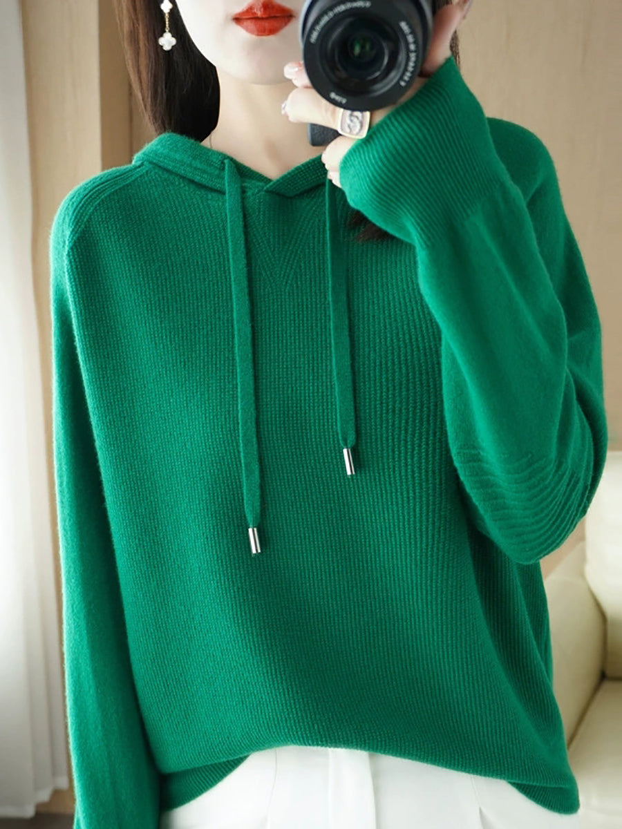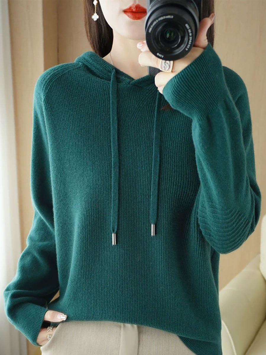 Dámský jarní ležérní svetr s kapucí v čistých barvách