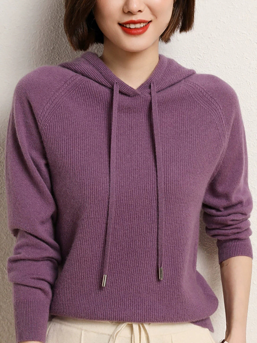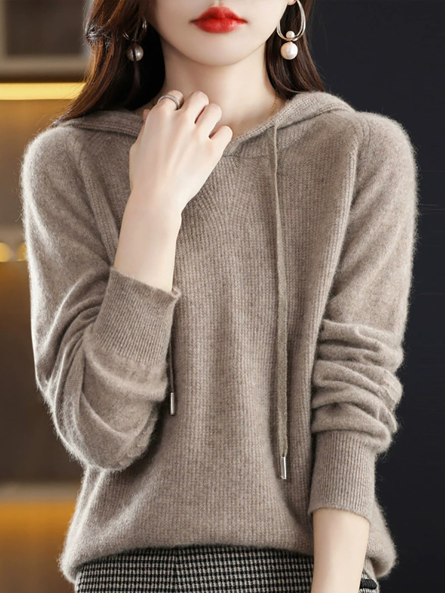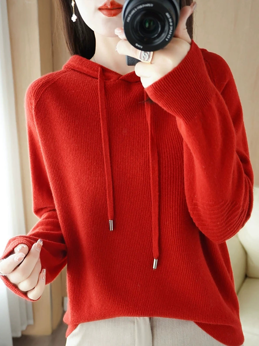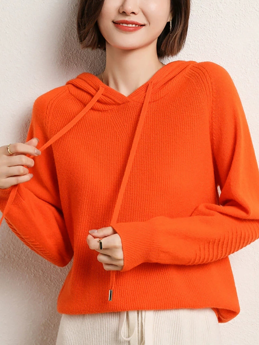 Dámský jarní ležérní svetr s kapucí v čistých barvách