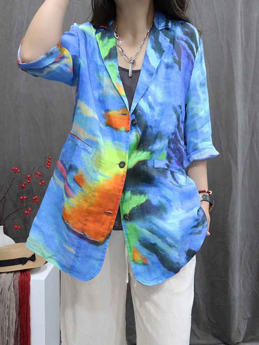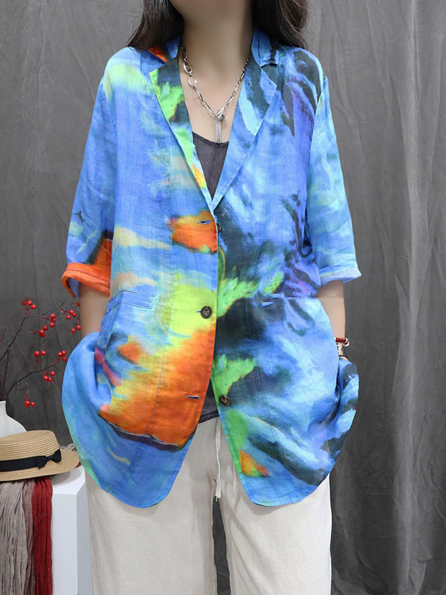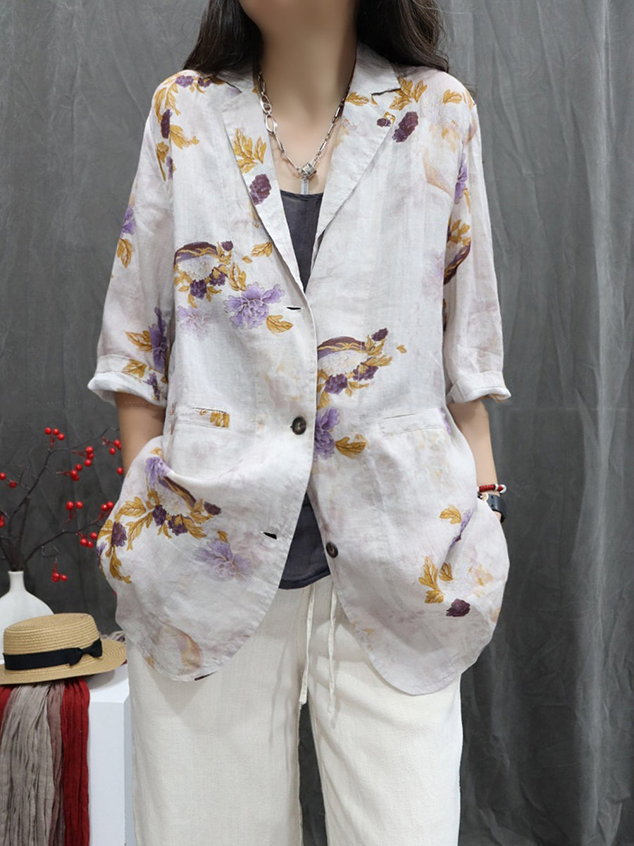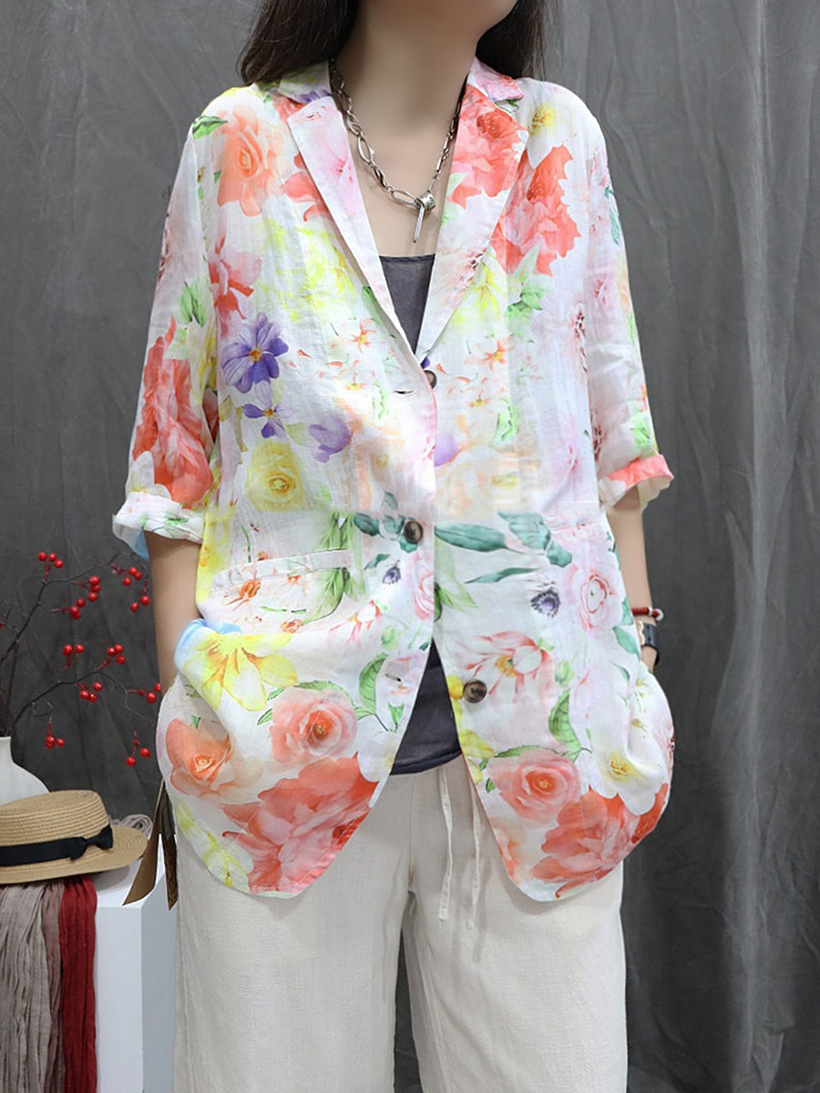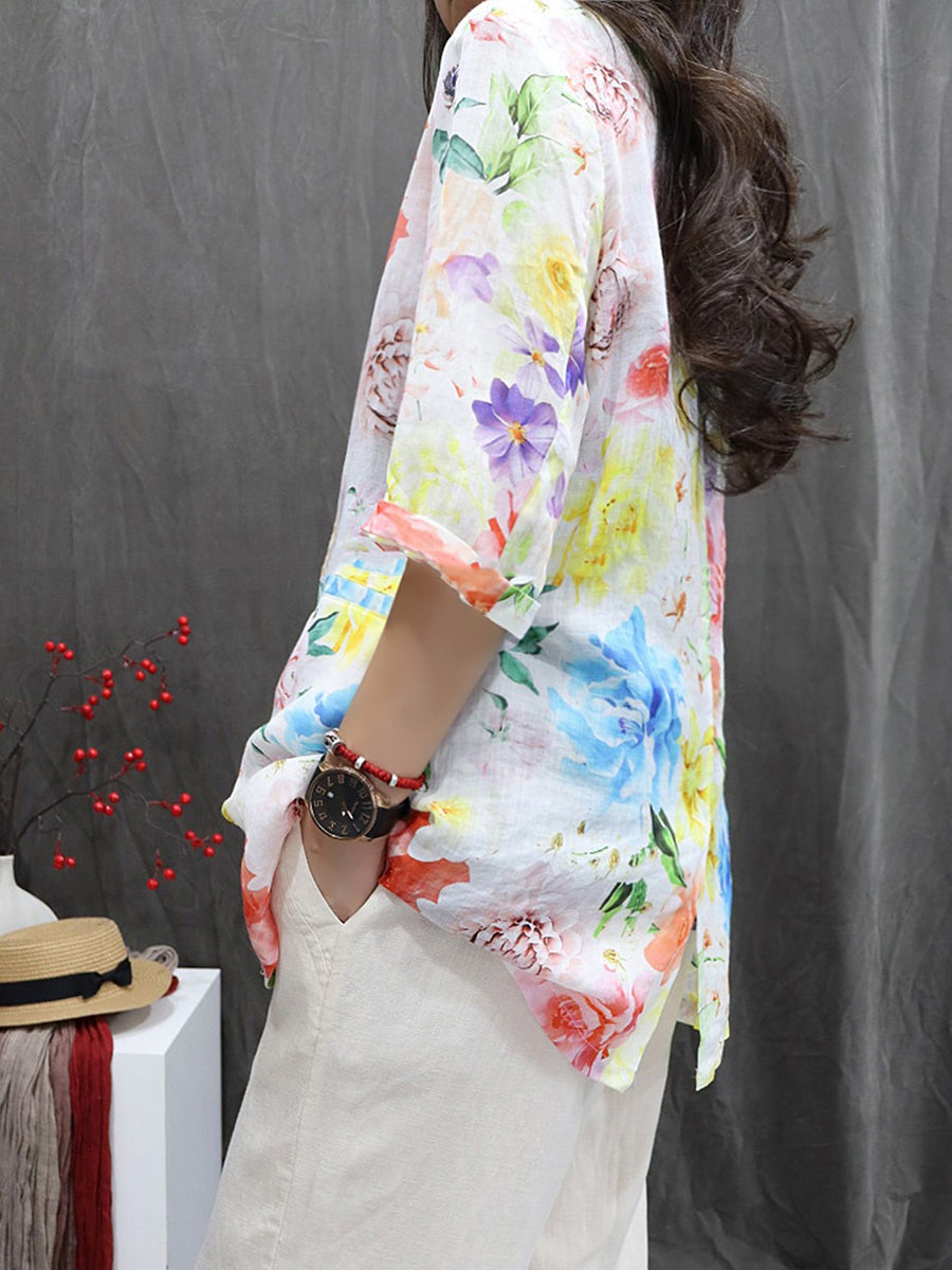 Dámský umělecký letní květinový kabát ze 100% ramie