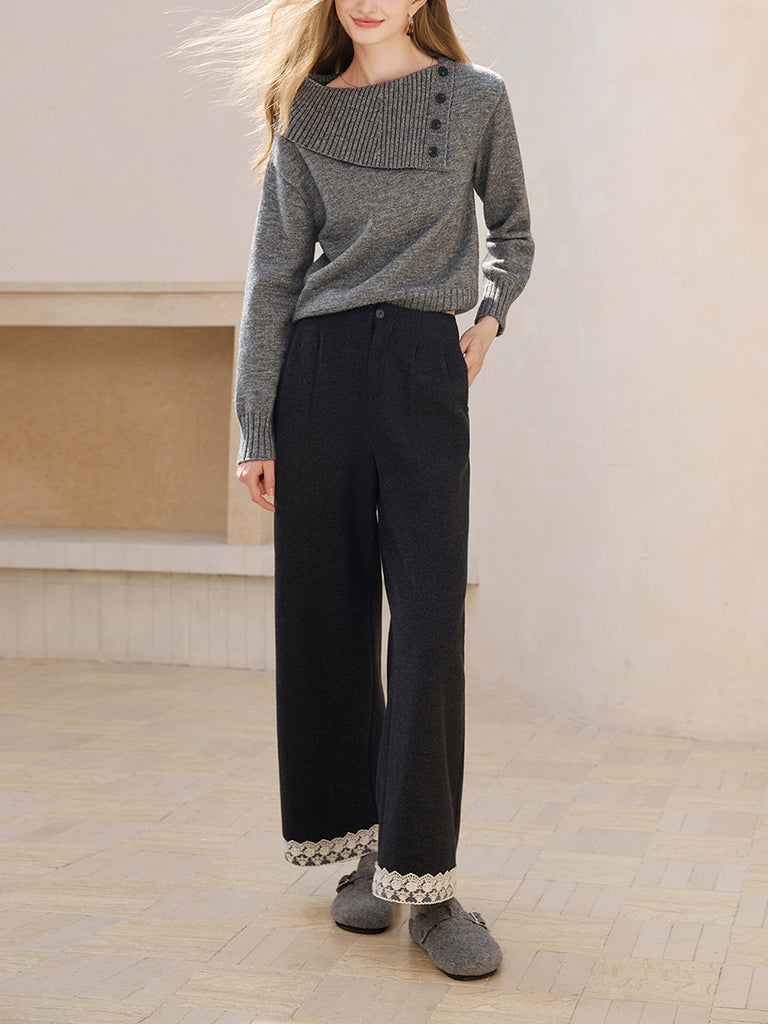 Dámské podzimní retro krajkové rovné kalhoty