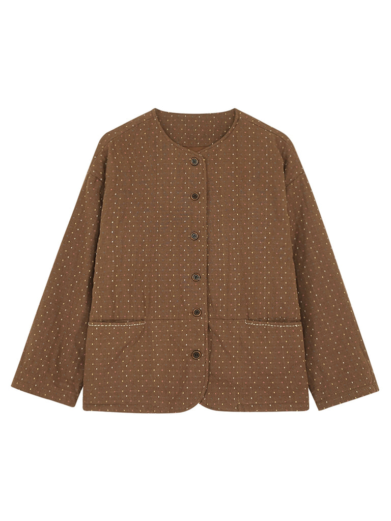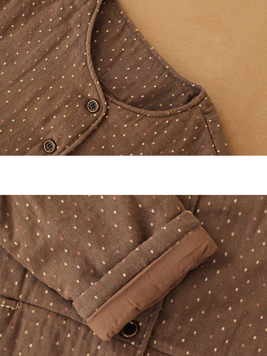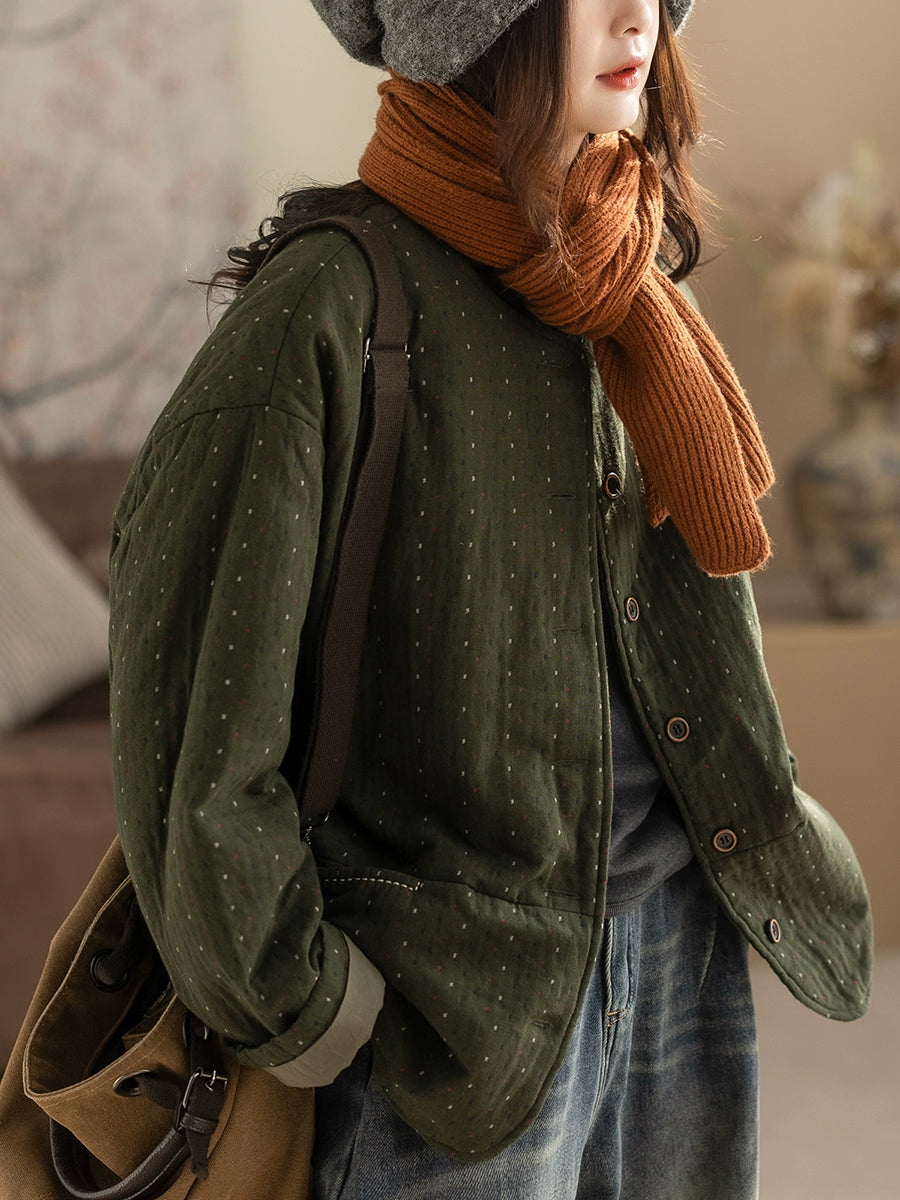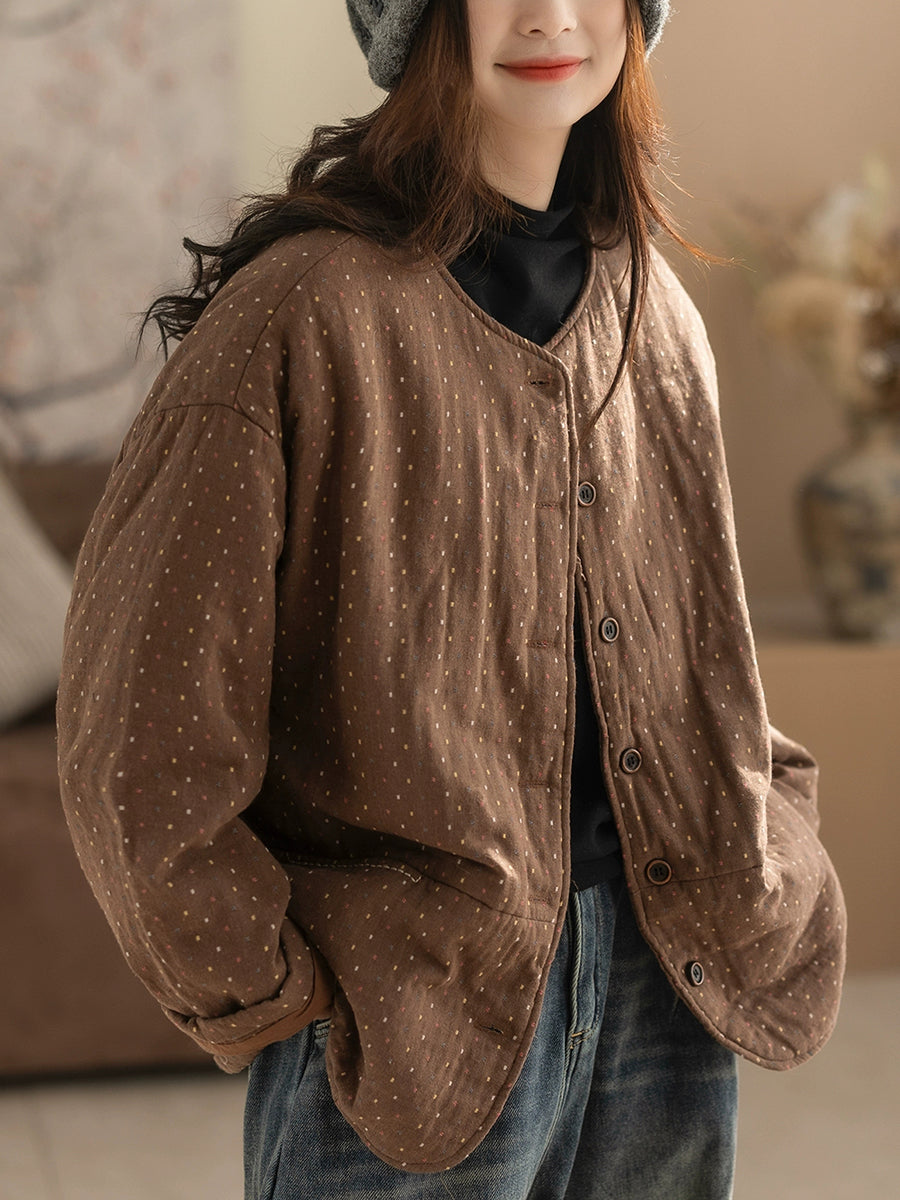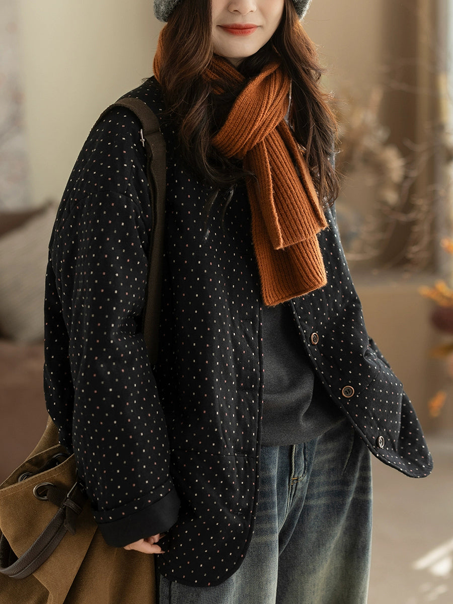 Dámský zimní retro puntíkovaný prošívaný kabát s výstřihem do O-neck
