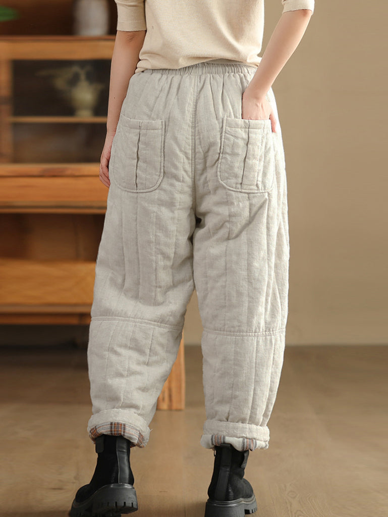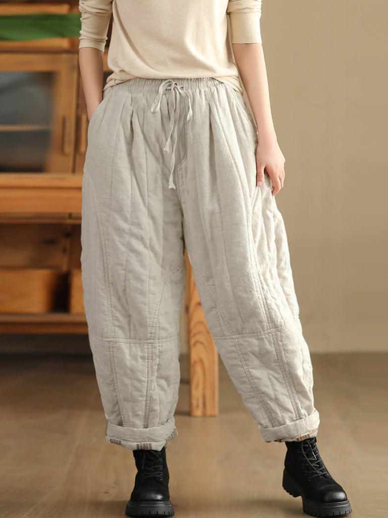 Dámské podzimní čisté barvy 100% lněné prošívané harémové kalhoty