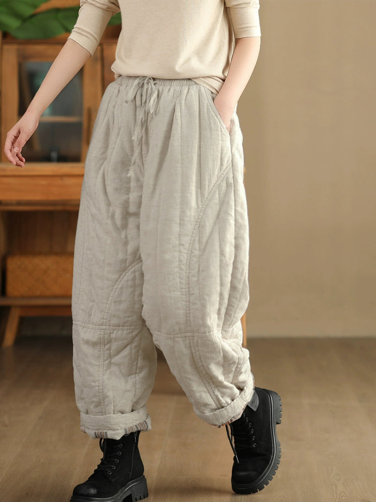 Dámské podzimní čisté barvy 100% lněné prošívané harémové kalhoty