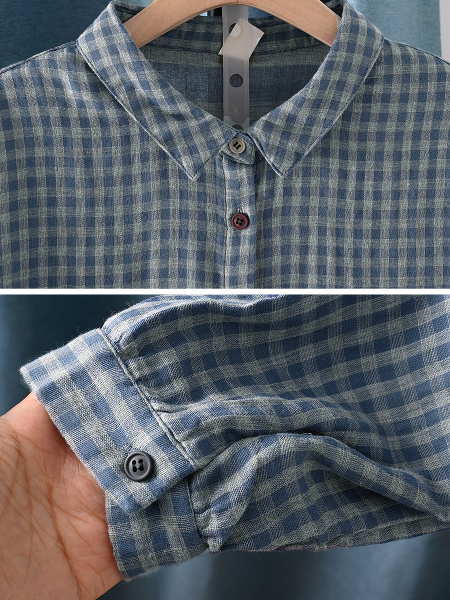 Dámská podzimní kostkovaná košile s odkládacím límcem, 100% bavlna
