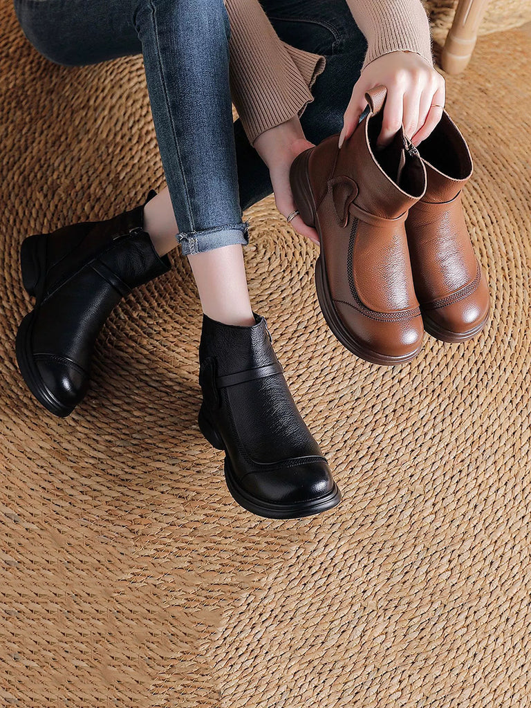 Dámské zimní kožené kozačky na středním podpatku z čistě barevných materiálů