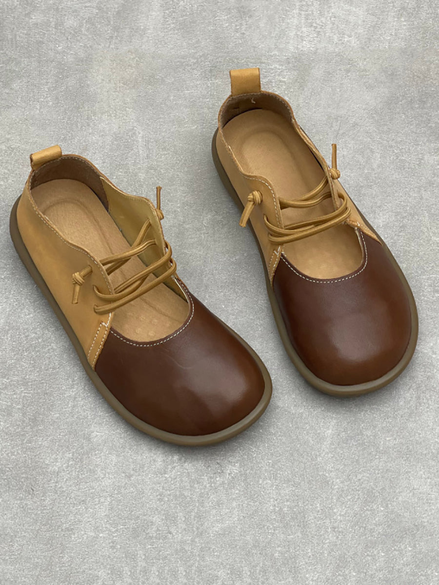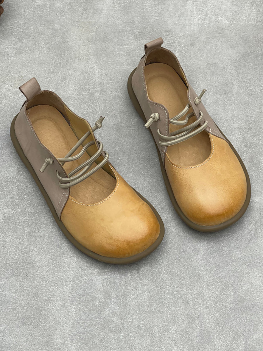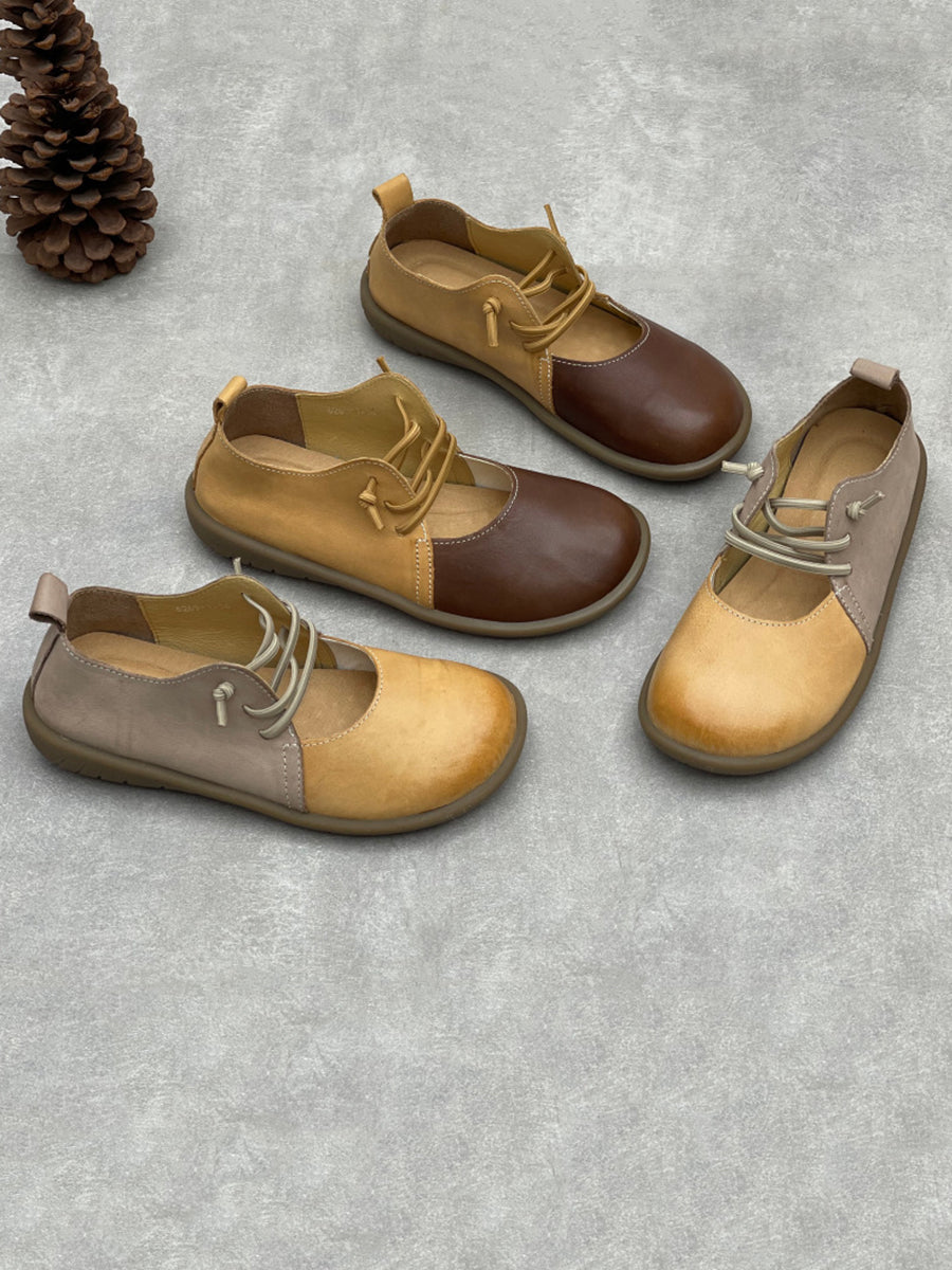 Dámské ležérní barevné bloky z kůže na ploché podpatky