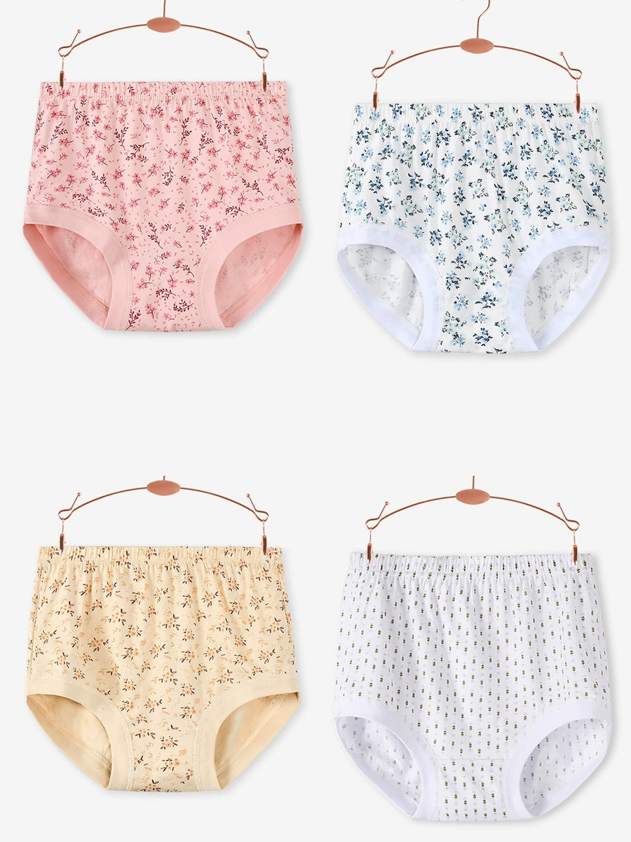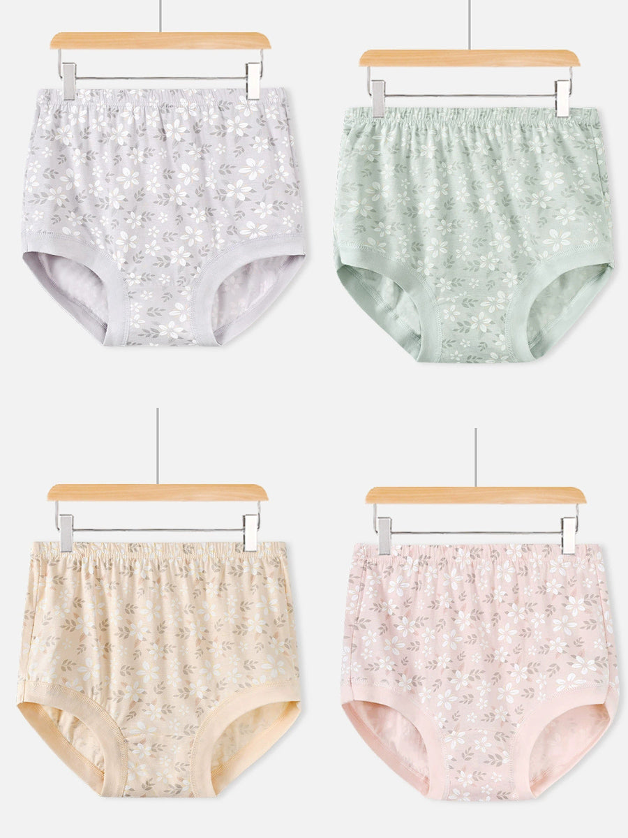 4dílné dámské umělecké květinové spodní prádlo s vysokým pasem