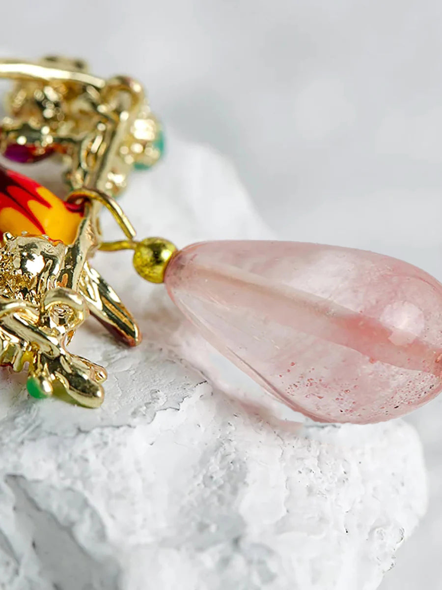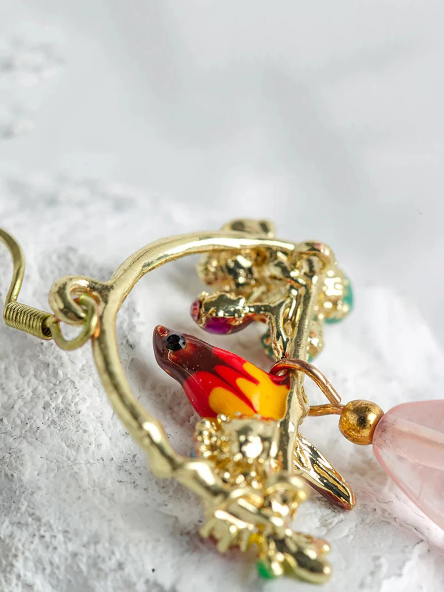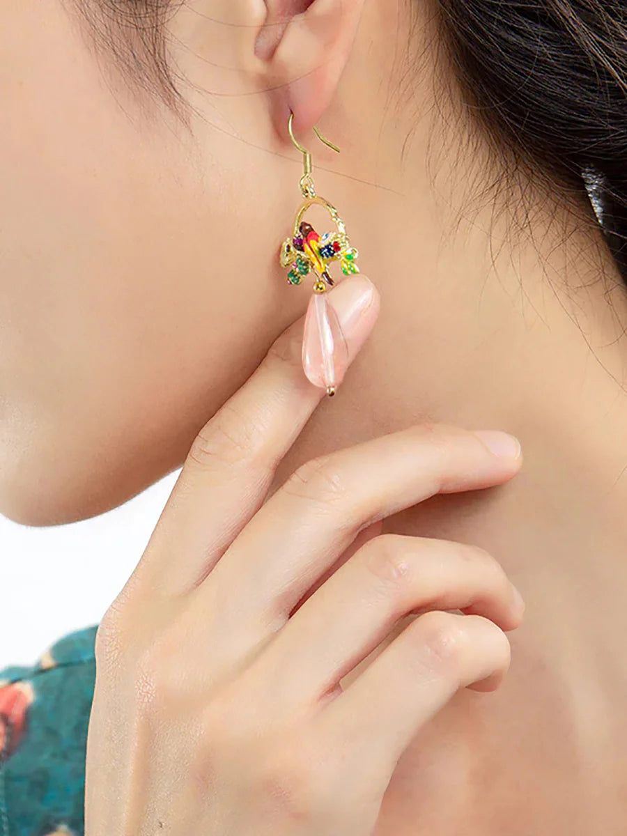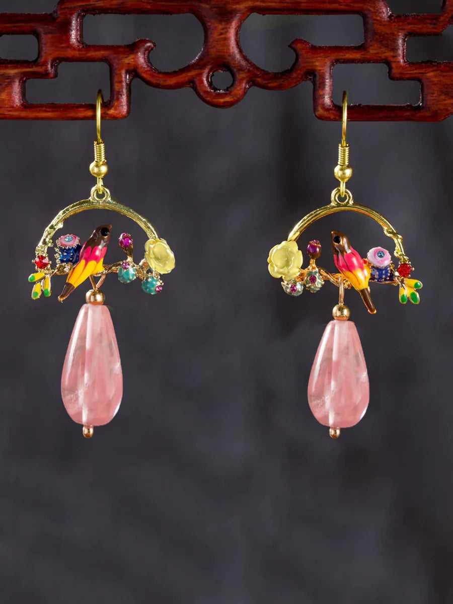 Pták A Květina Chalcedon Přívěsek Náušnice