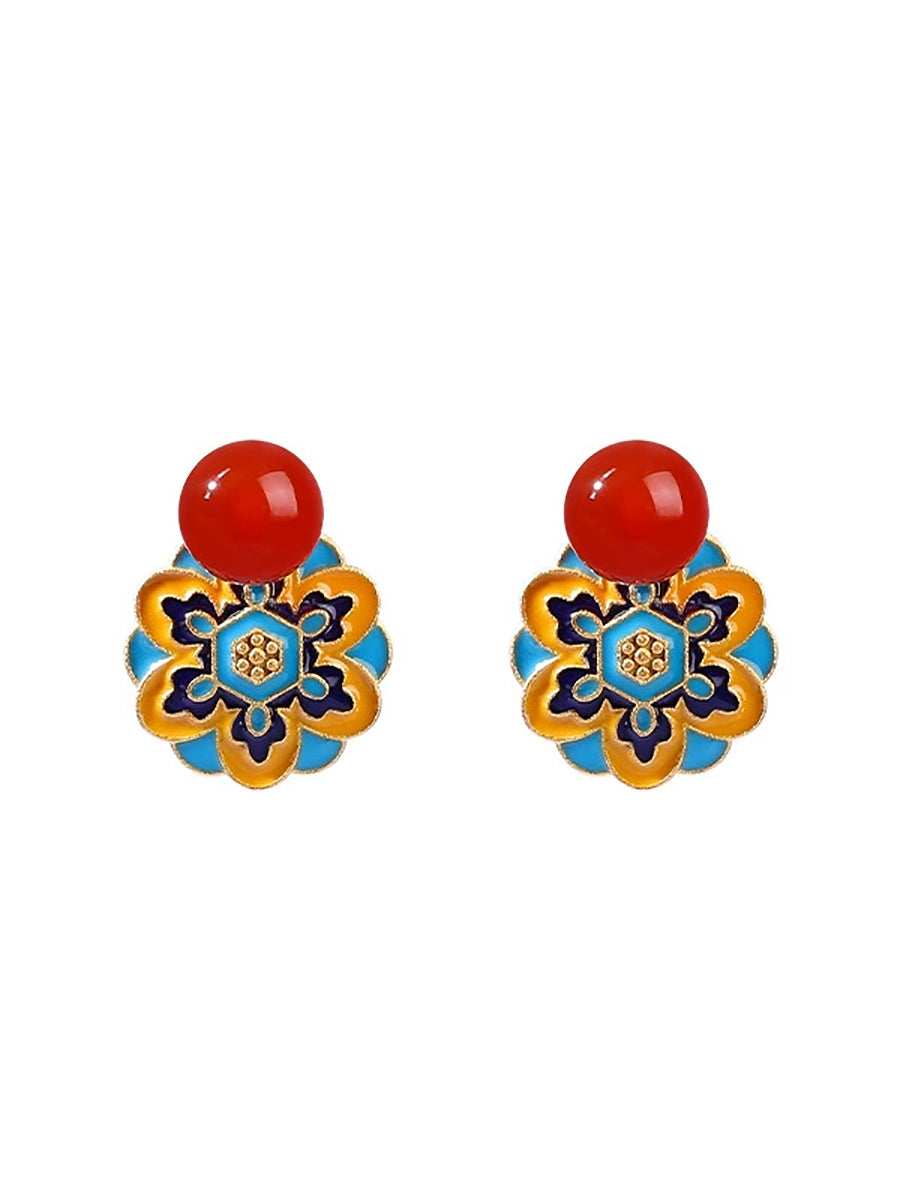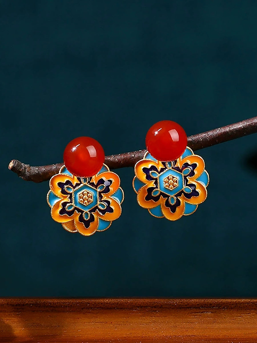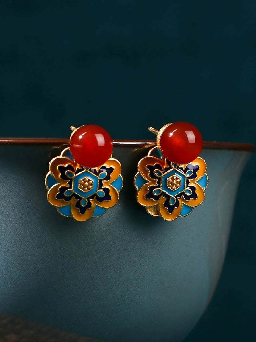 Vintage nefritové smaltované náušnice z lotosového totemu