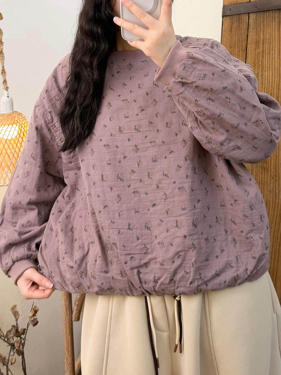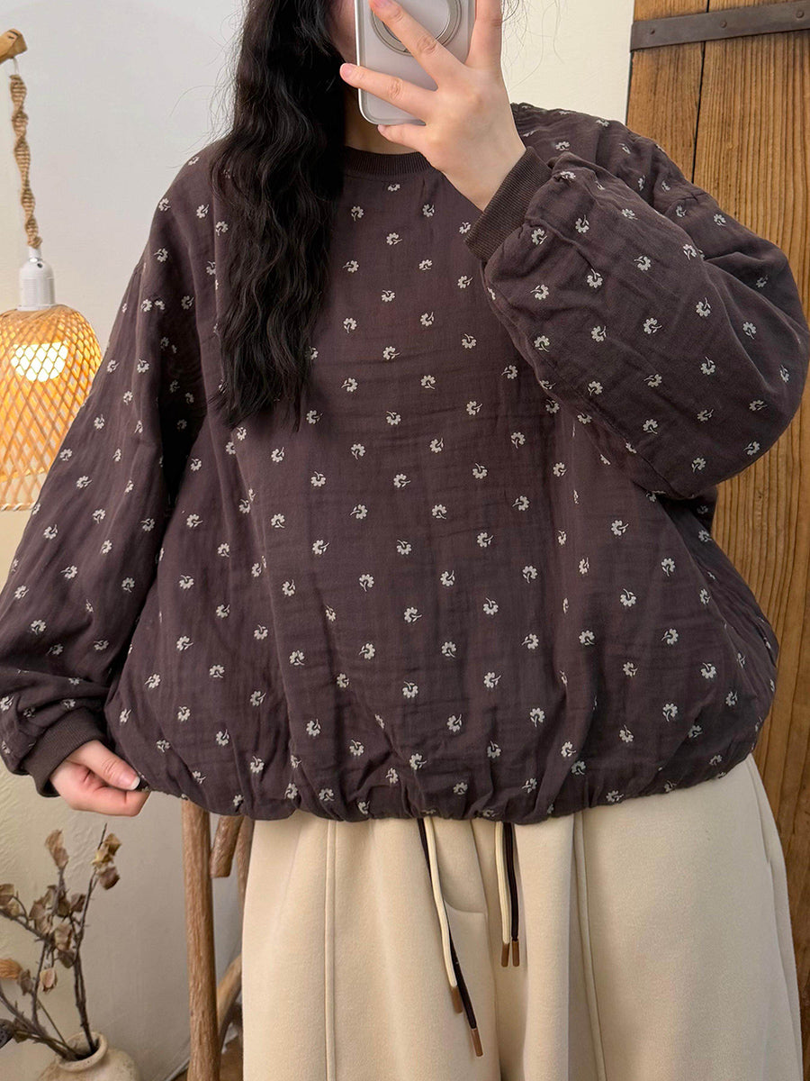 Dámská umělecká jarní květinová halenka s výstřihem do O-neck a prošívanou výstřihem