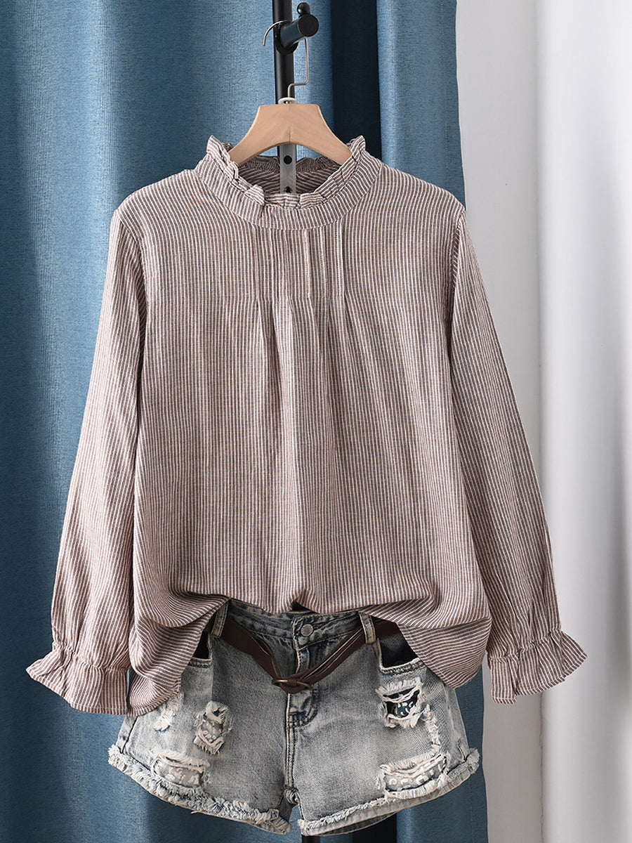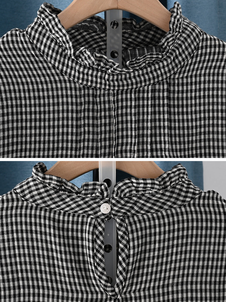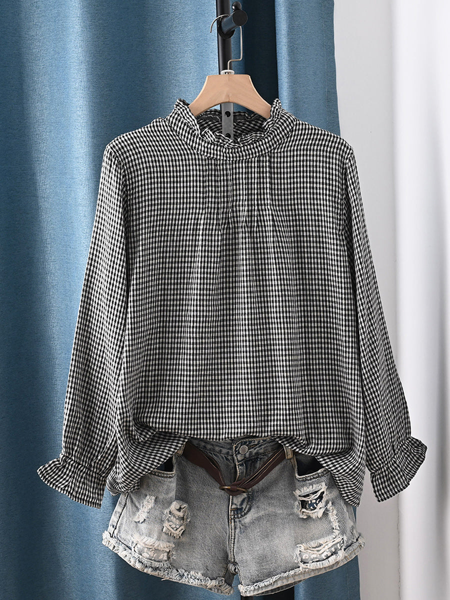 Dámská jarní umělecká mřížkovaná halenka ze 100% bavlny