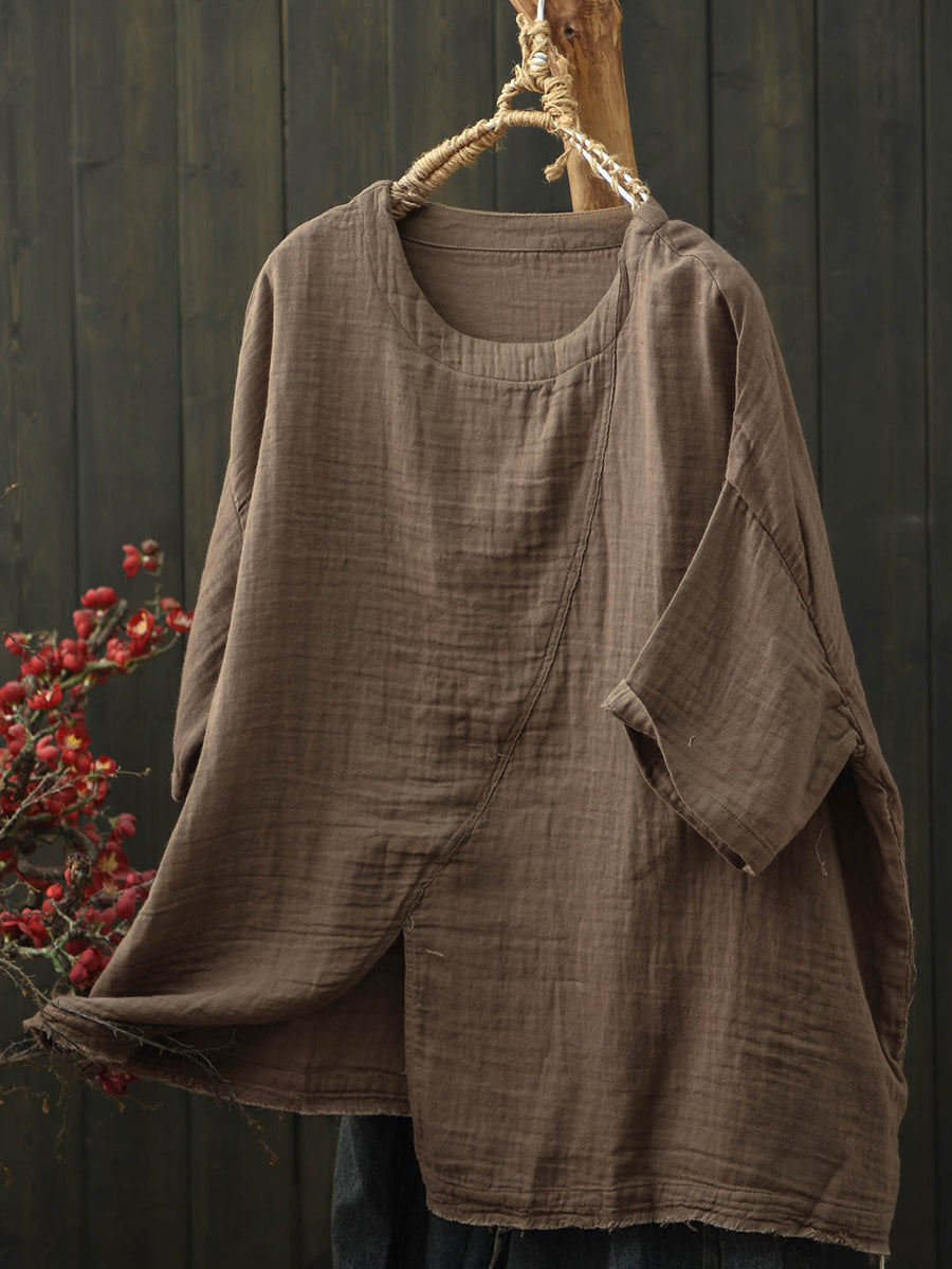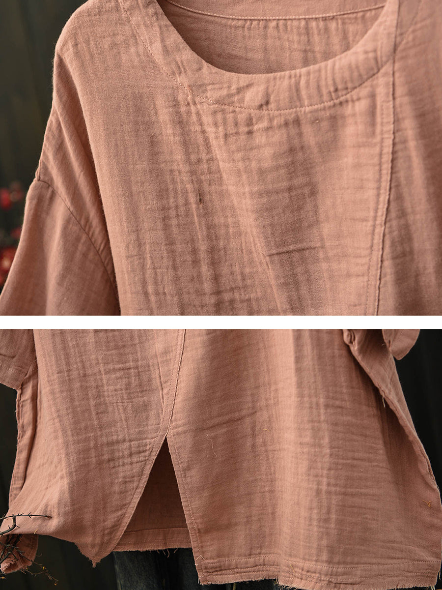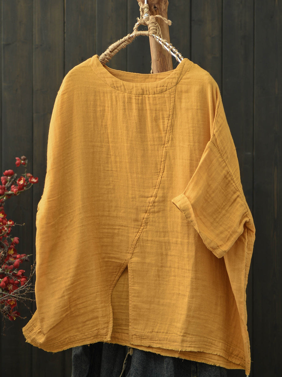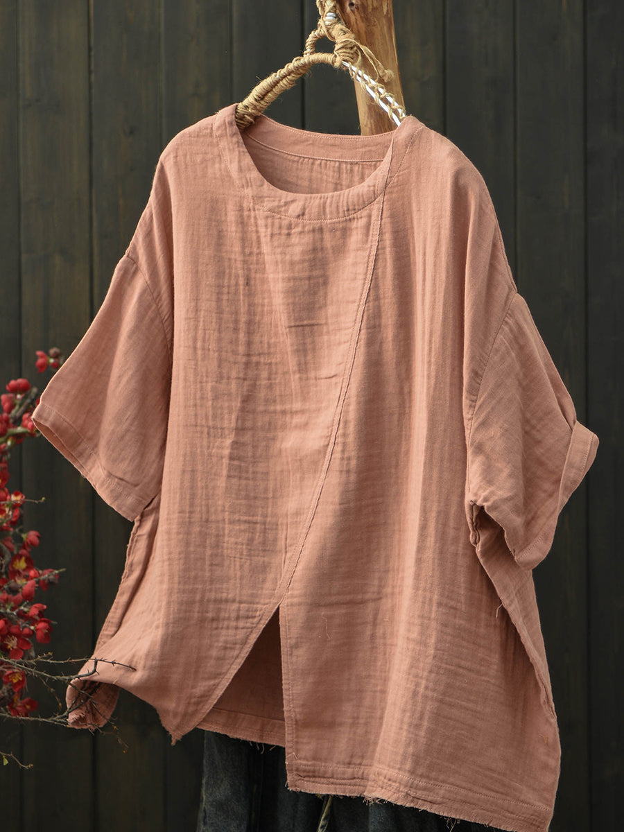 Dámské letní retro bavlněné tričko s rozděleným lemem