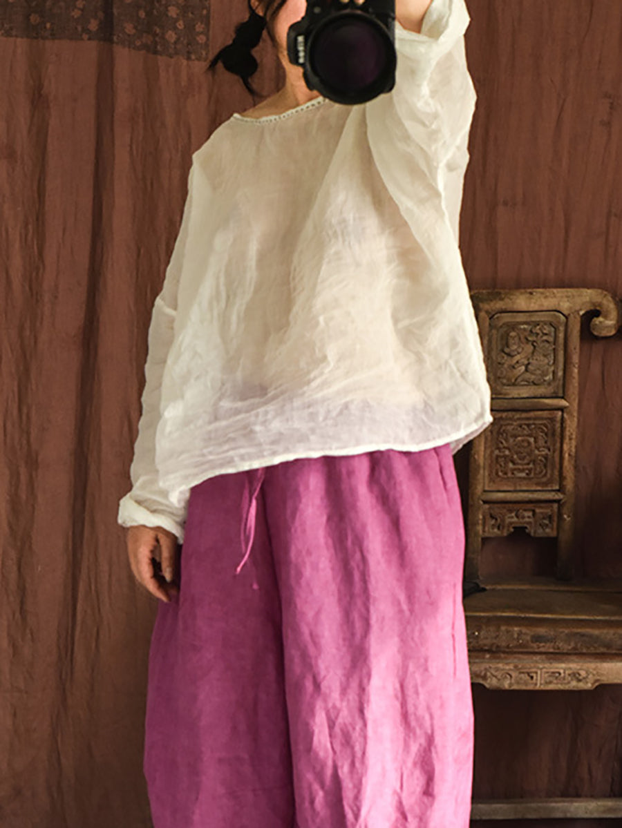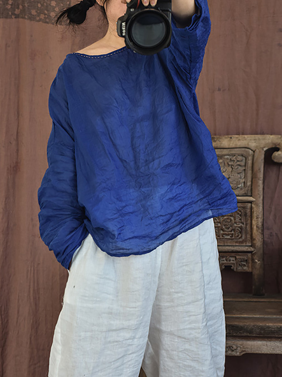 Dámská letní vintage halenka s výstřihem do O-neck z ramie