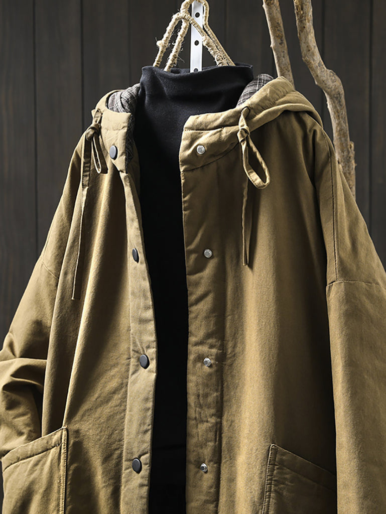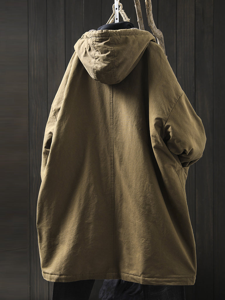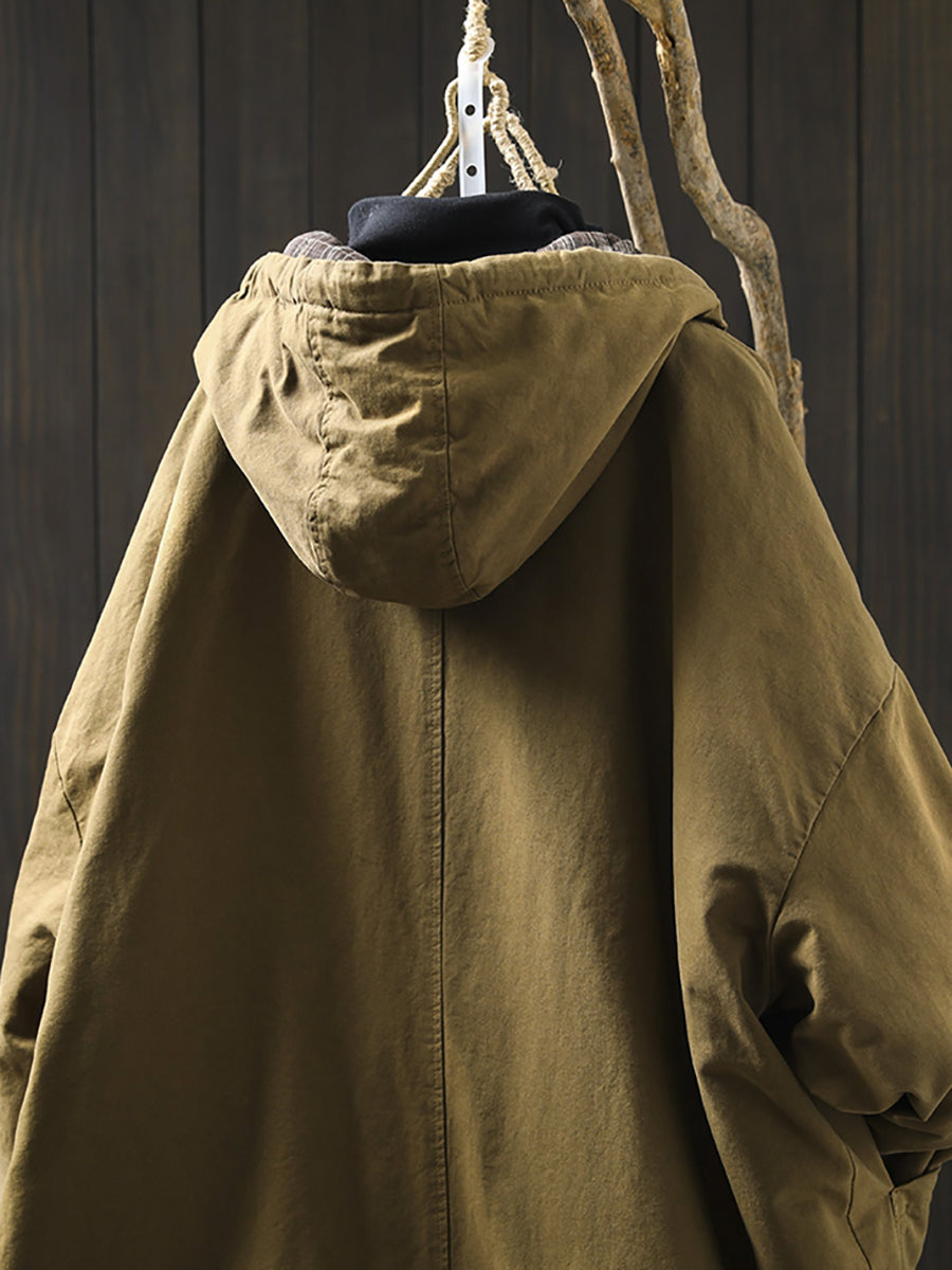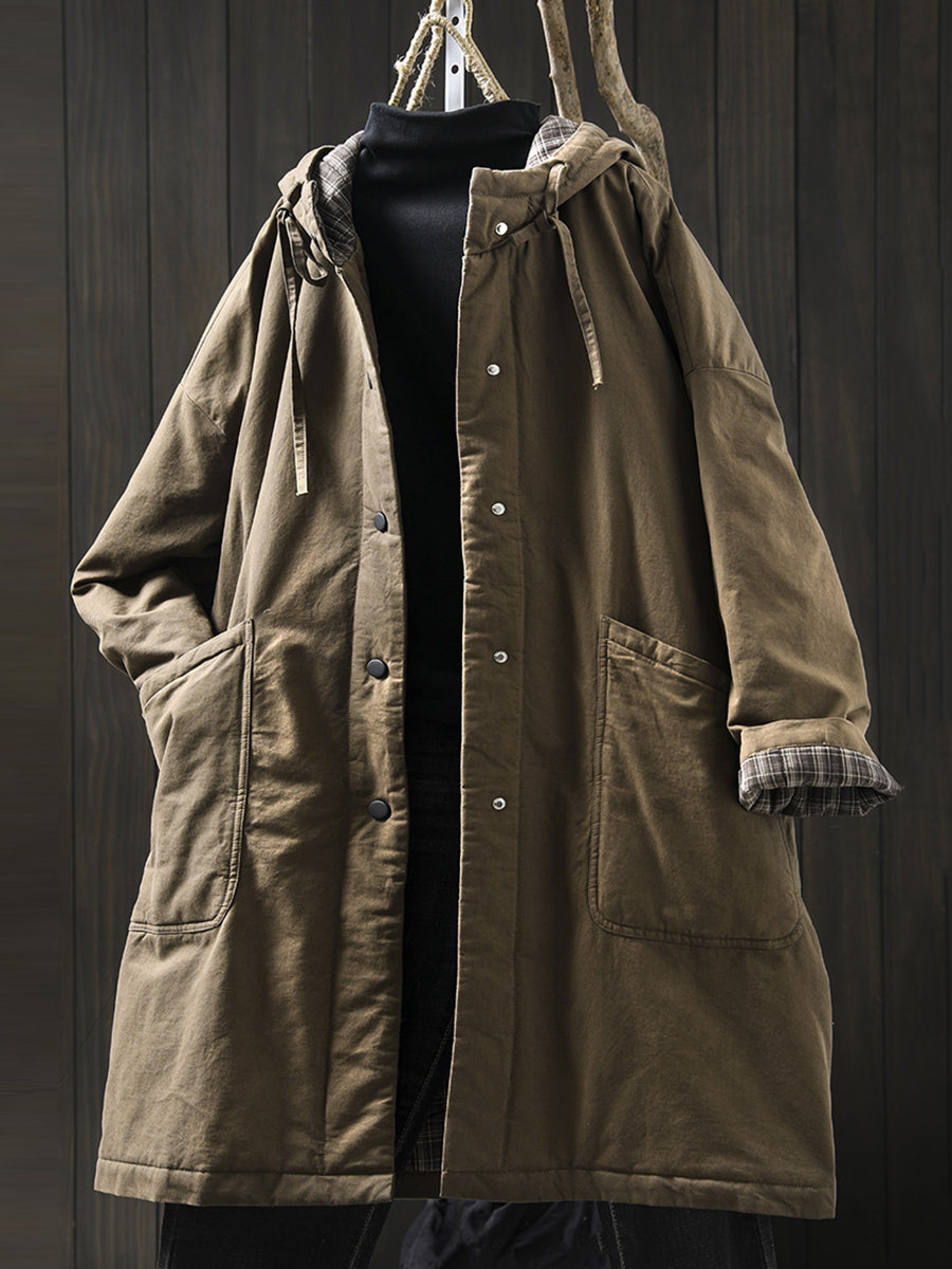 Dámský podzimní ležérní čistě barevný prošívaný kabát s kapucí
