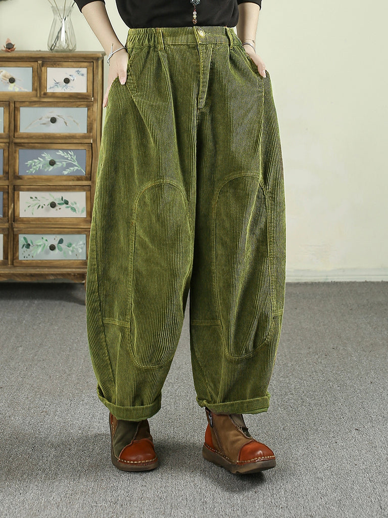 Dámské podzimní retro čisté barevné manšestrové harémové kalhoty