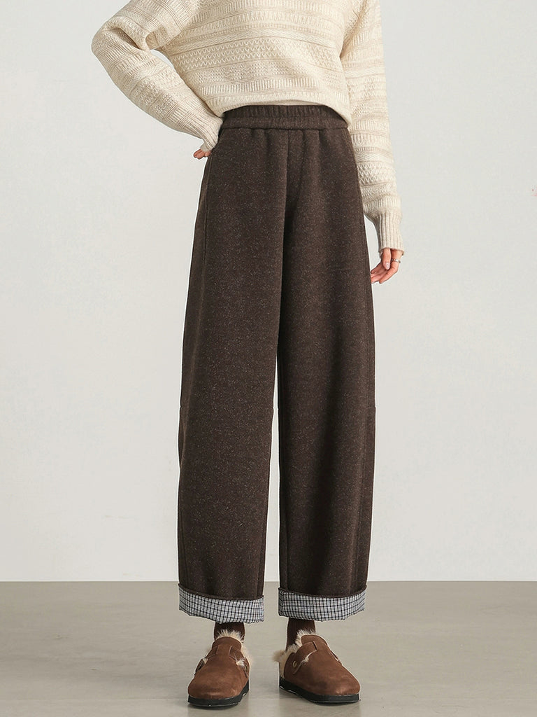 Dámské zimní ležérní čisté barvy s fleecovou podšívkou rovné kalhoty
