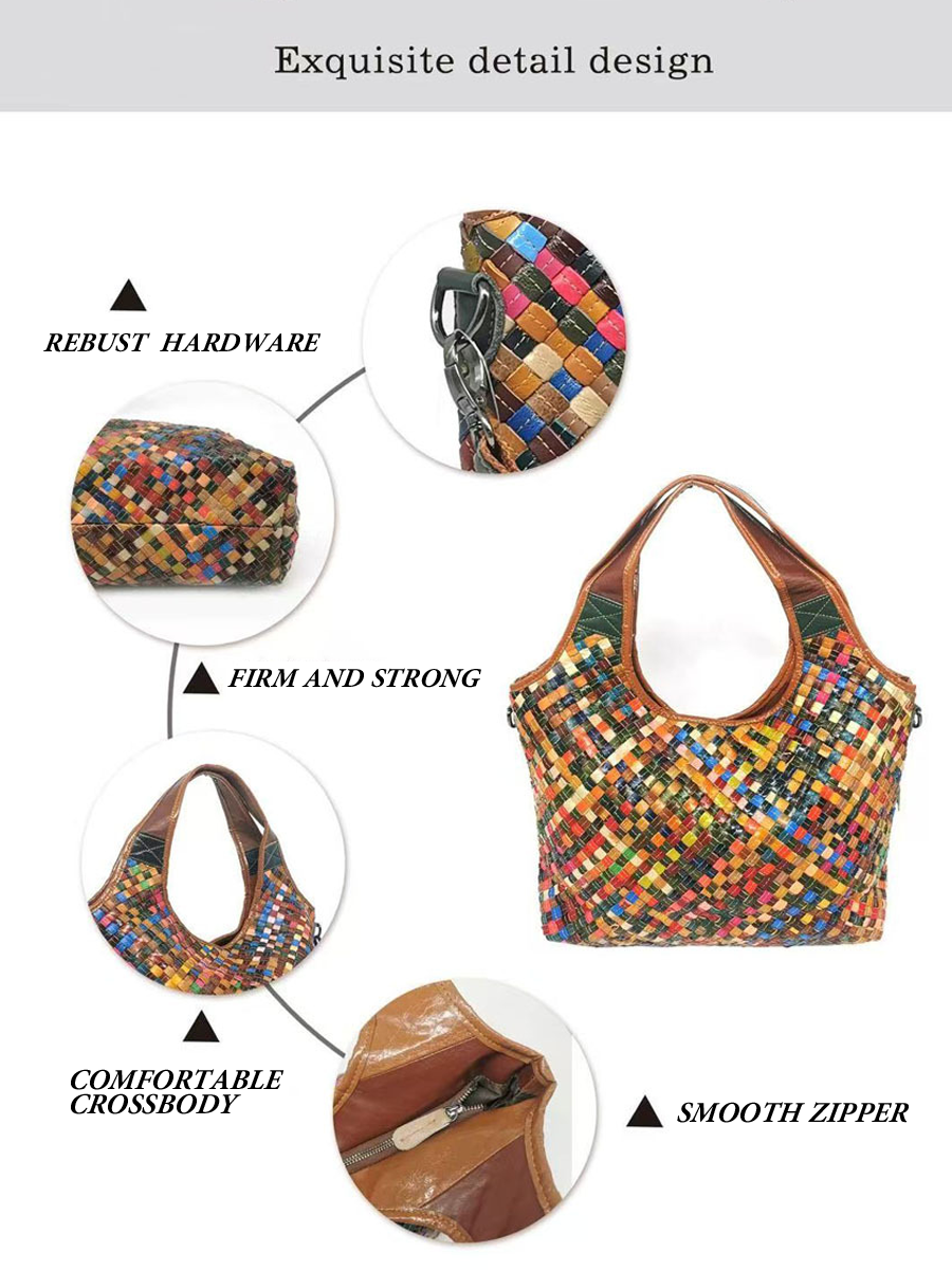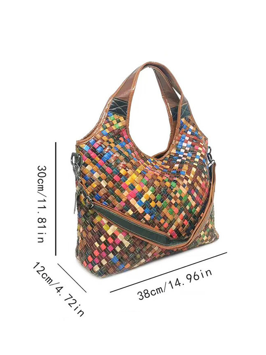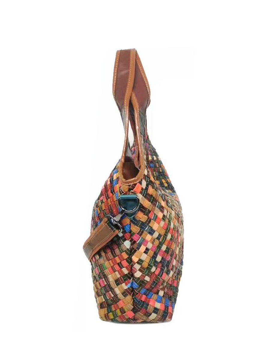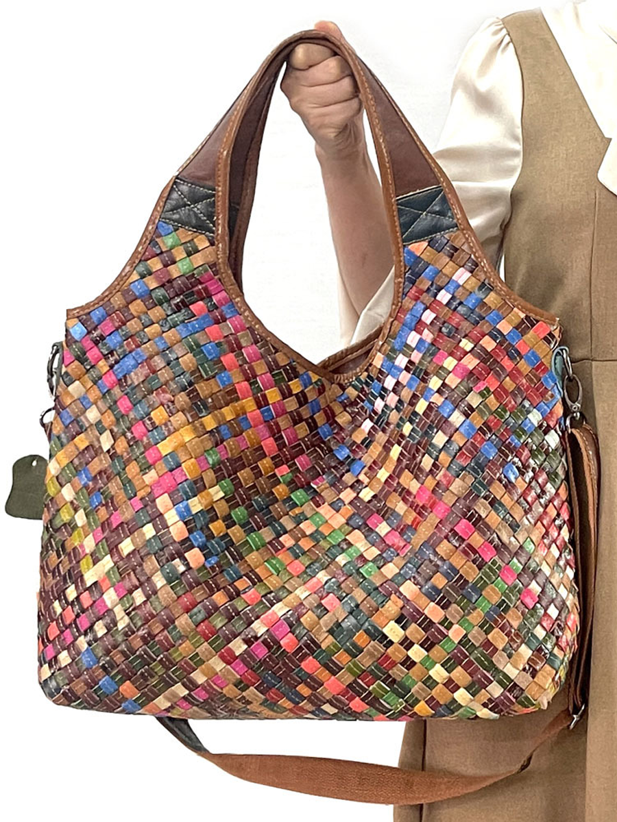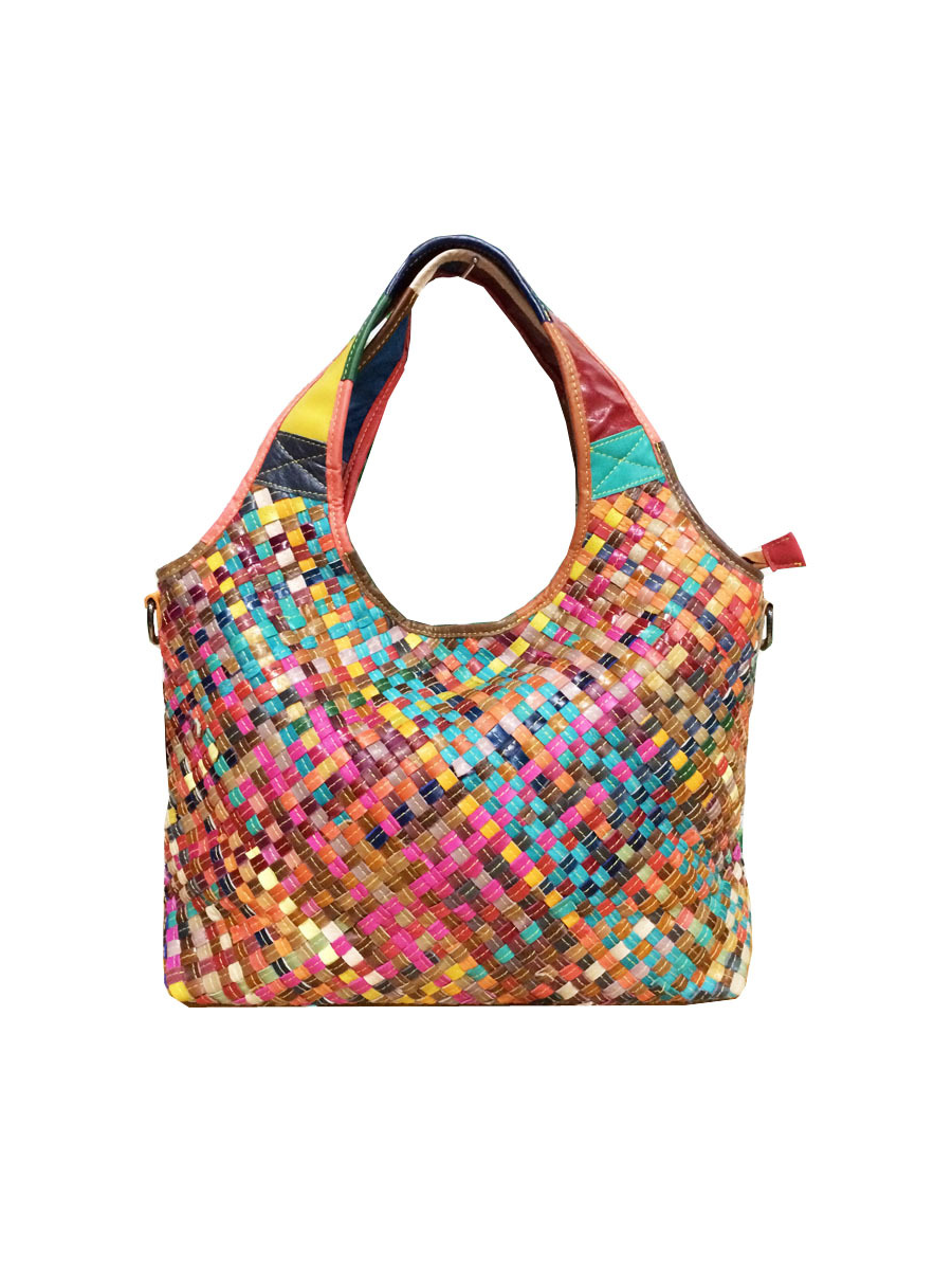 Dámská kožená tkaná taška přes rameno Mulitcolor