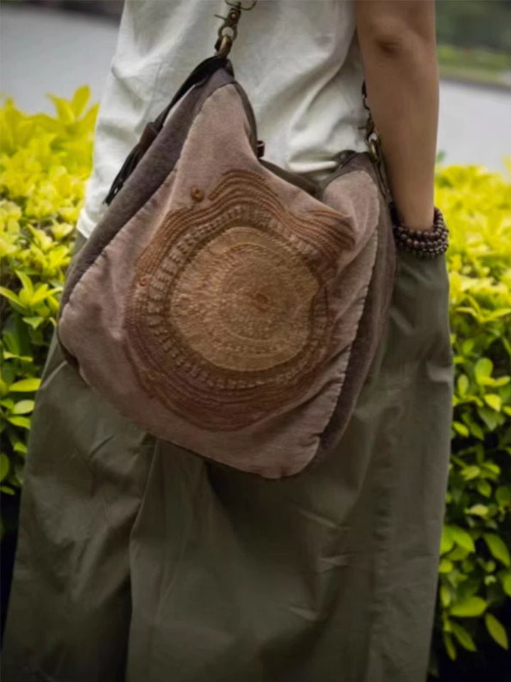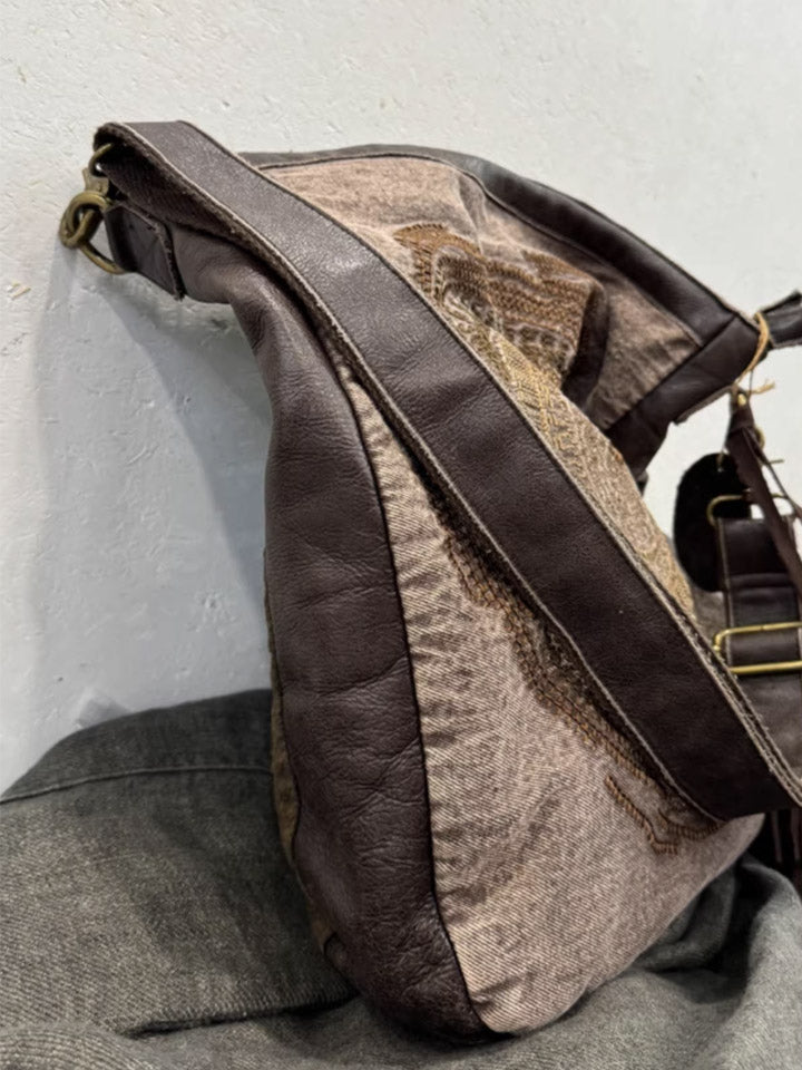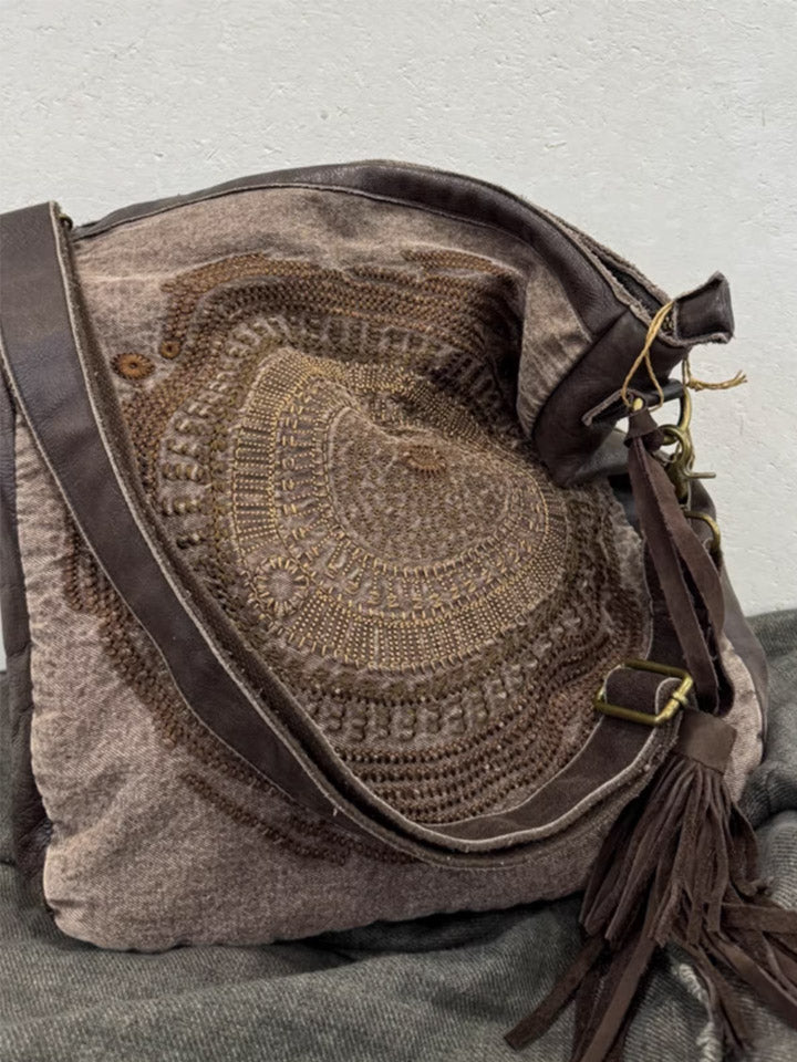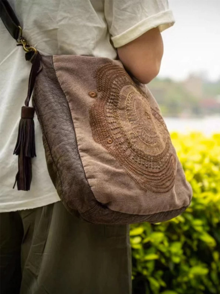 1105 Vintage kožená kabelka přes rameno s výšivkou
