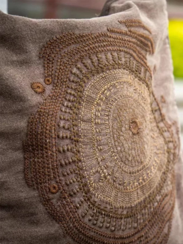 • Zvýraznění: Prošívání; Barevné bloky; Len barvený rostlinnými barvami;