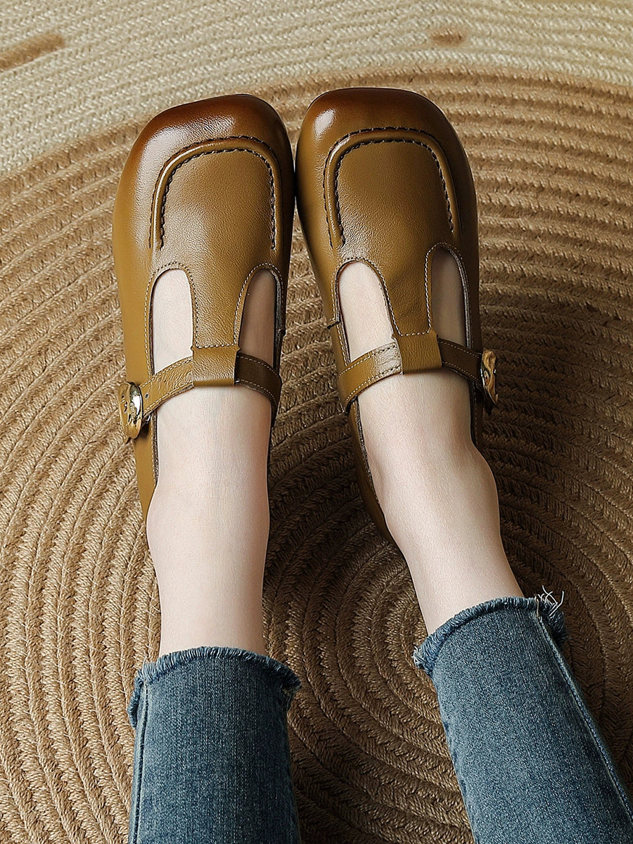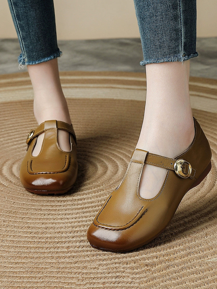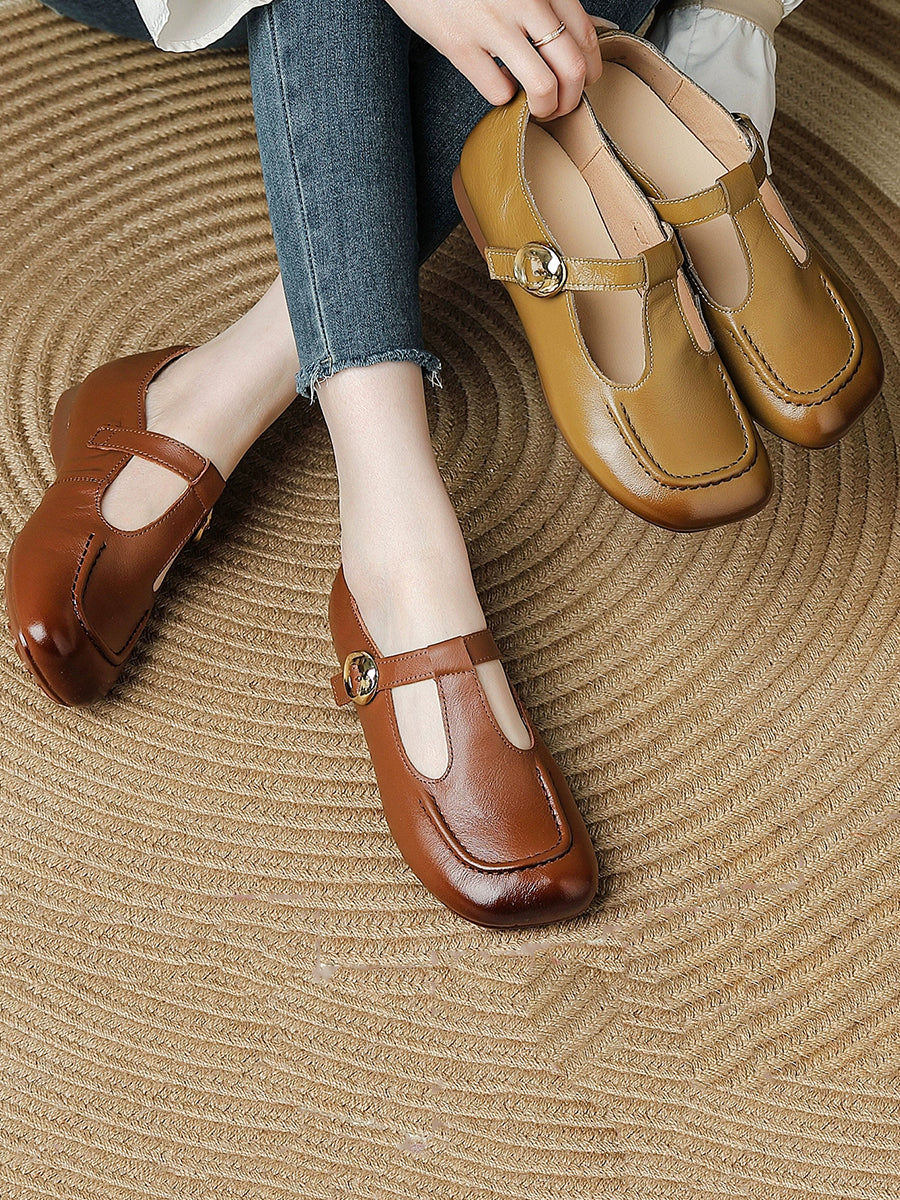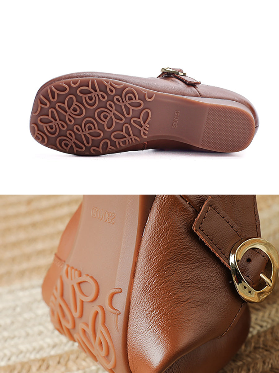 Dámské letní vintage boty z pravé kůže na nízkém podpatku
