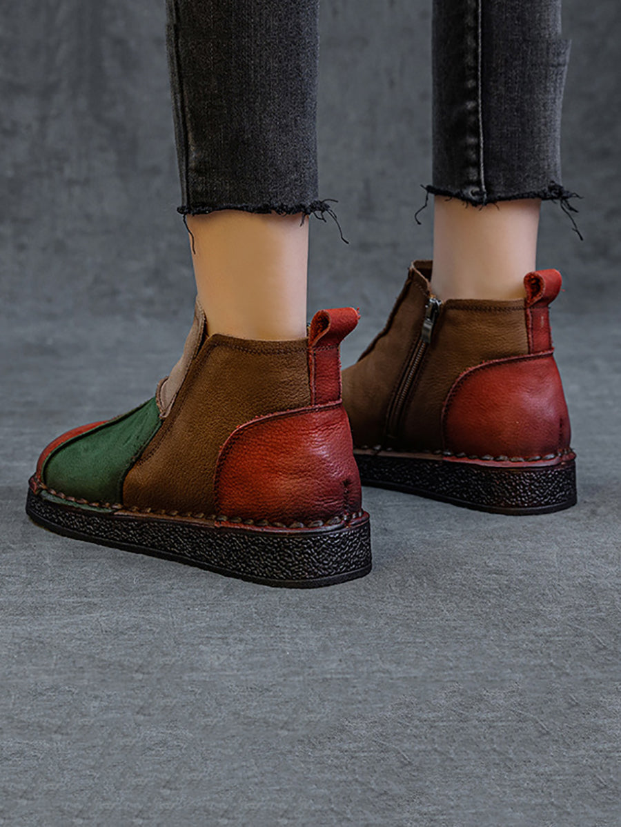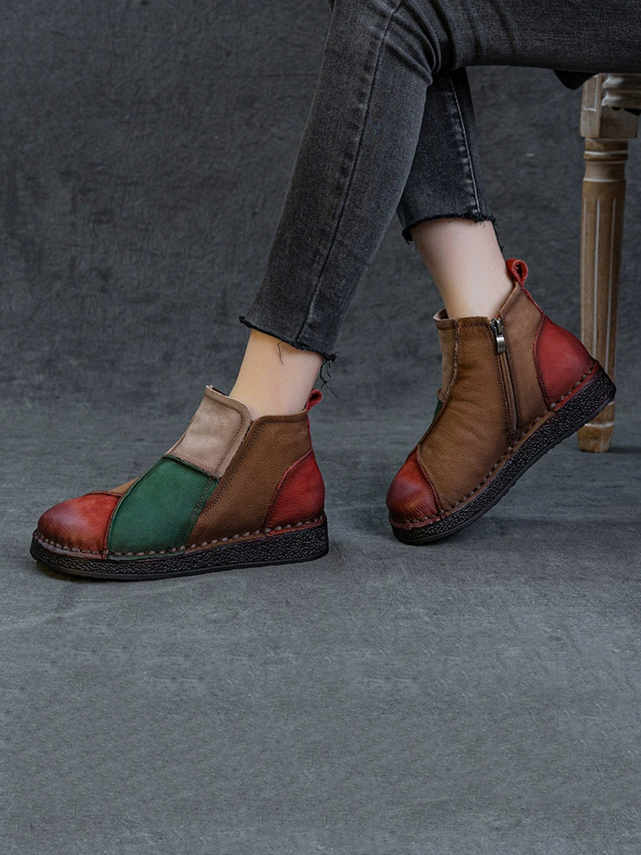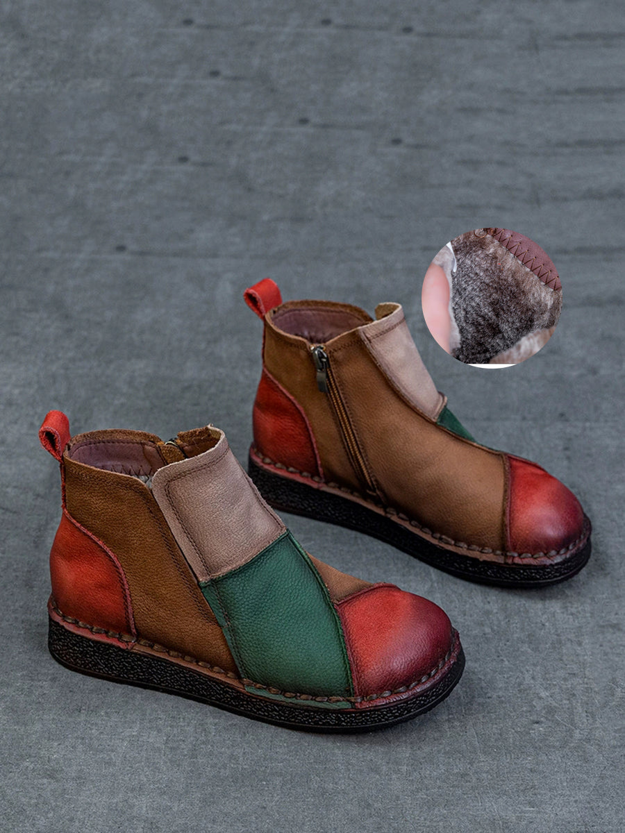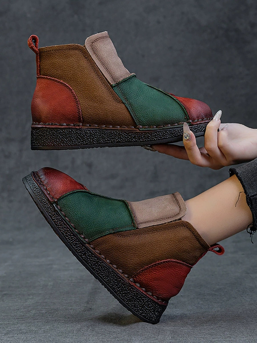 Dámské zimní kotníkové boty z pravé kůže s barevnými bloky