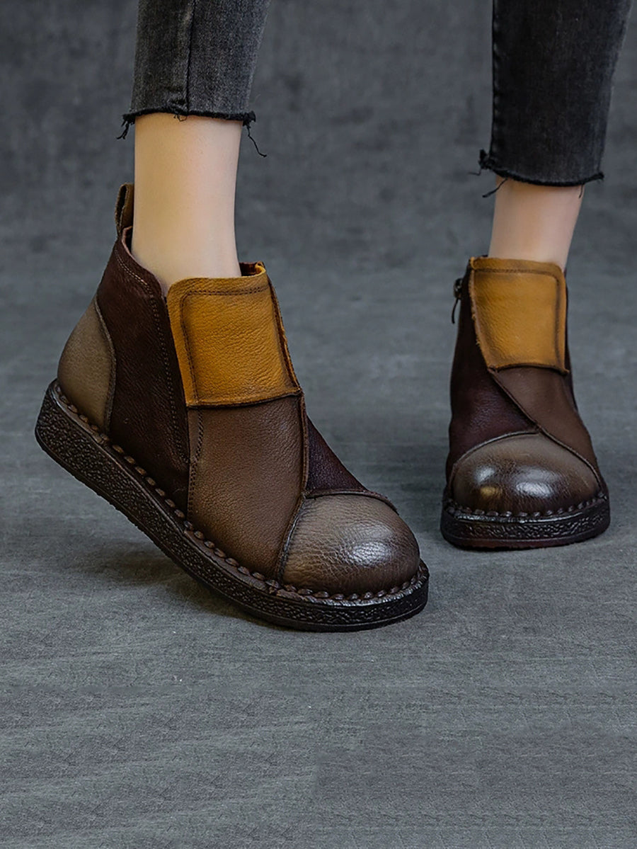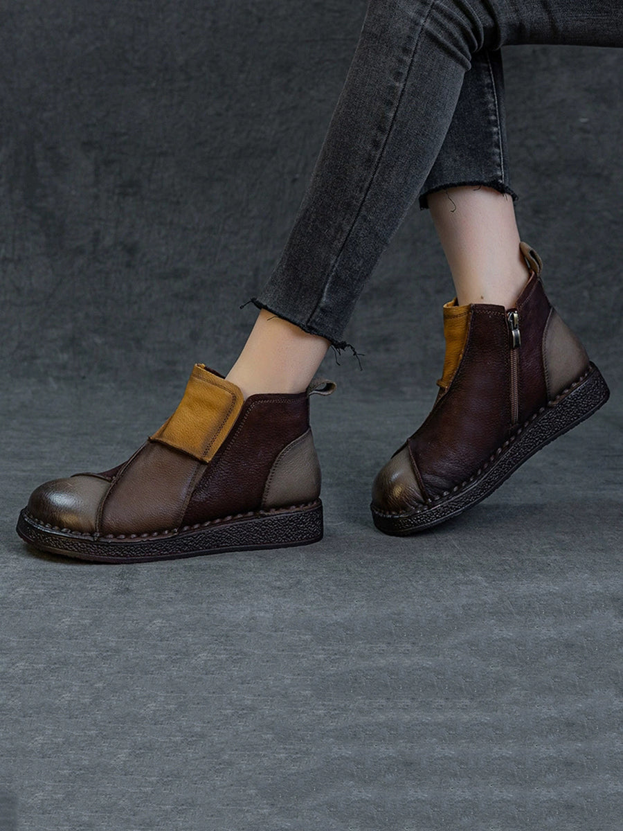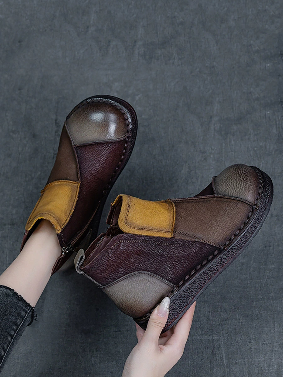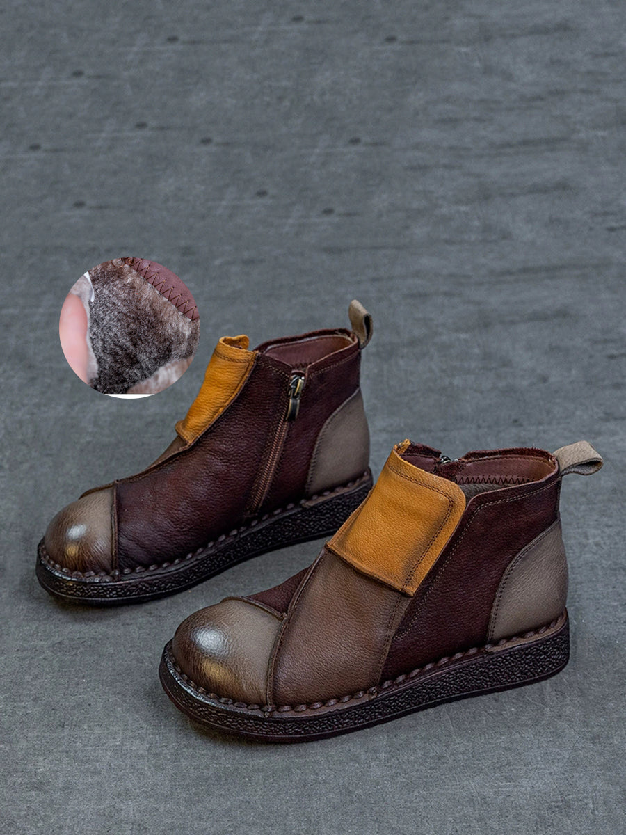Dámské zimní kotníkové boty z pravé kůže s barevnými bloky