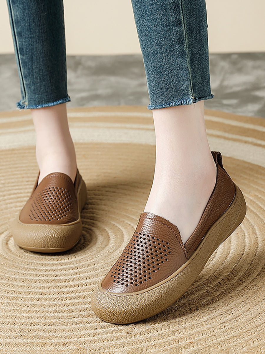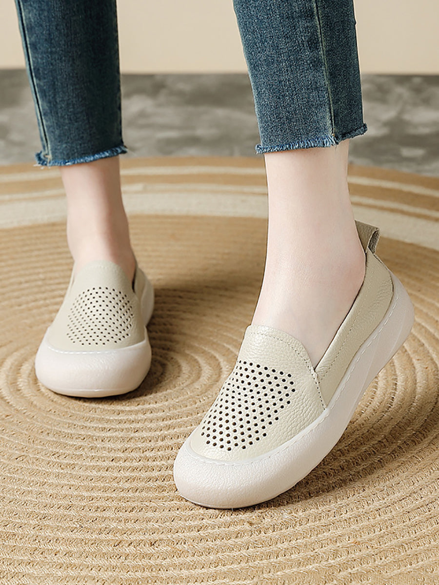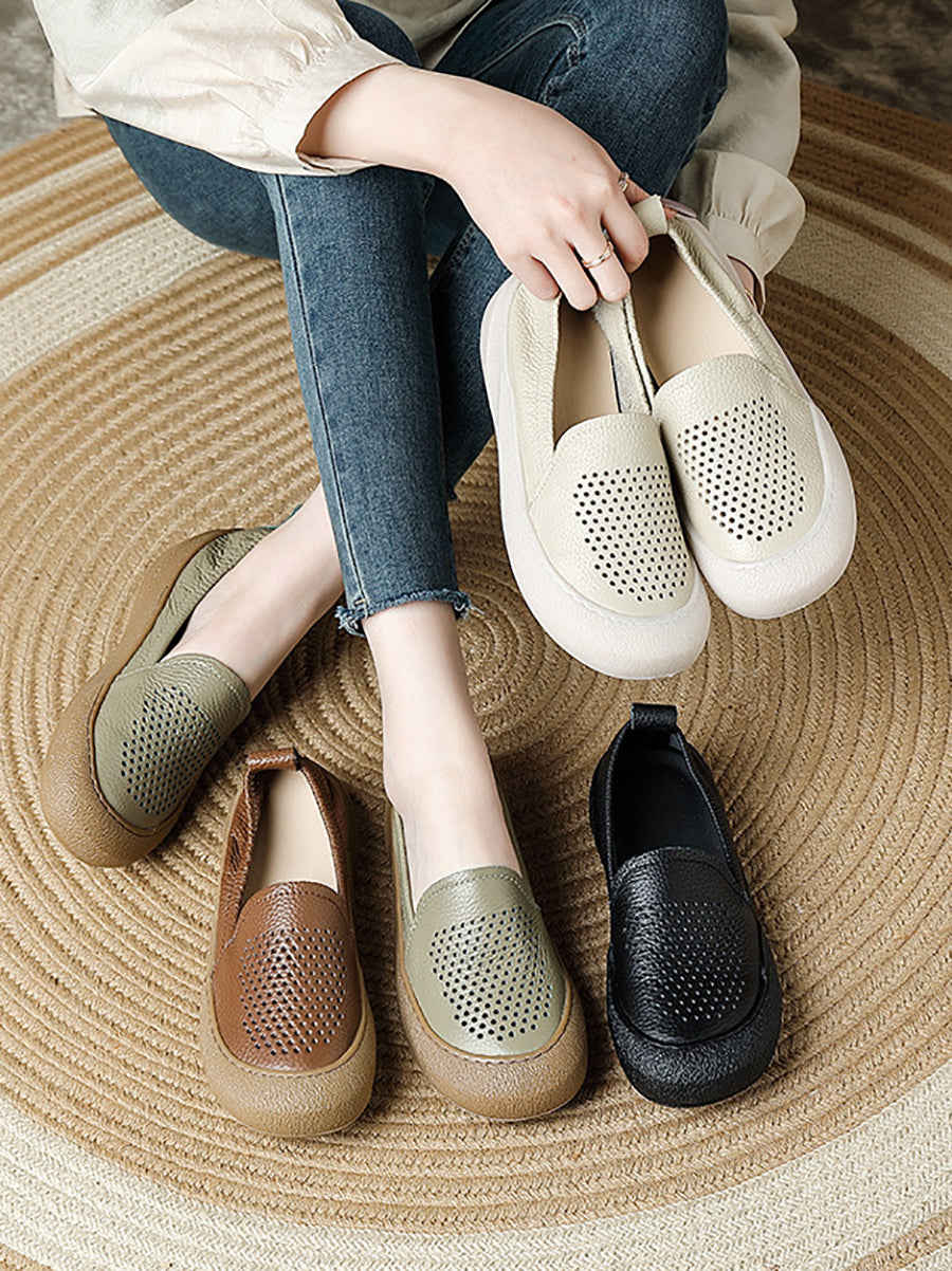 Dámské letní ležérní kožené ploché boty