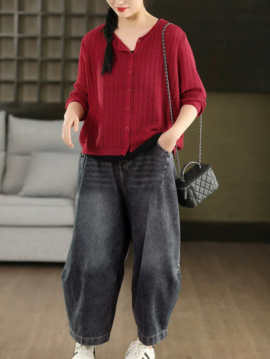 Dámské ležérní pletené tričko s výstřihem do O-neck v čistých barvách
