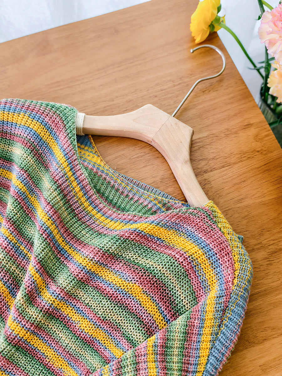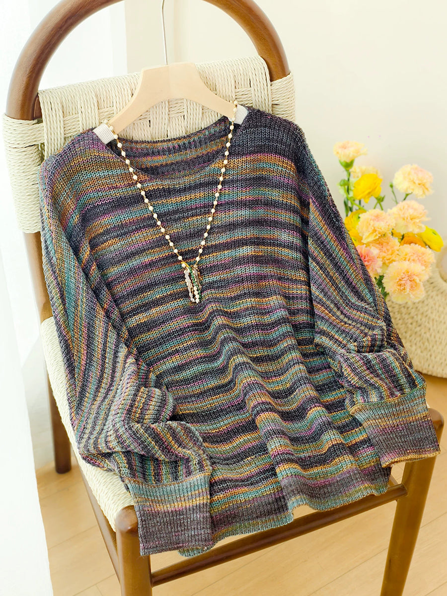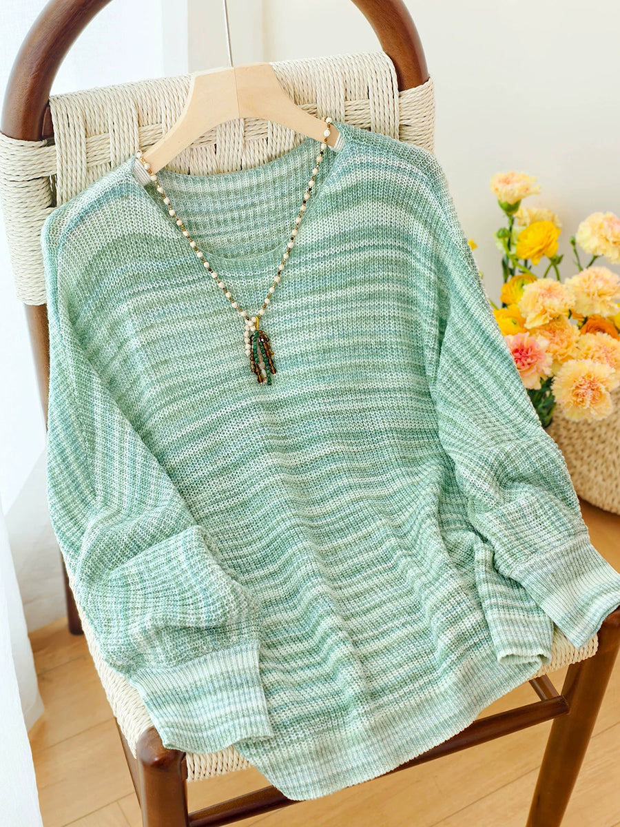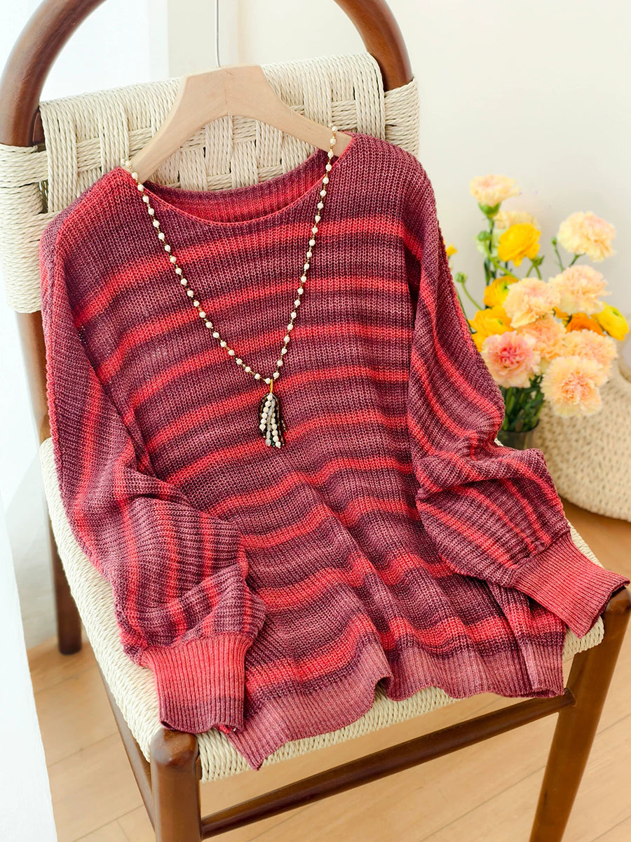 Dámská jarní ležérní pruhovaná pletená halenka s výstřihem do O-neck