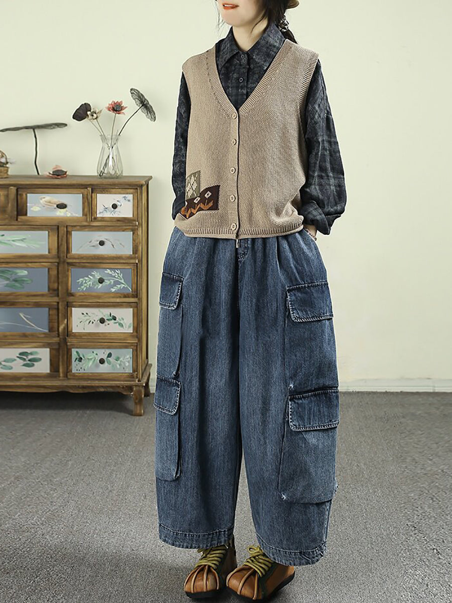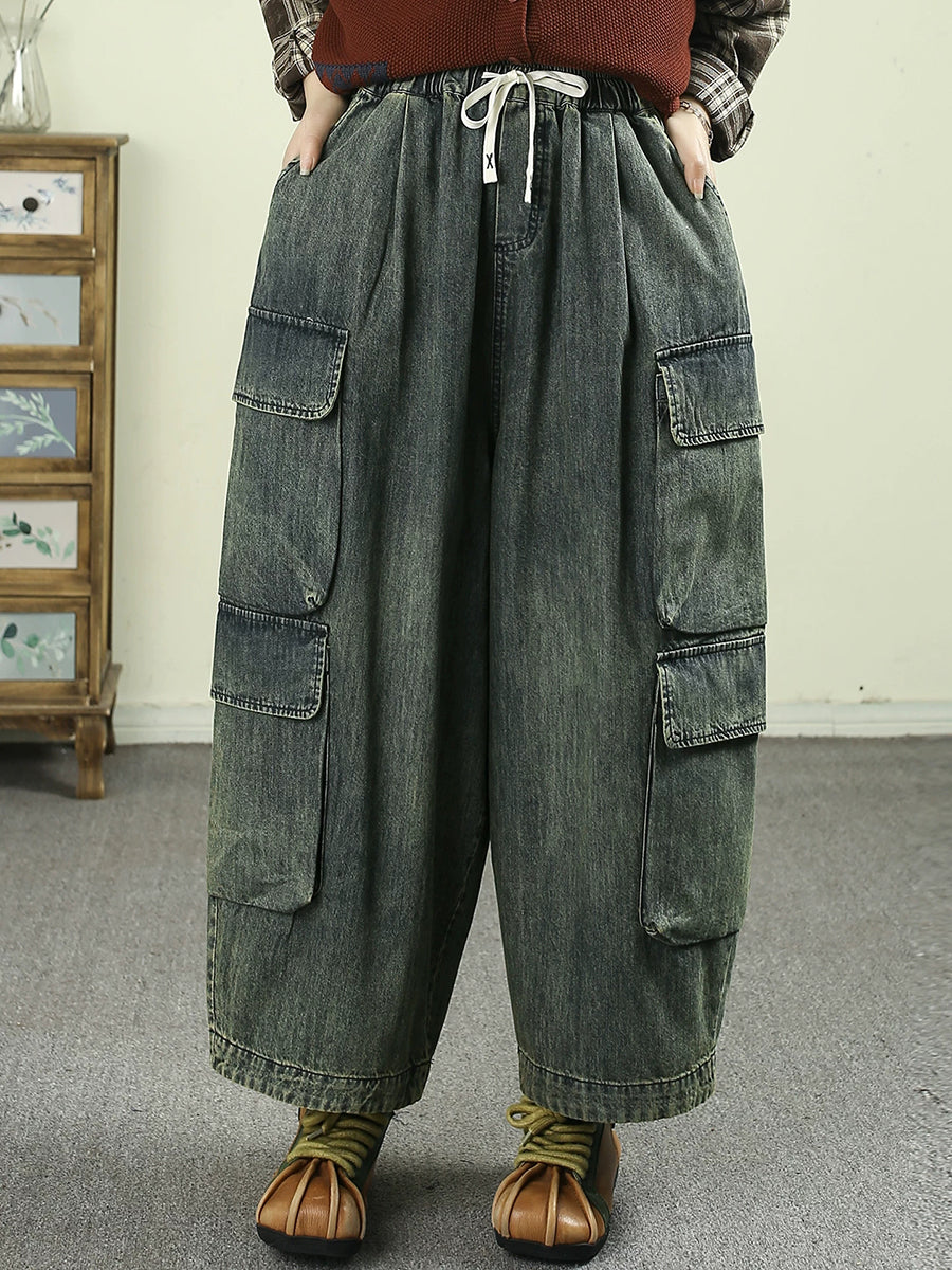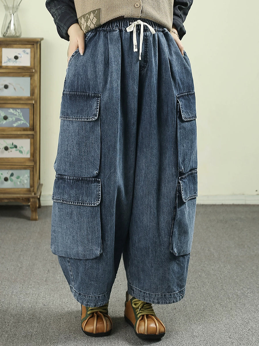Dámské letní ležérní čisté barvy džínové harémové kalhoty