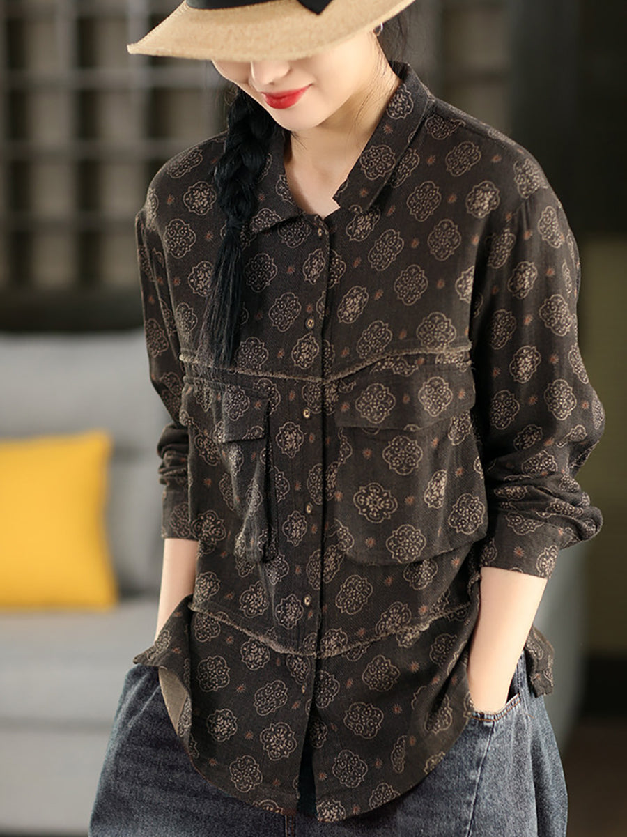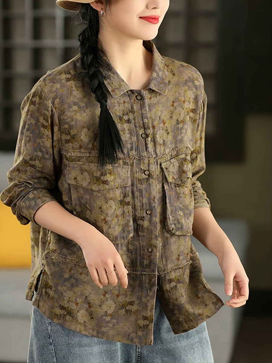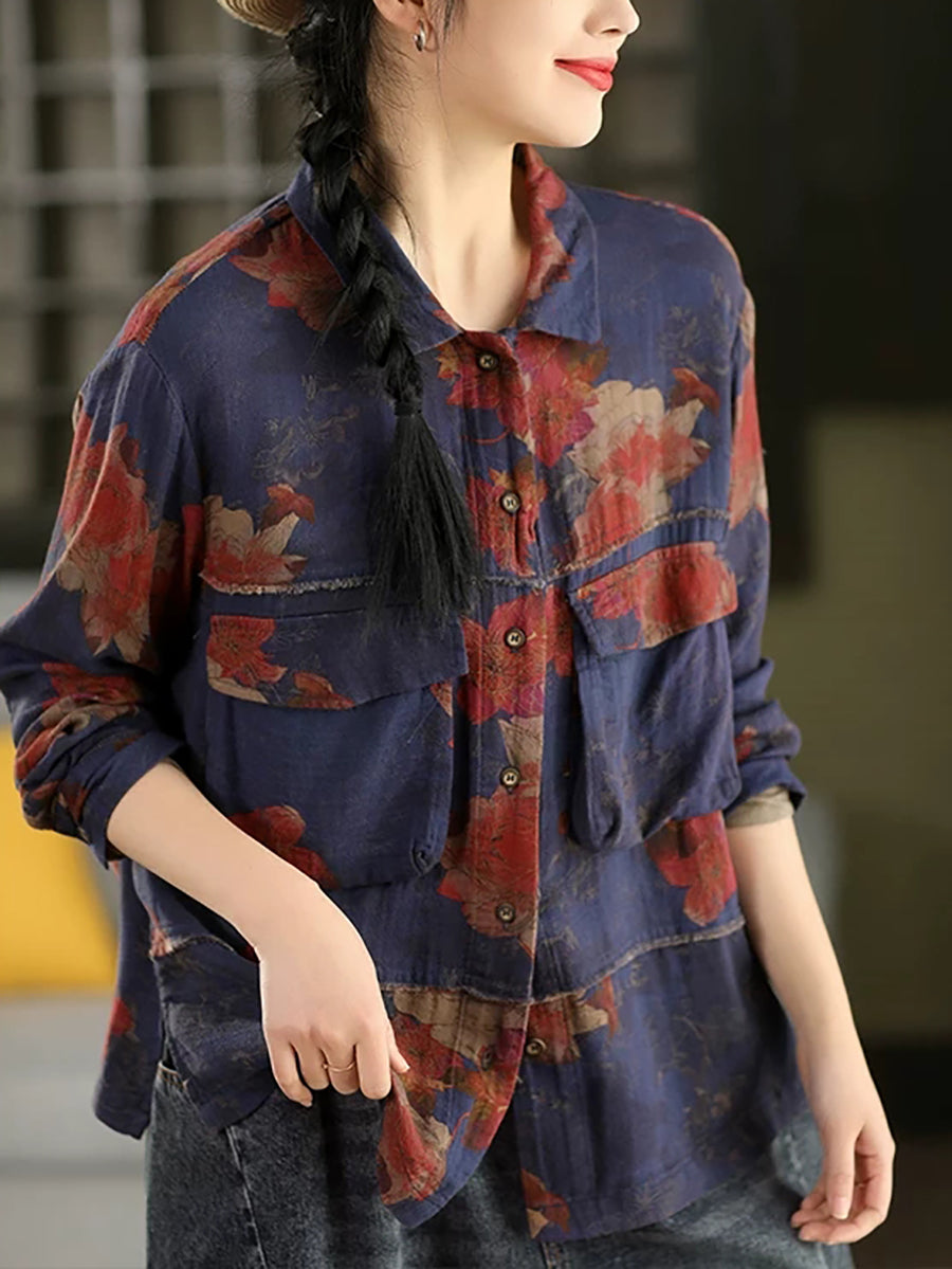 Dámská letní košile s květinovým odkládacím límcem, 100% bavlna