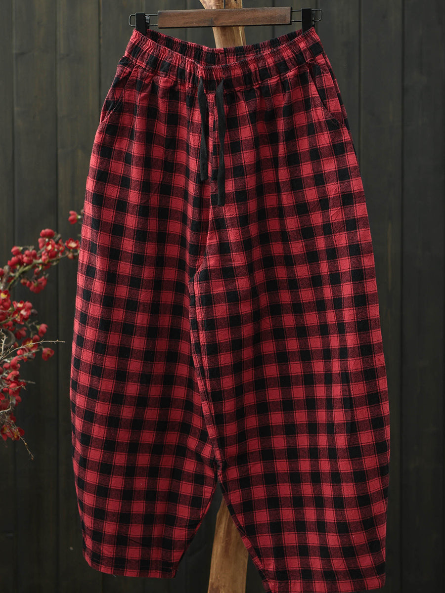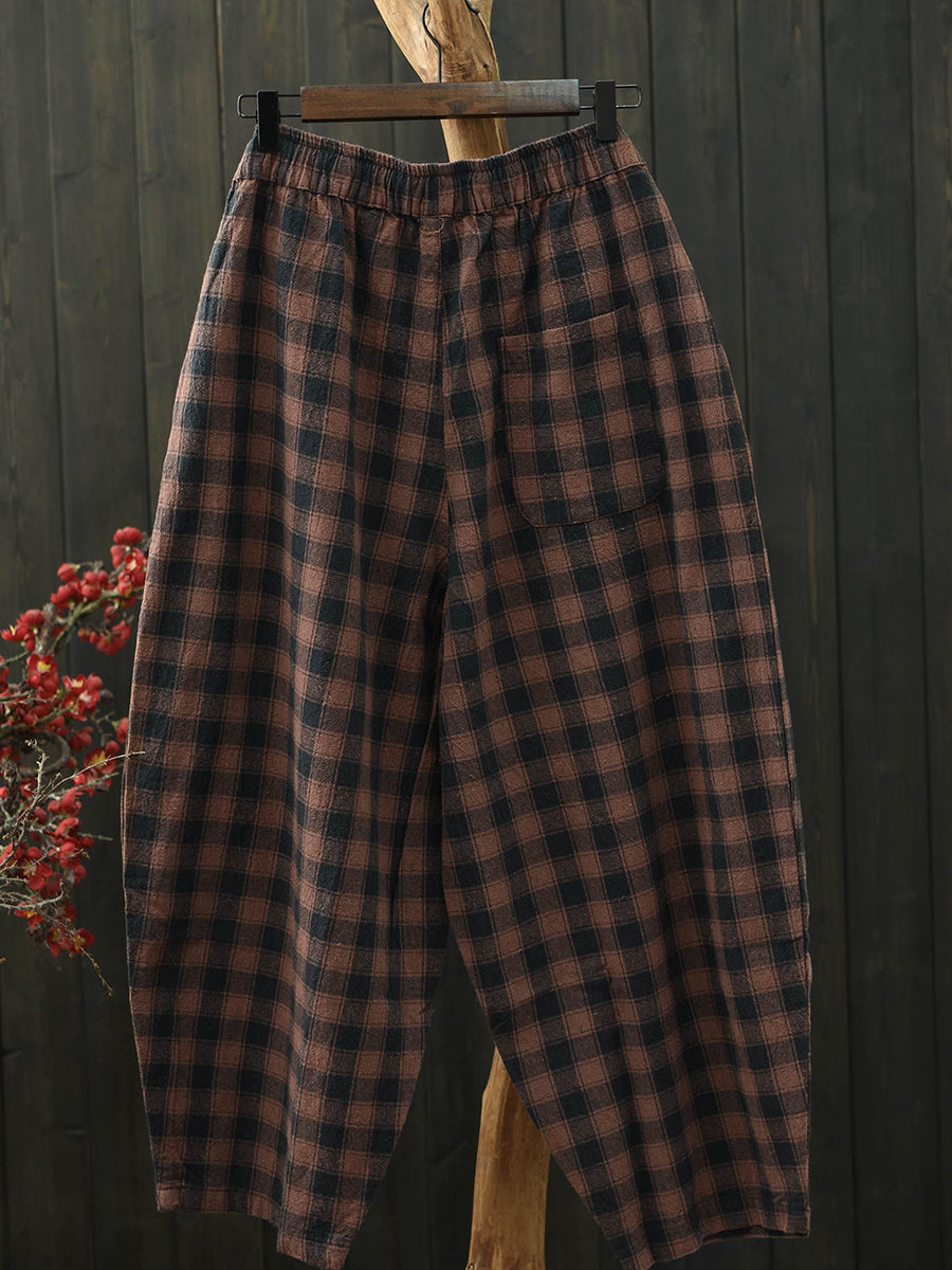 Dámské letní vintage kostkované harémové kalhoty