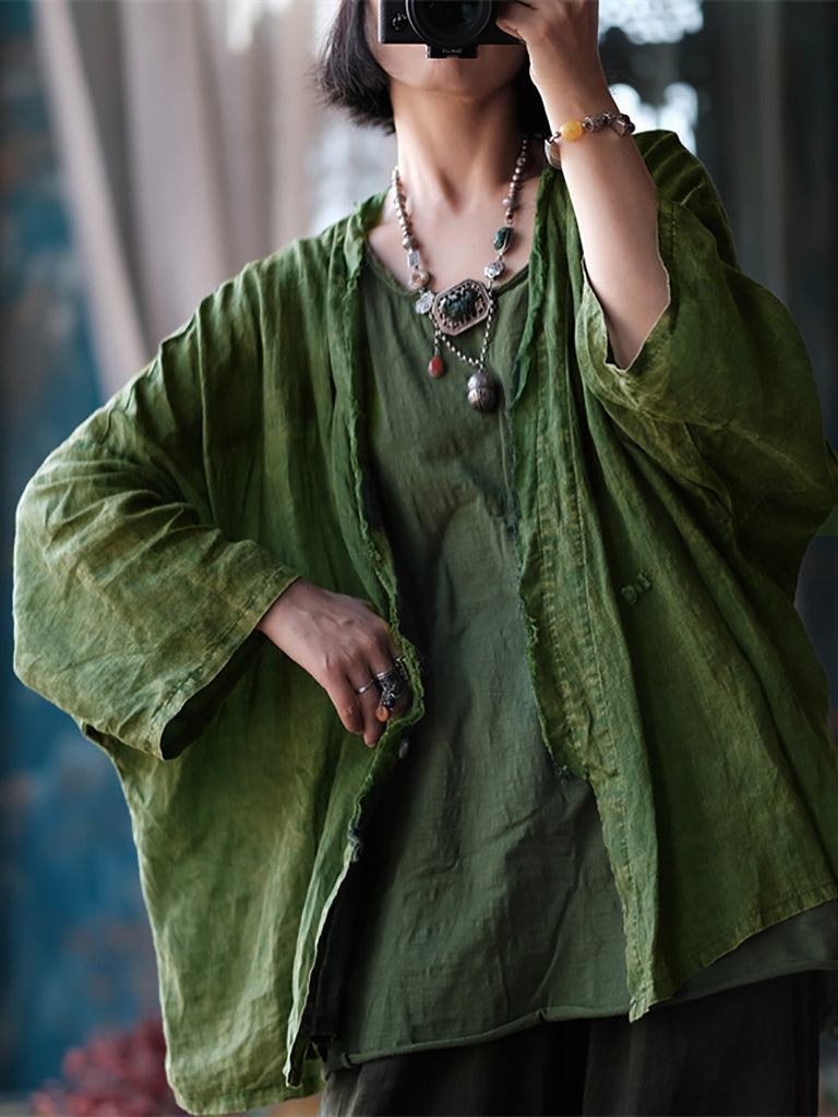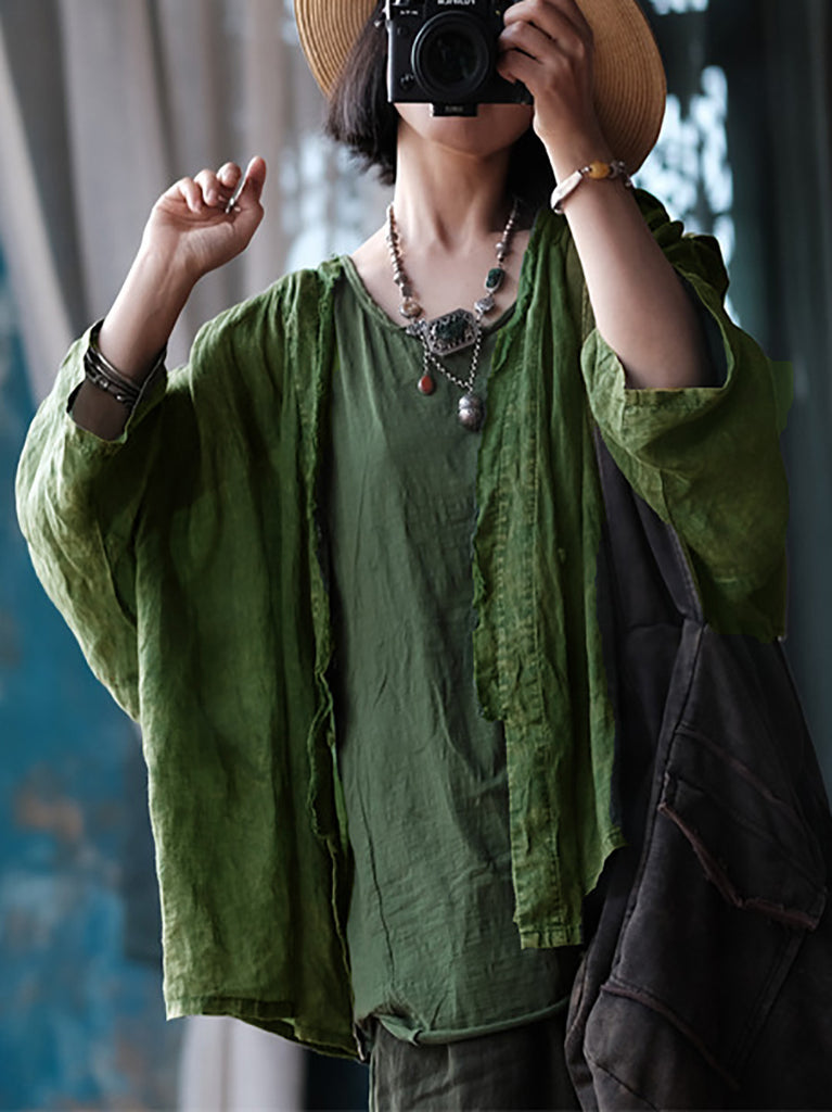 Dámské letní Retro nošené Raw-edge Ramie Shirt Coat