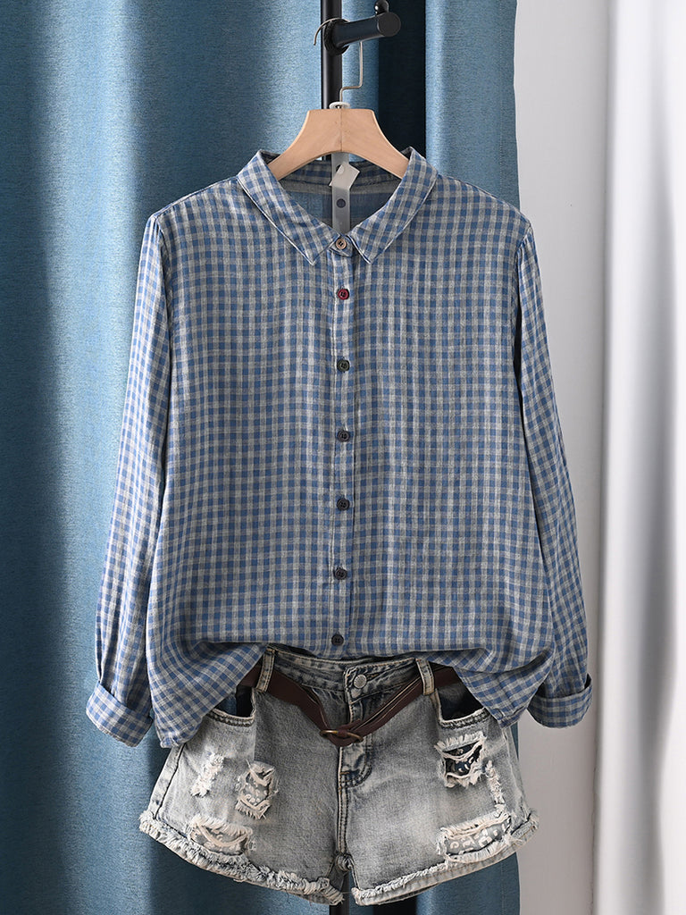 Dámská podzimní kostkovaná košile s odkládacím límcem, 100% bavlna