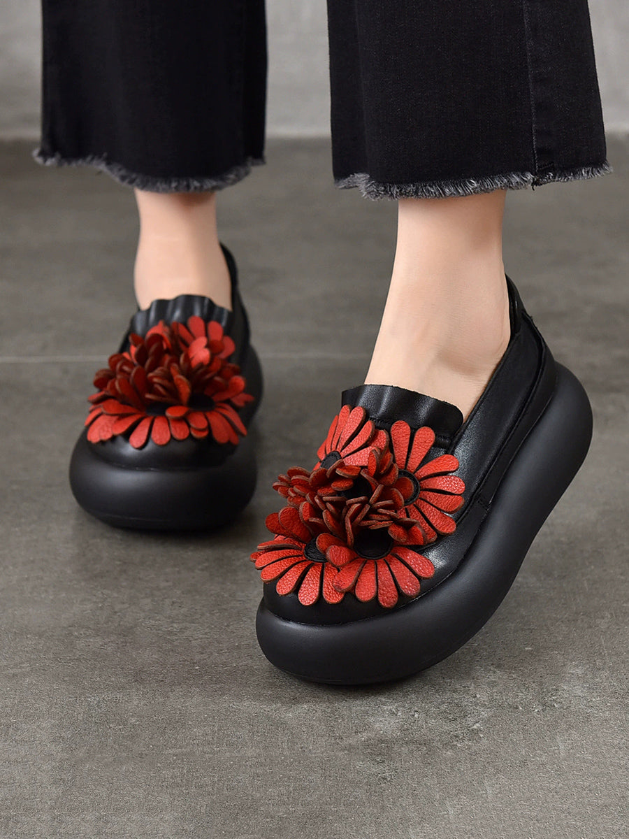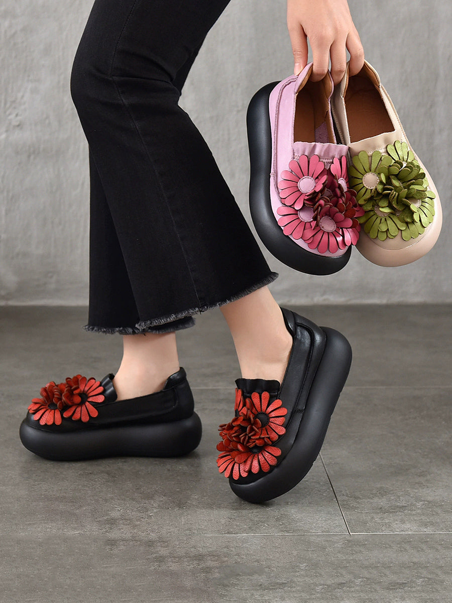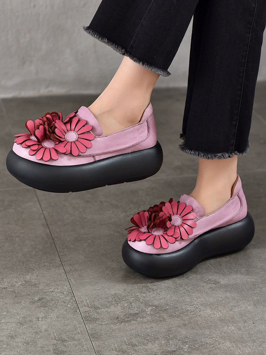 Dámské jarní boty na platformě z pravé kůže s květinovým vzorem
