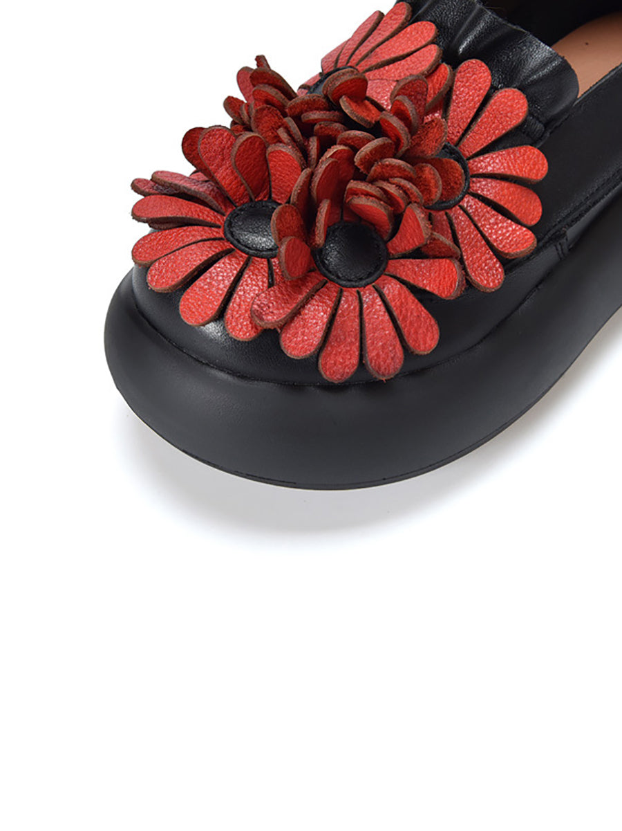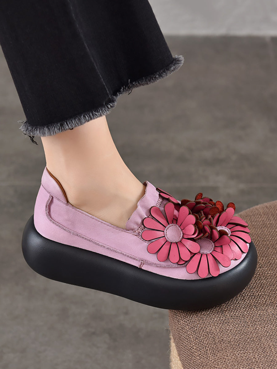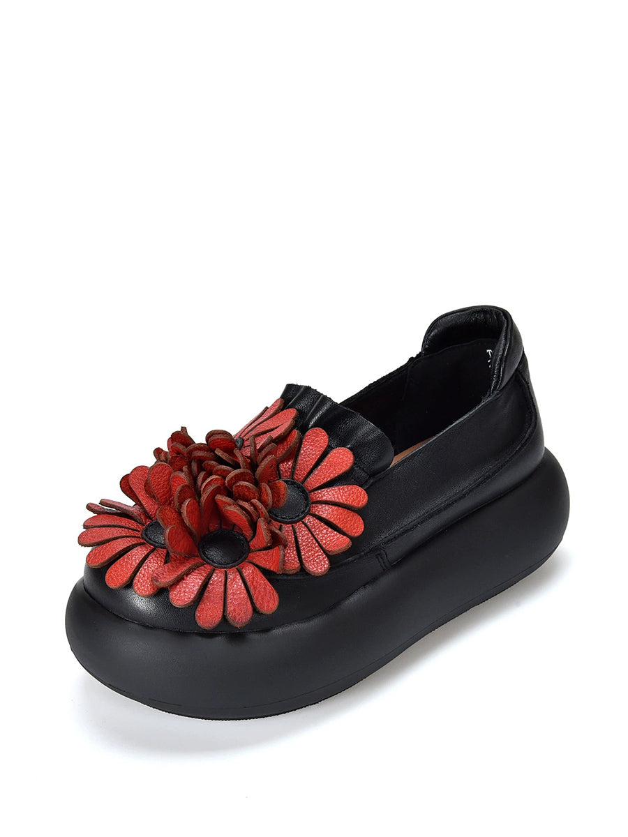 Dámské jarní boty na platformě z pravé kůže s květinovým vzorem